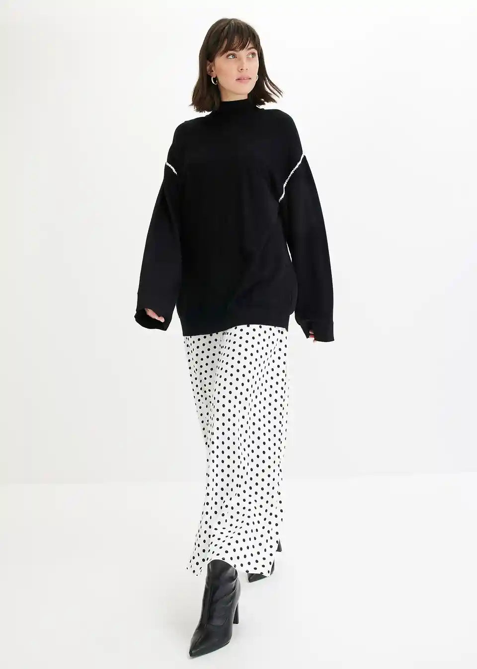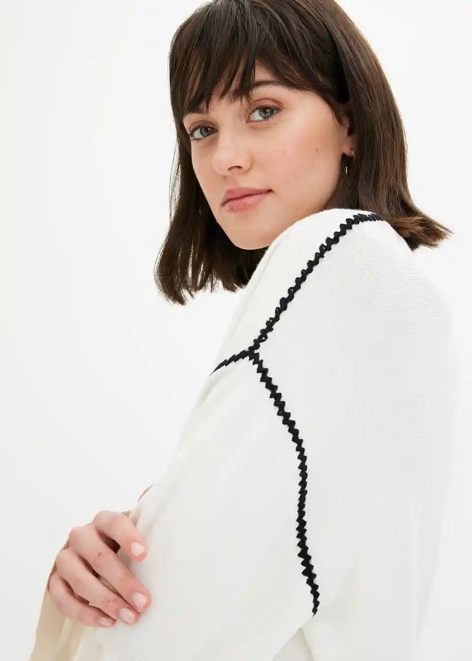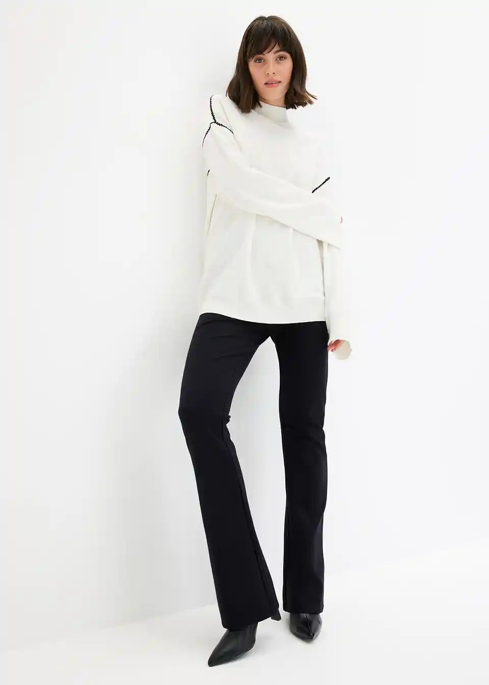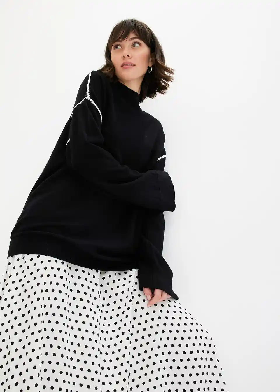 Pulover v kvadratnem kroju z okrasnimi šivi iz viskozne mešanice