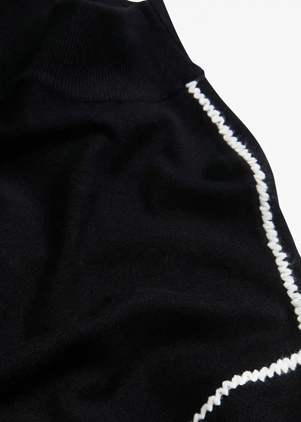 Enobarvni pleten pulover z okrasnim šivom v kontrastni barvi
