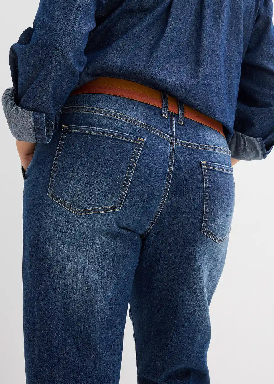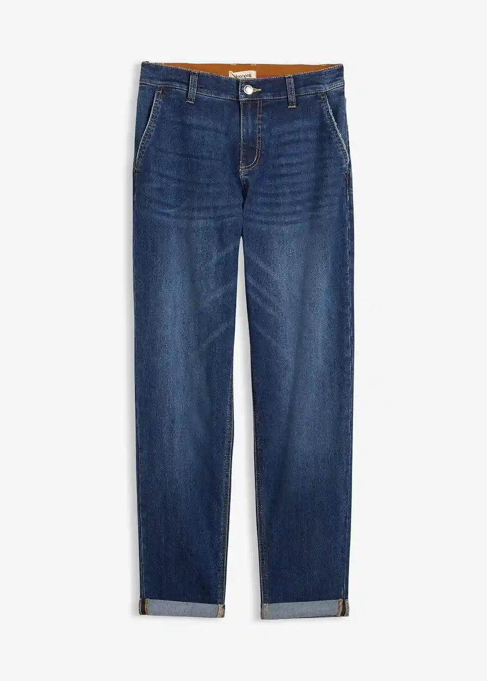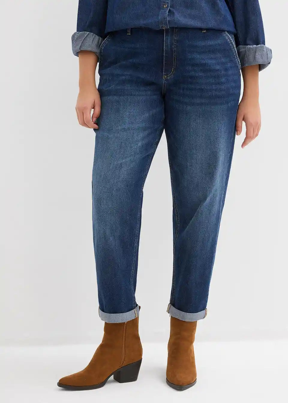 Boyfriend kavbojke s srednje visokim pasom in elastiko v pasu