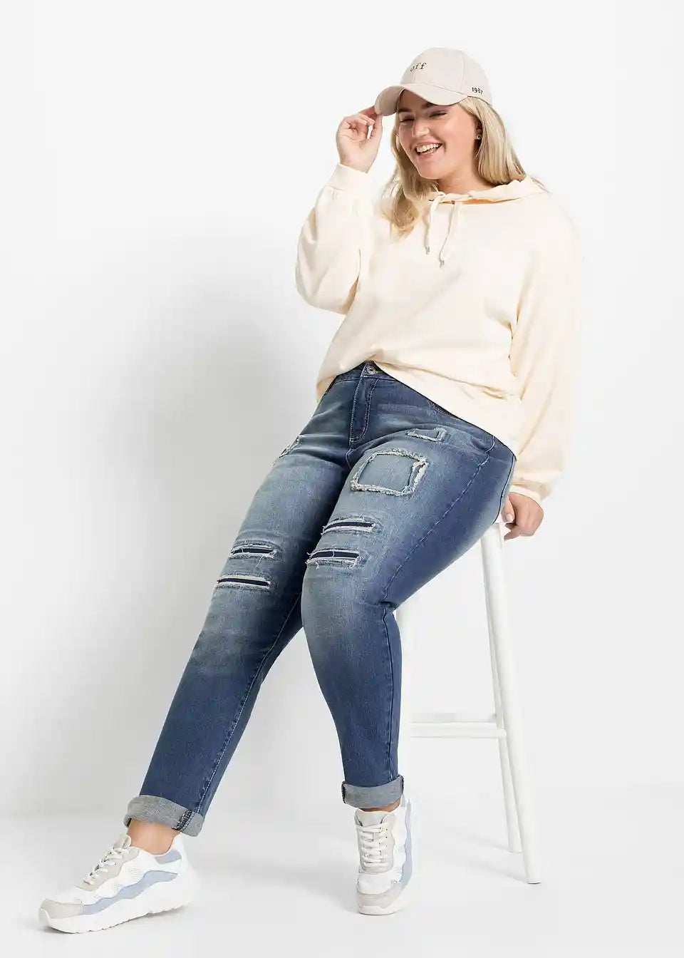 Boyfriend kavbojke s srednje visokim pasom in stretch materialom