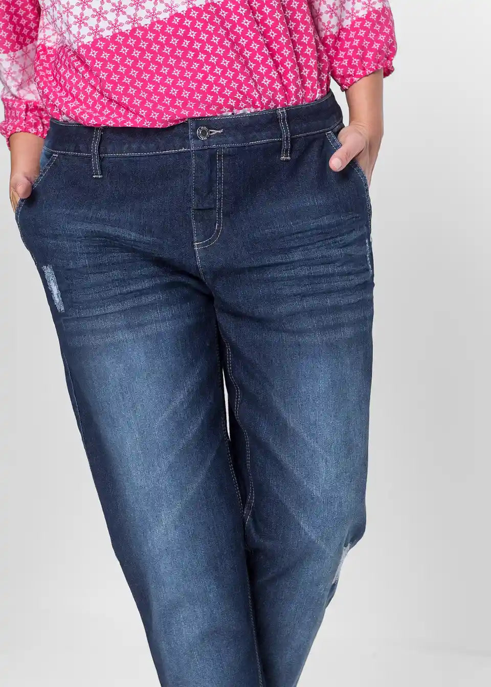 Boyfriend kavbojke s srednje visokim pasom iz udobnega stretcha