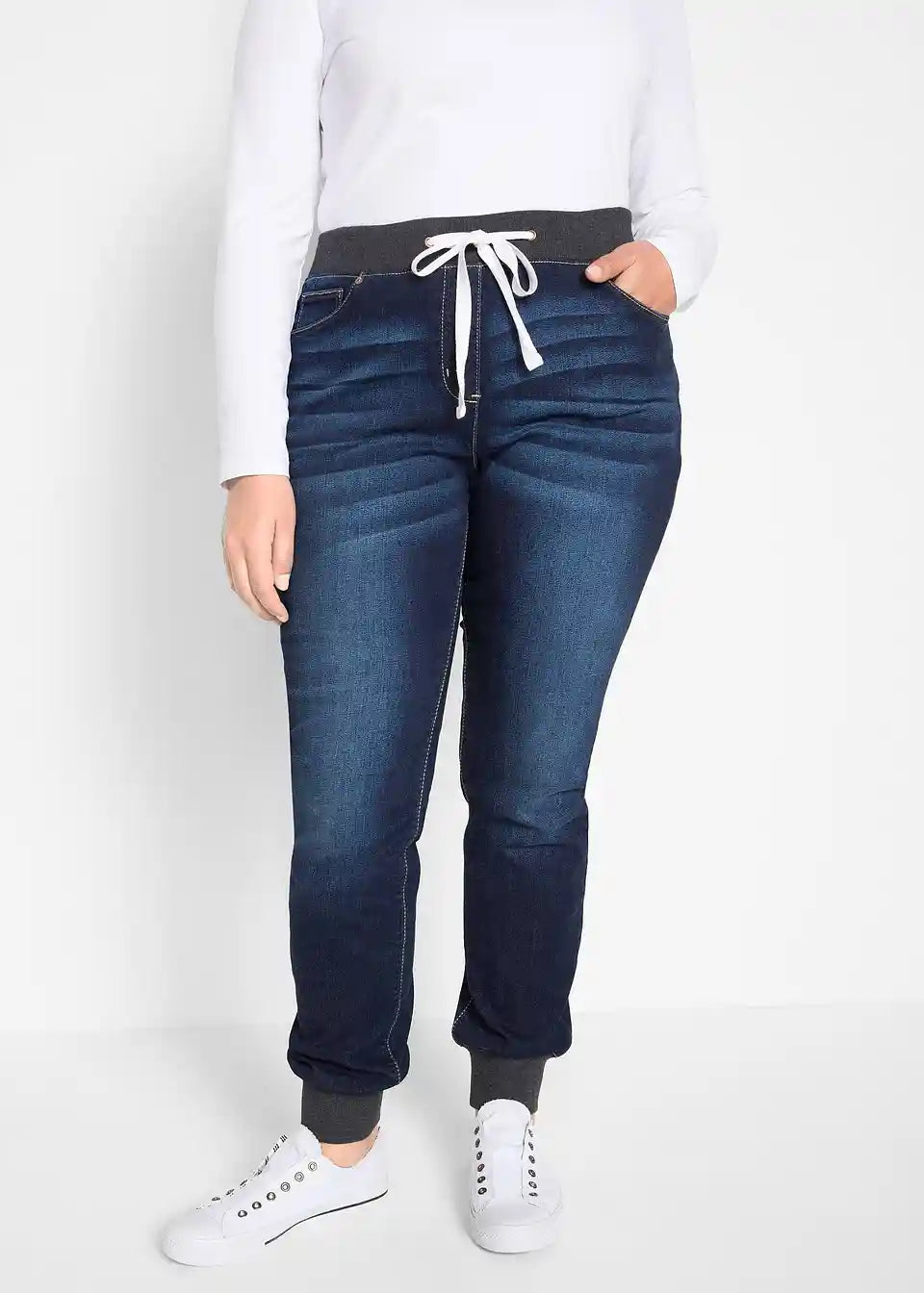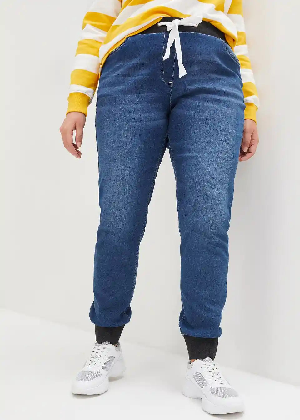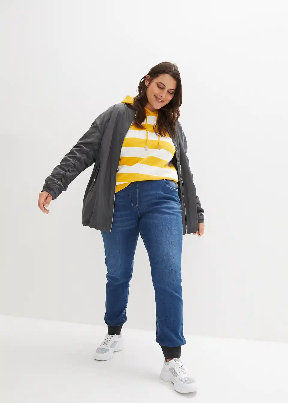Izredno udobne in super sproščene so te športne Boyfriend Jeans hlače s pasom. Straight-Leg-Jeans znamke bpc so na robovih oblikovane z mehkim rebrastim pasom. Dodatek elastana v materialu jim zagotavlja odlično prileganje in poskrbi za še posebej prijeten občutek pri nošenju. Pas lahko dodatno prilagodite s tanko vezalko.