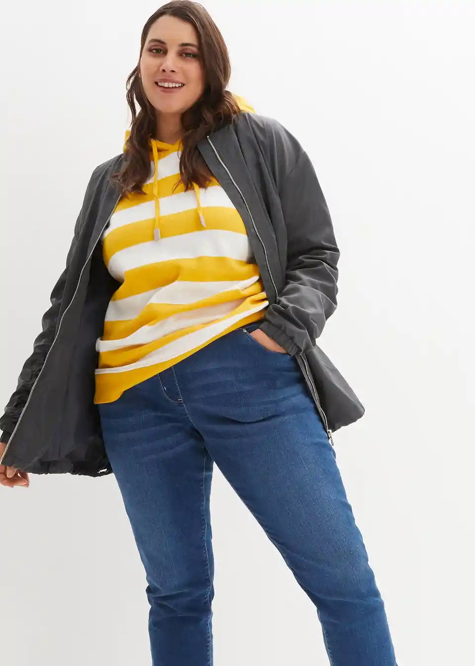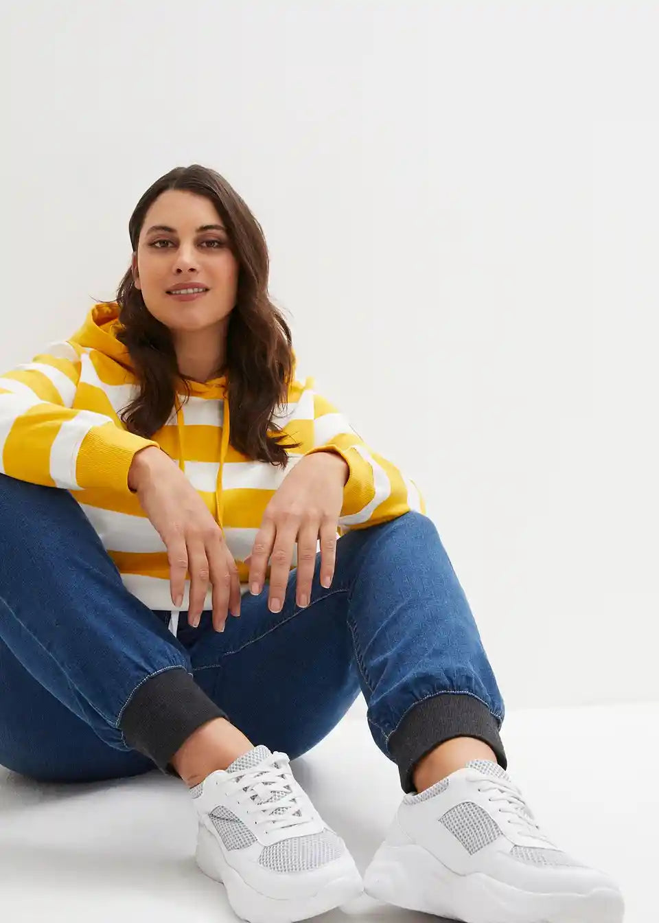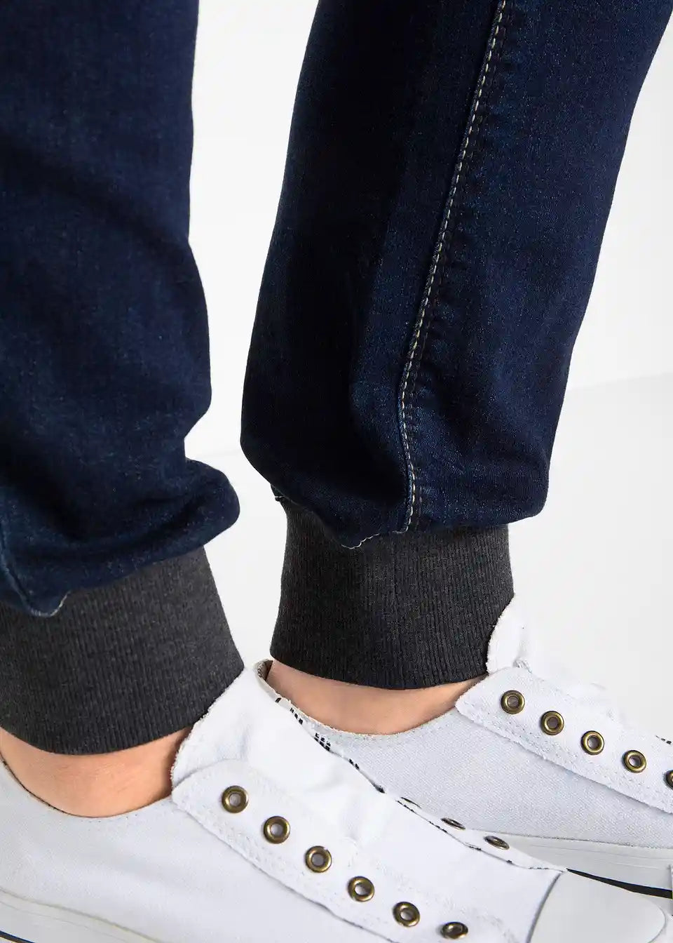Izredno udobne in super sproščene so te športne Boyfriend Jeans hlače s pasom. Straight-Leg-Jeans znamke bpc so na robovih oblikovane z mehkim rebrastim pasom. Dodatek elastana v materialu jim zagotavlja odlično prileganje in poskrbi za še posebej prijeten občutek pri nošenju. Pas lahko dodatno prilagodite s tanko vezalko.