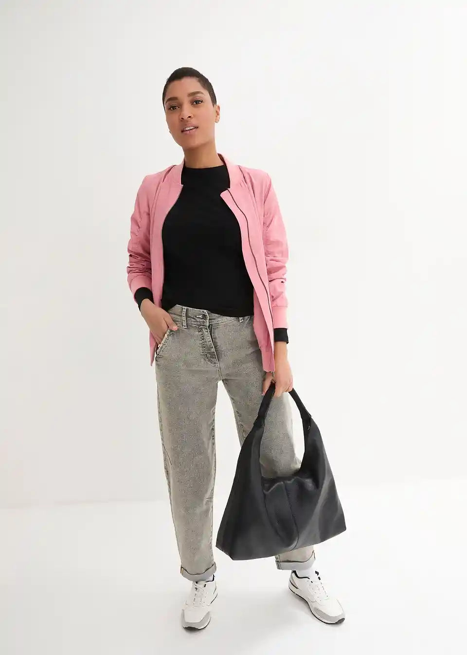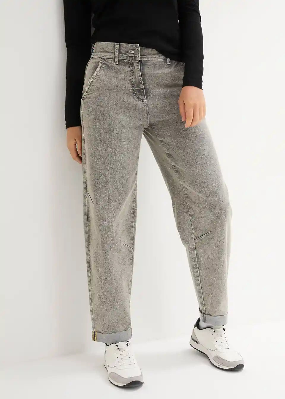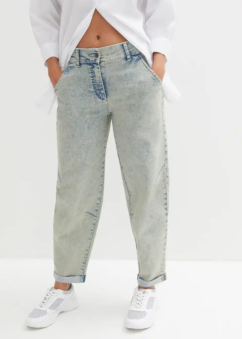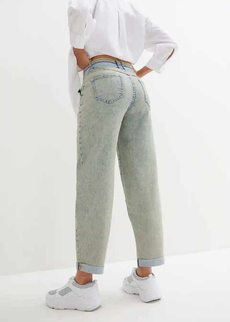 ležerne kavbojke z širokimi hlačnicami in udobno elastiko na zadnjem delu pasu z neonskimi barvami