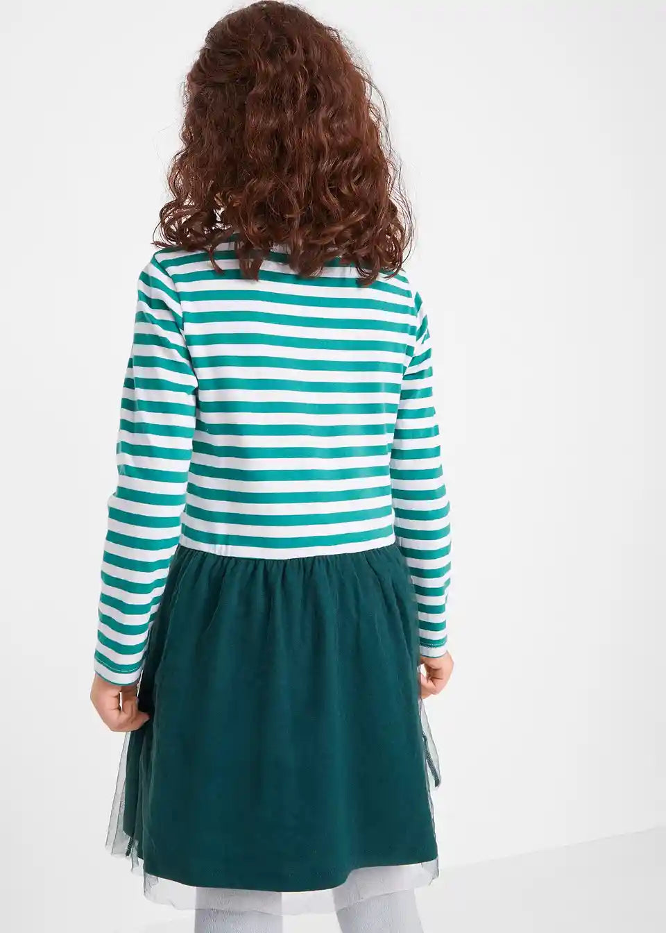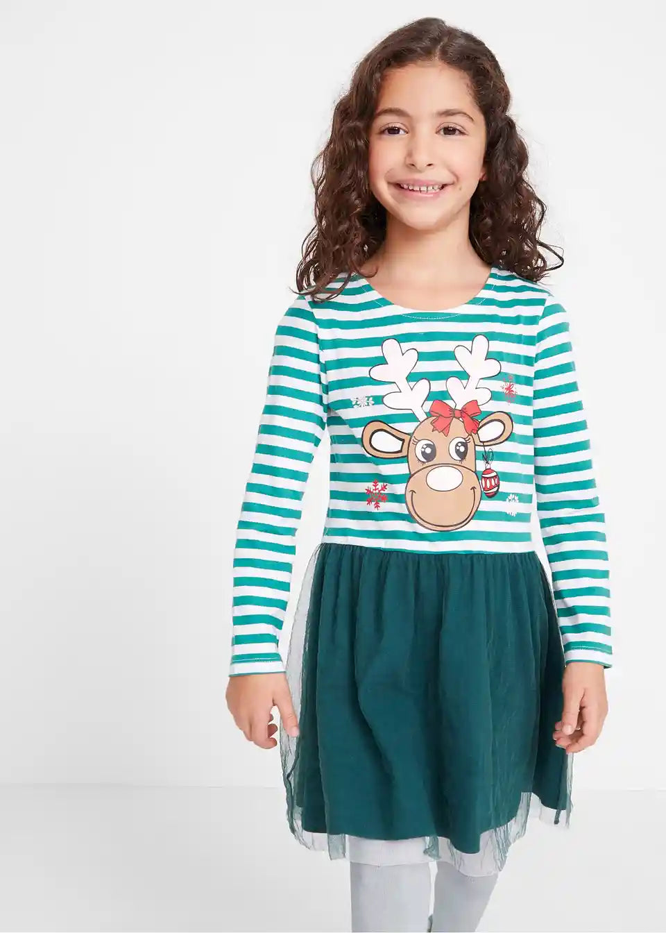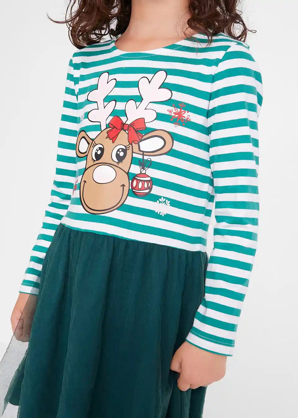Božična jersejska obleka s tilom za dekleta. Čudovita dolgoročna obleka s kul losovim potiskom na sprednji strani in črtami.