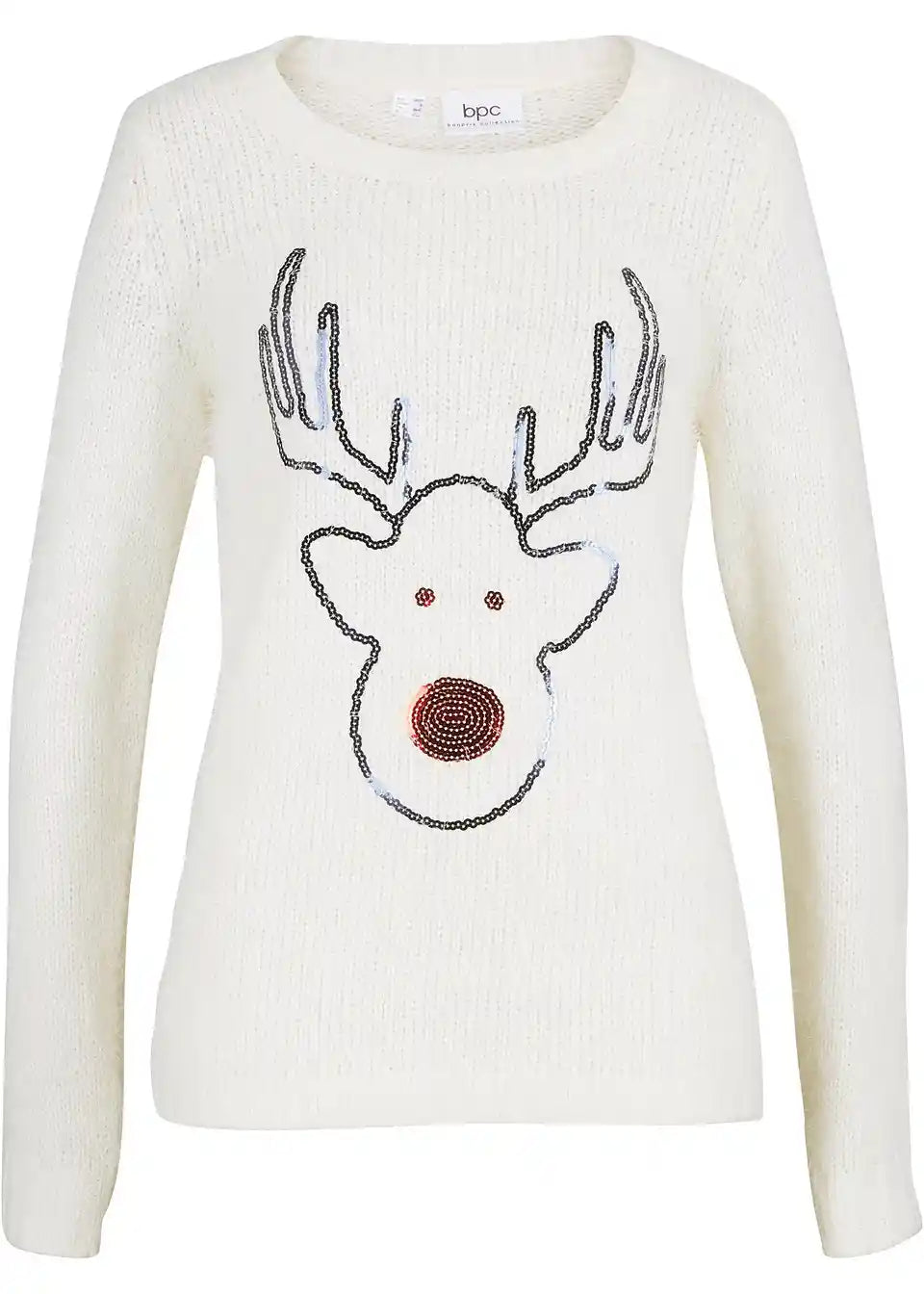 S tem toplim in mehkim pletenim puloverjem bo praznično vzdušje zagotovljeno. Sijoče bleščice oblikujejo prazničen zimski motiv glave severnega jelena na sprednji strani. Pulover blagovne znamke bpc ima udobno prileganje in zagotavlja topel občutek pri nošenju. Idealen je za prijetne večere ob kaminu.