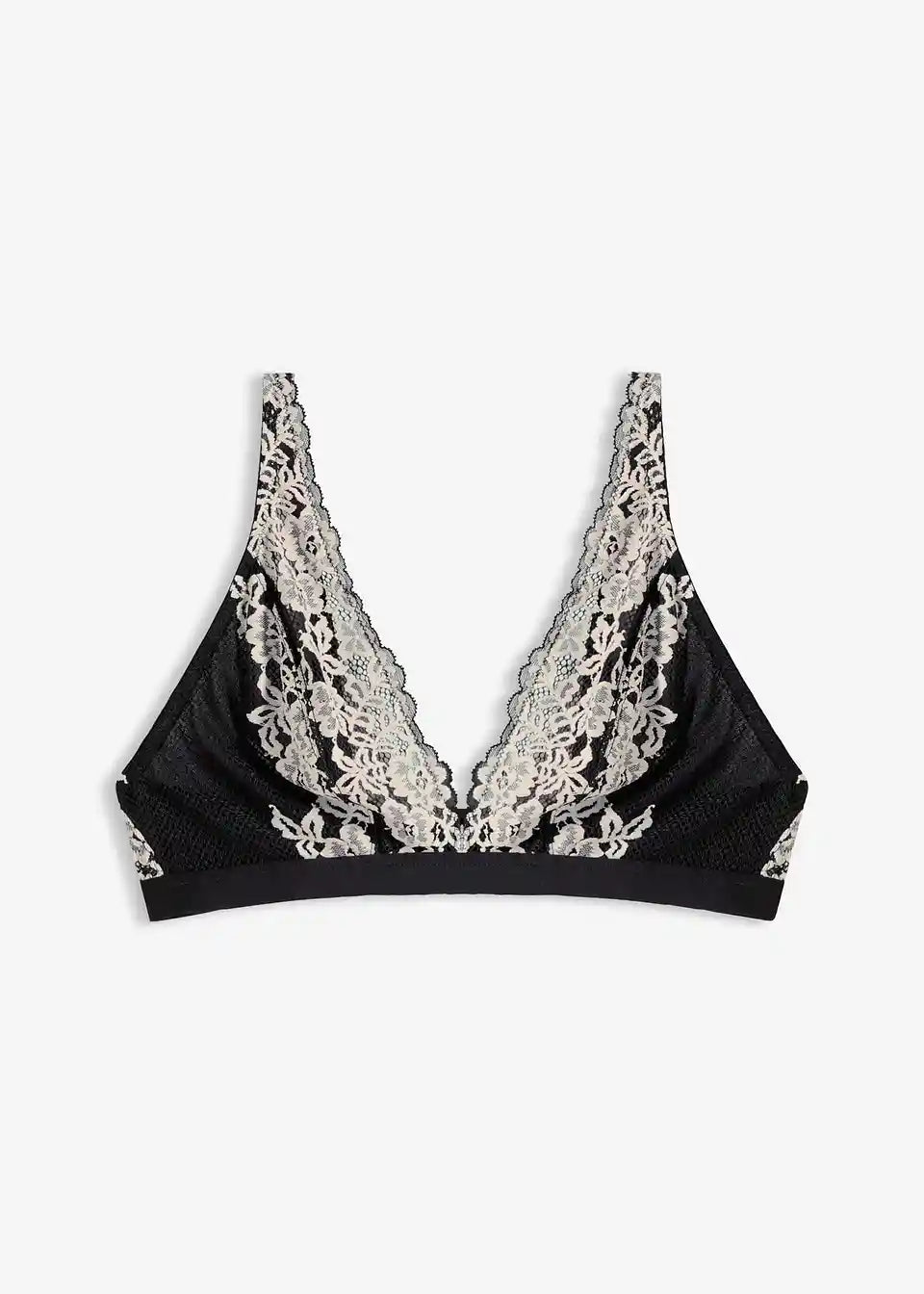 Bralette iz dvobarvne čipke z recikliranim poliamidom.