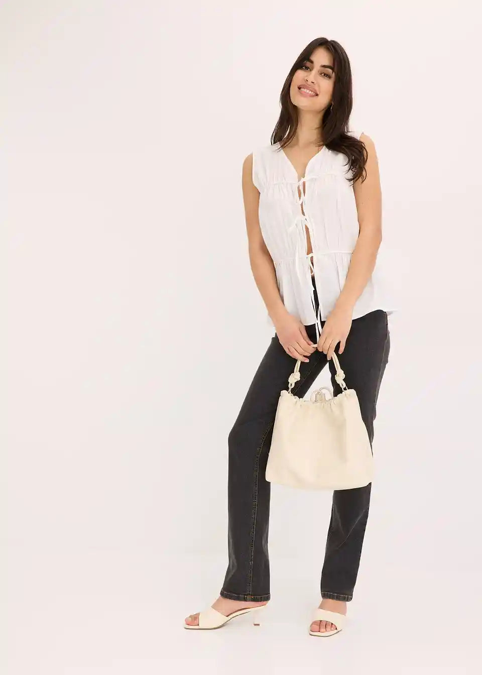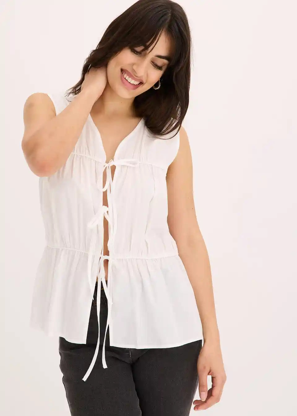 Bluza brez rokavov z volani in pentljami
