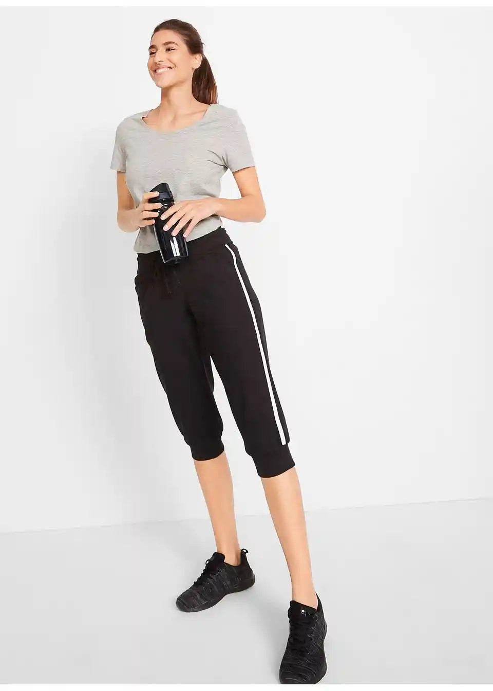 idealne za nežne športe in lahke treninge, širok elastičen rebrast pas, žepi z zadrgo, dolžina notranje strani hlačnice v vel. 40/42 pribl. 49 cm, pralne v pralnem stroju.
