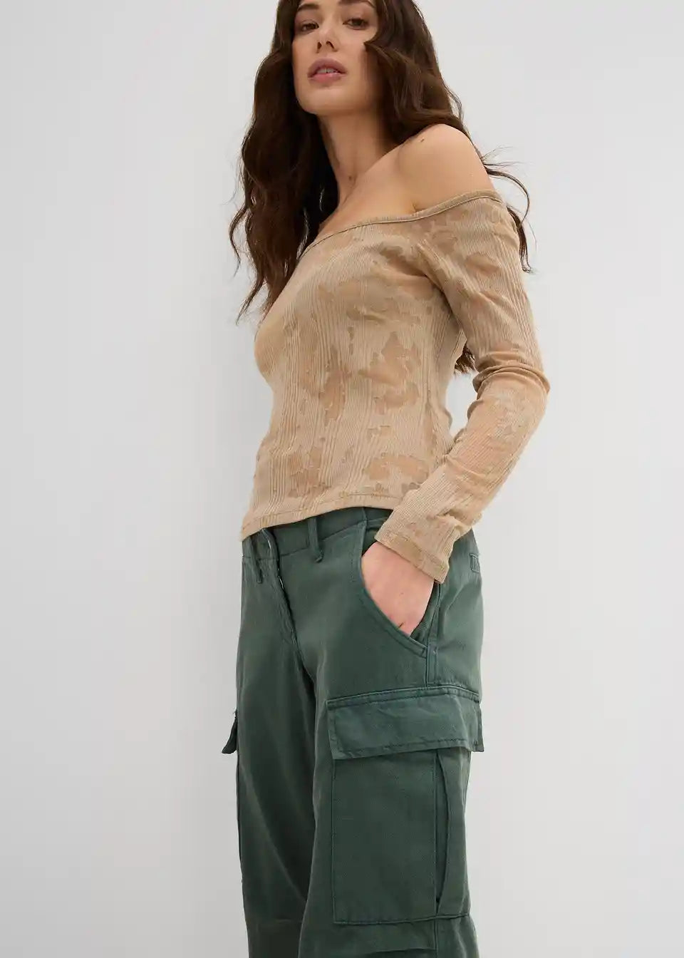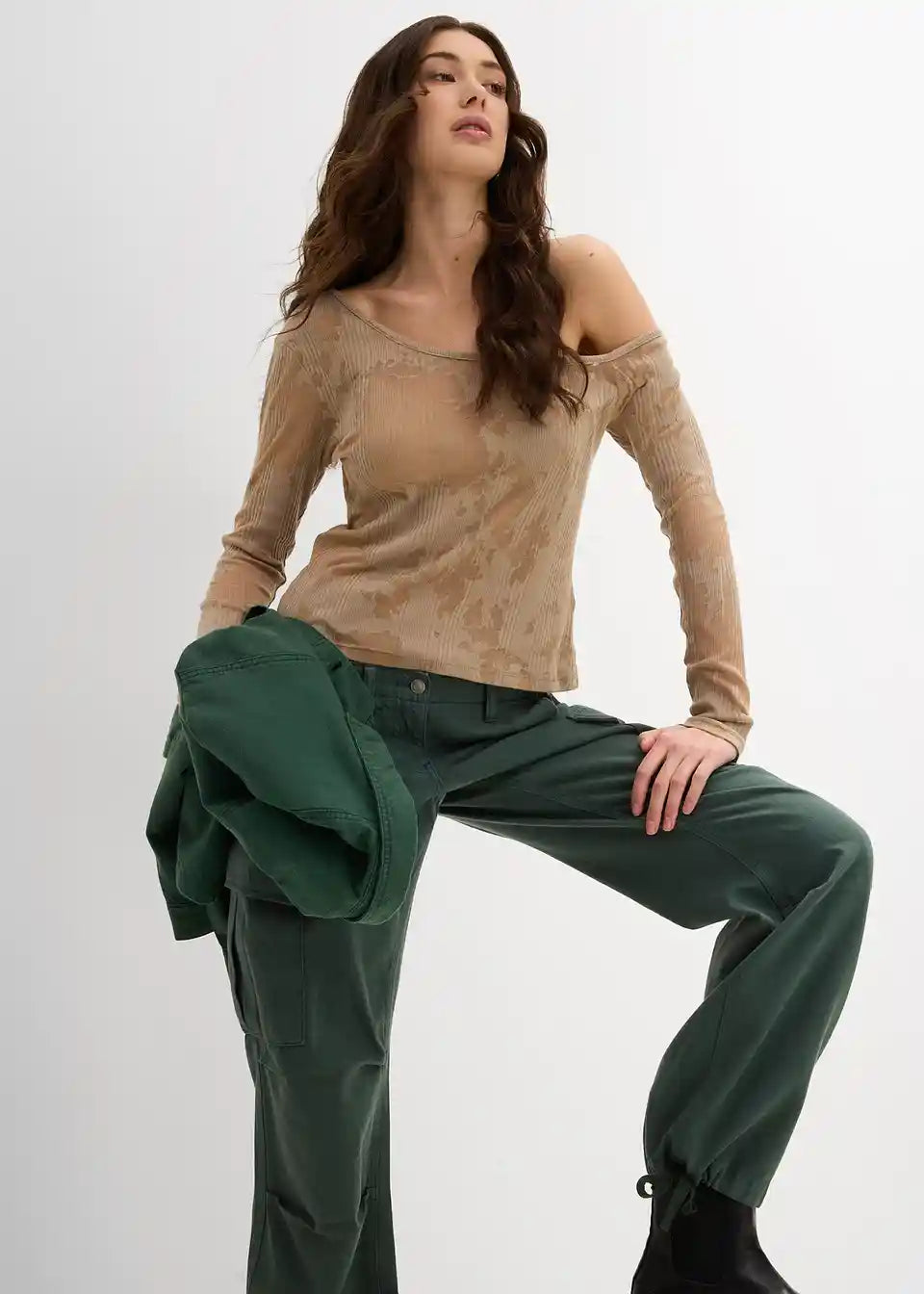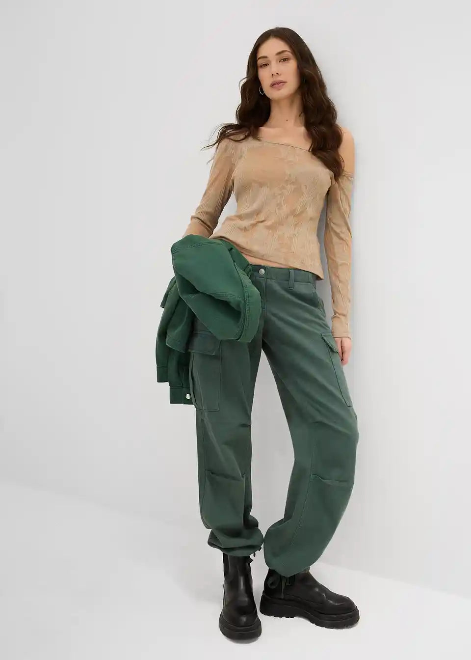 Ležerne Cargo hlače v kroju Relaxed Fit z vrvico na robu hlačnic