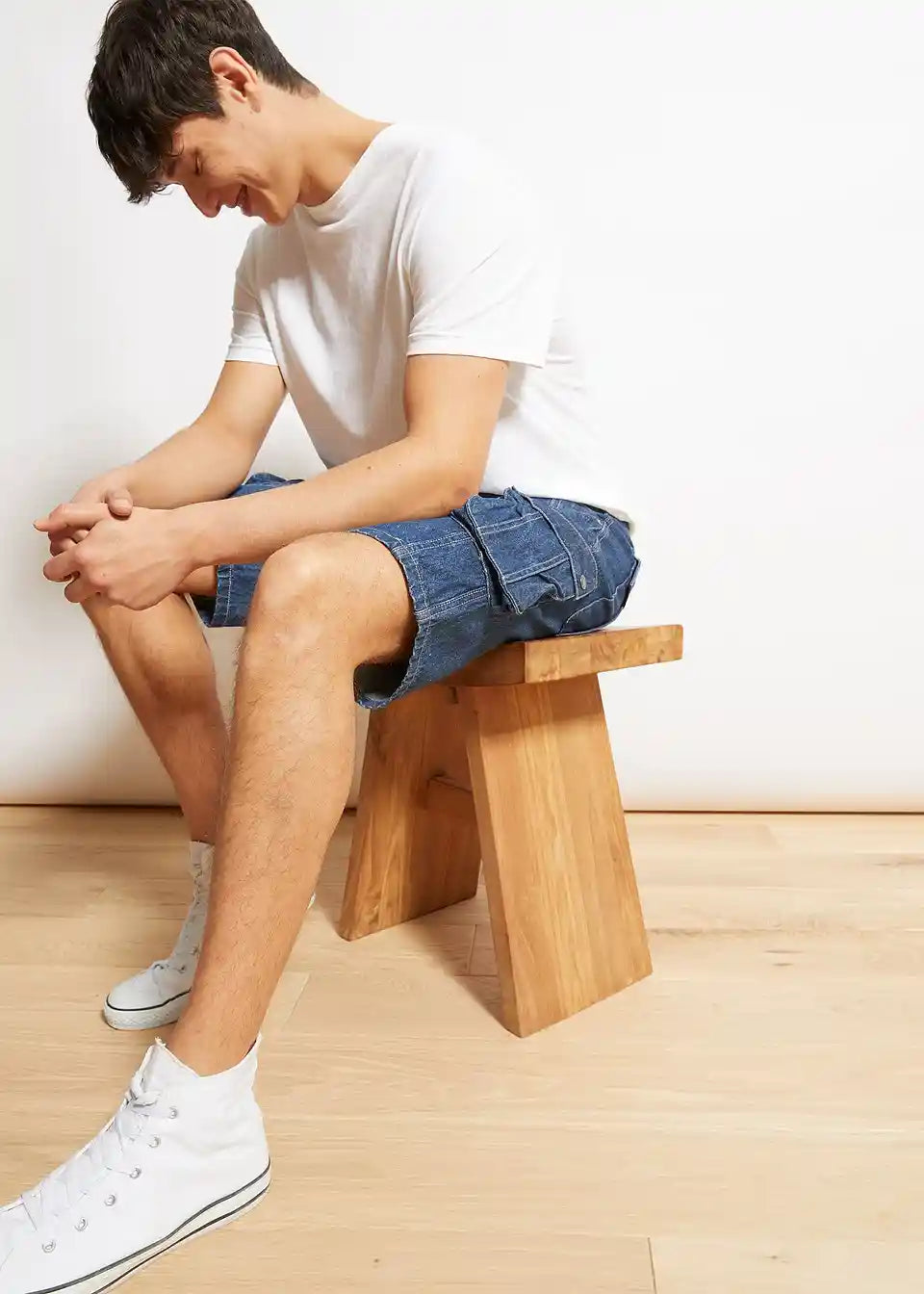Sproščene bermuda hlače iz robustnega denima z našitimi žepi