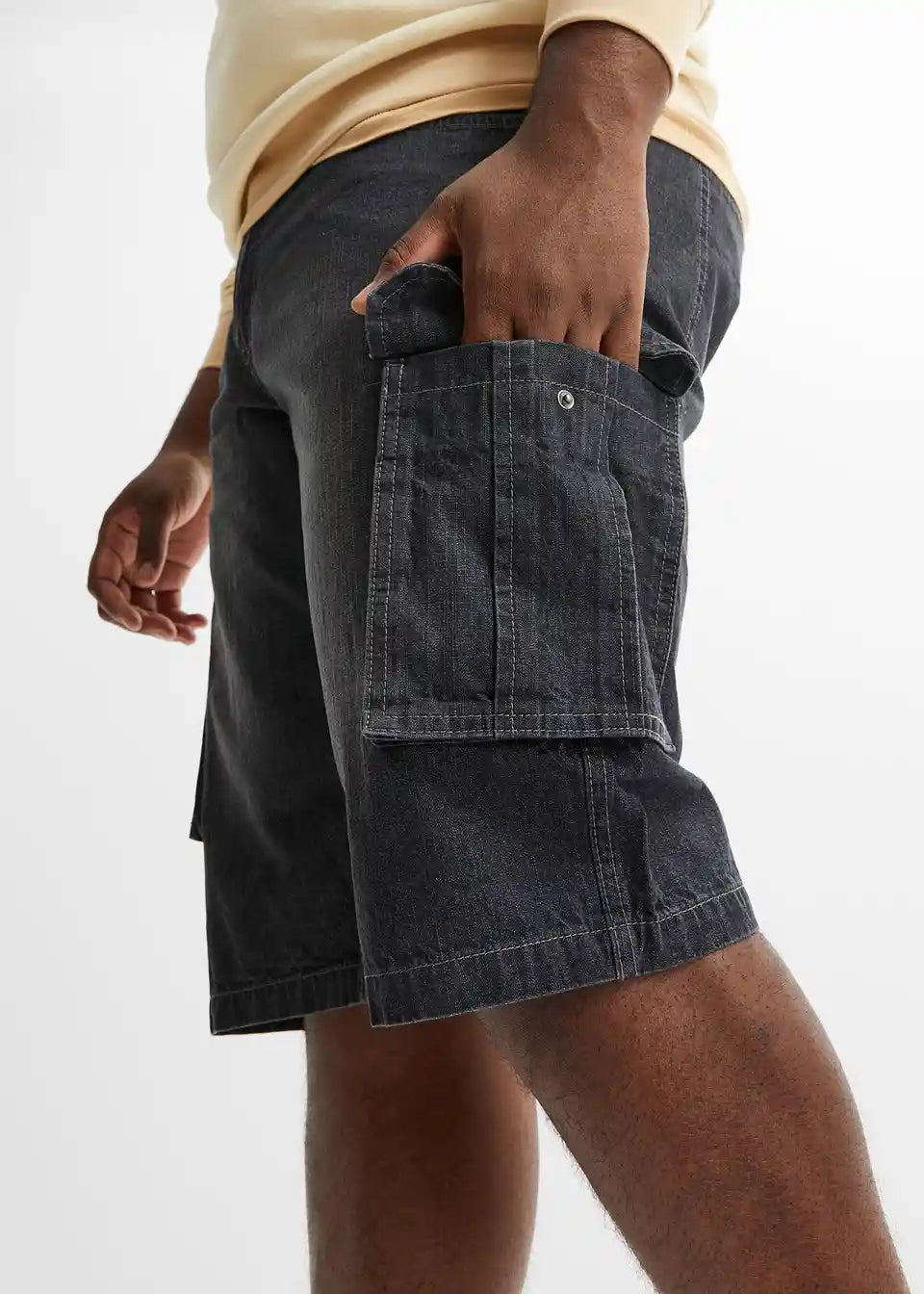 Ohlapno krojene Cargo-Jeans Bermuda z rahlim pranjem