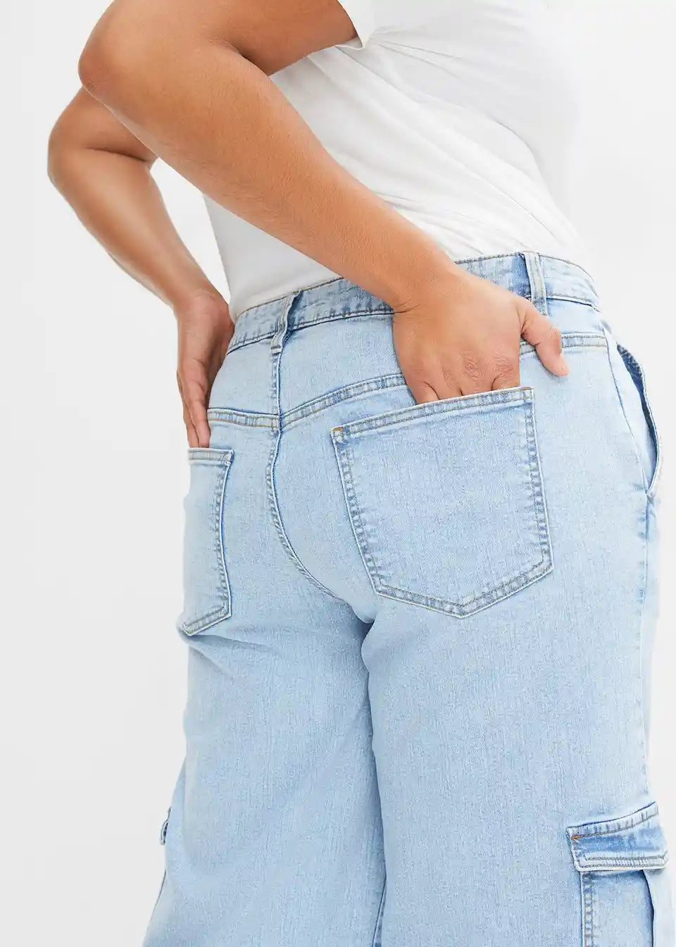 Kavbojke s cargo žepi in srednje visokim pasom v širokem kroju