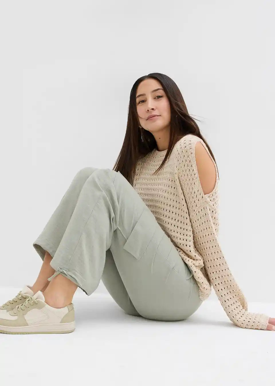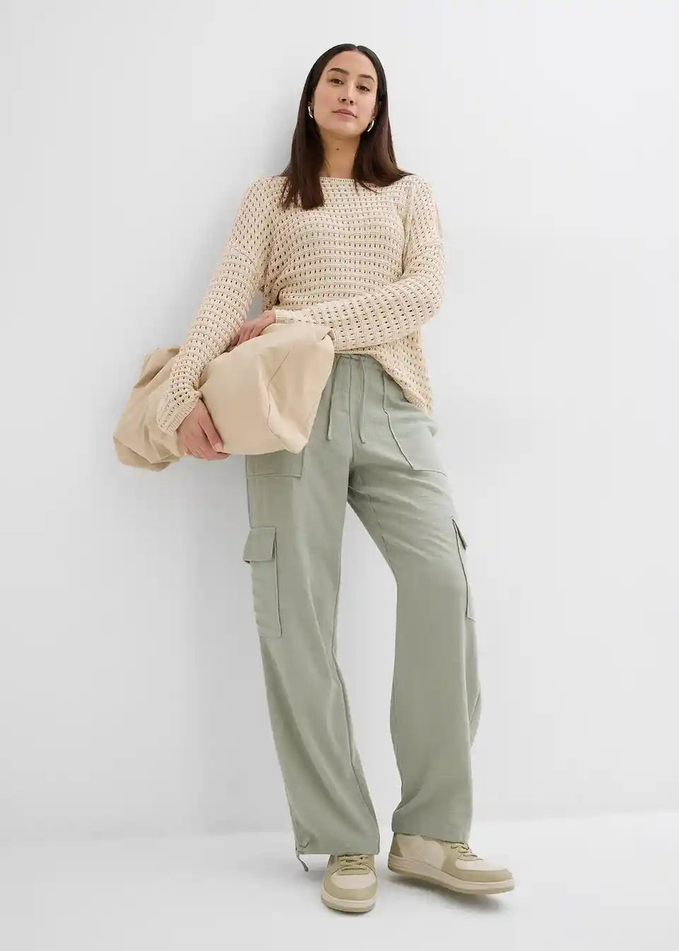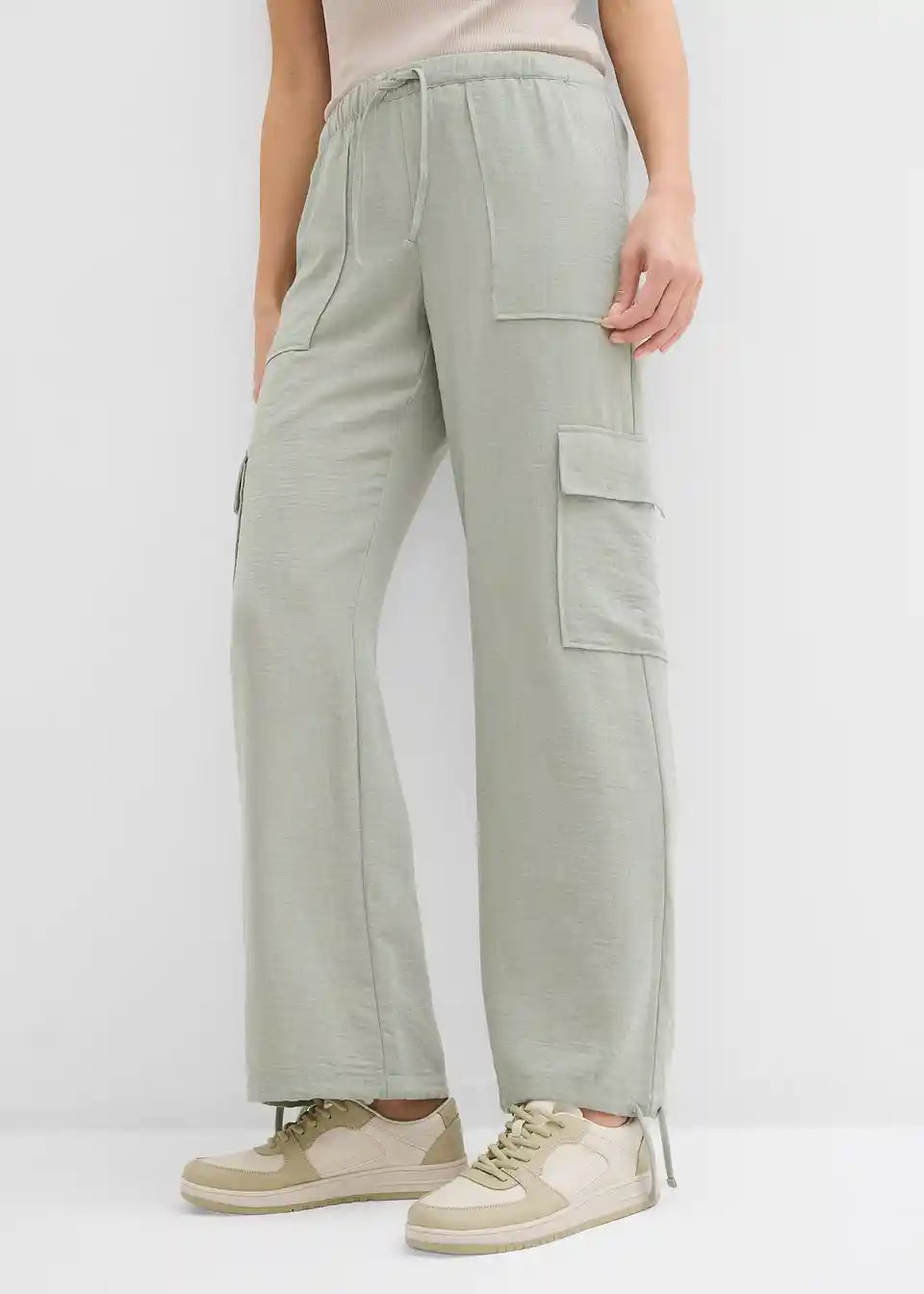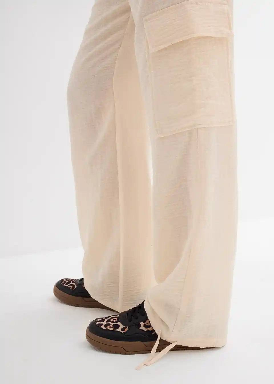 Ležerne Cargohlače iz tekoče tkanine z detajlom za zavezovanje