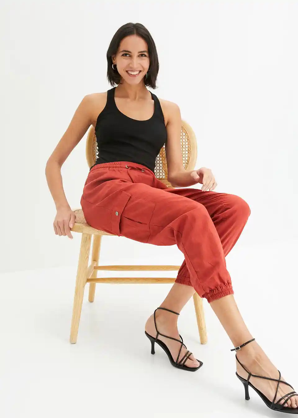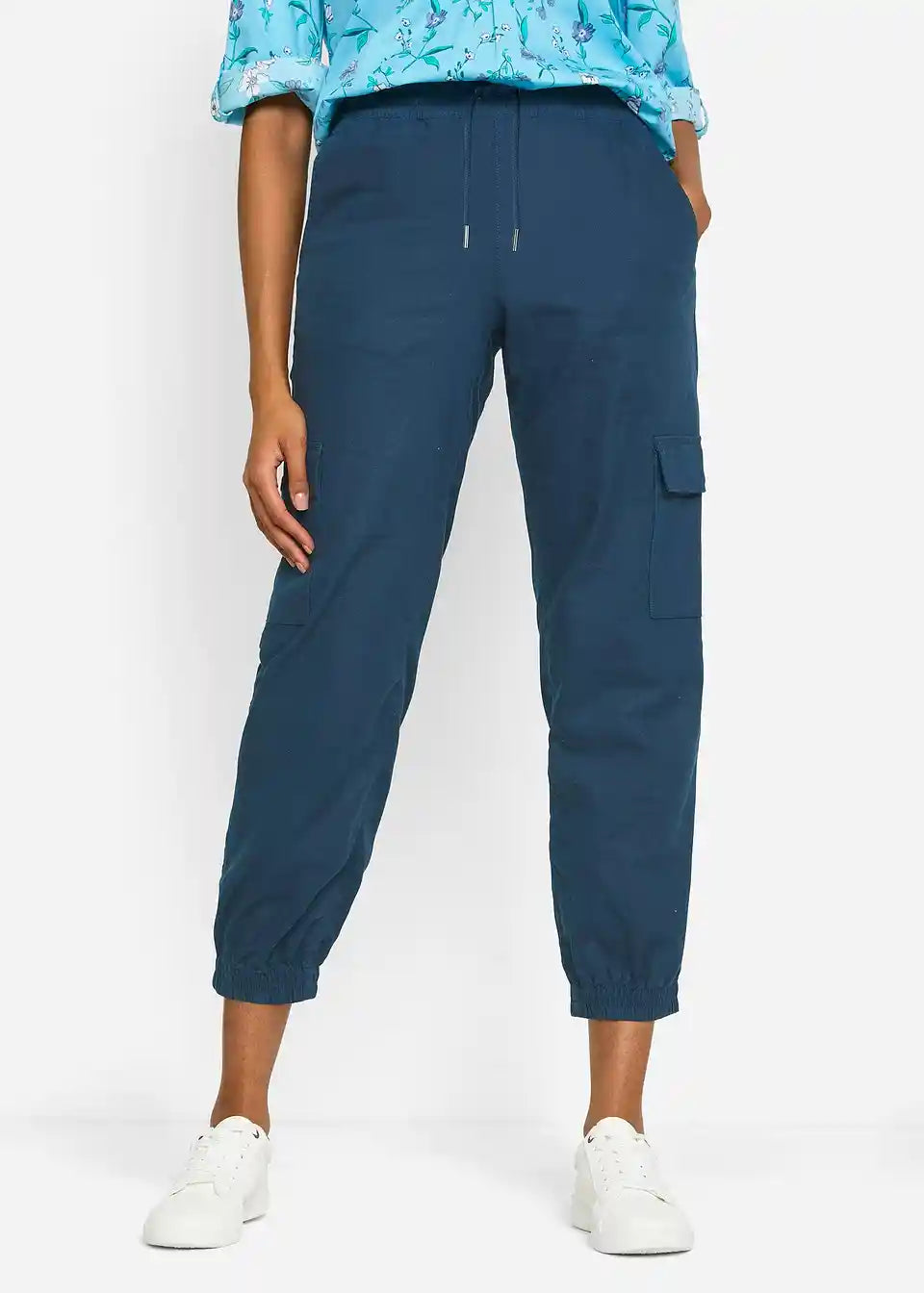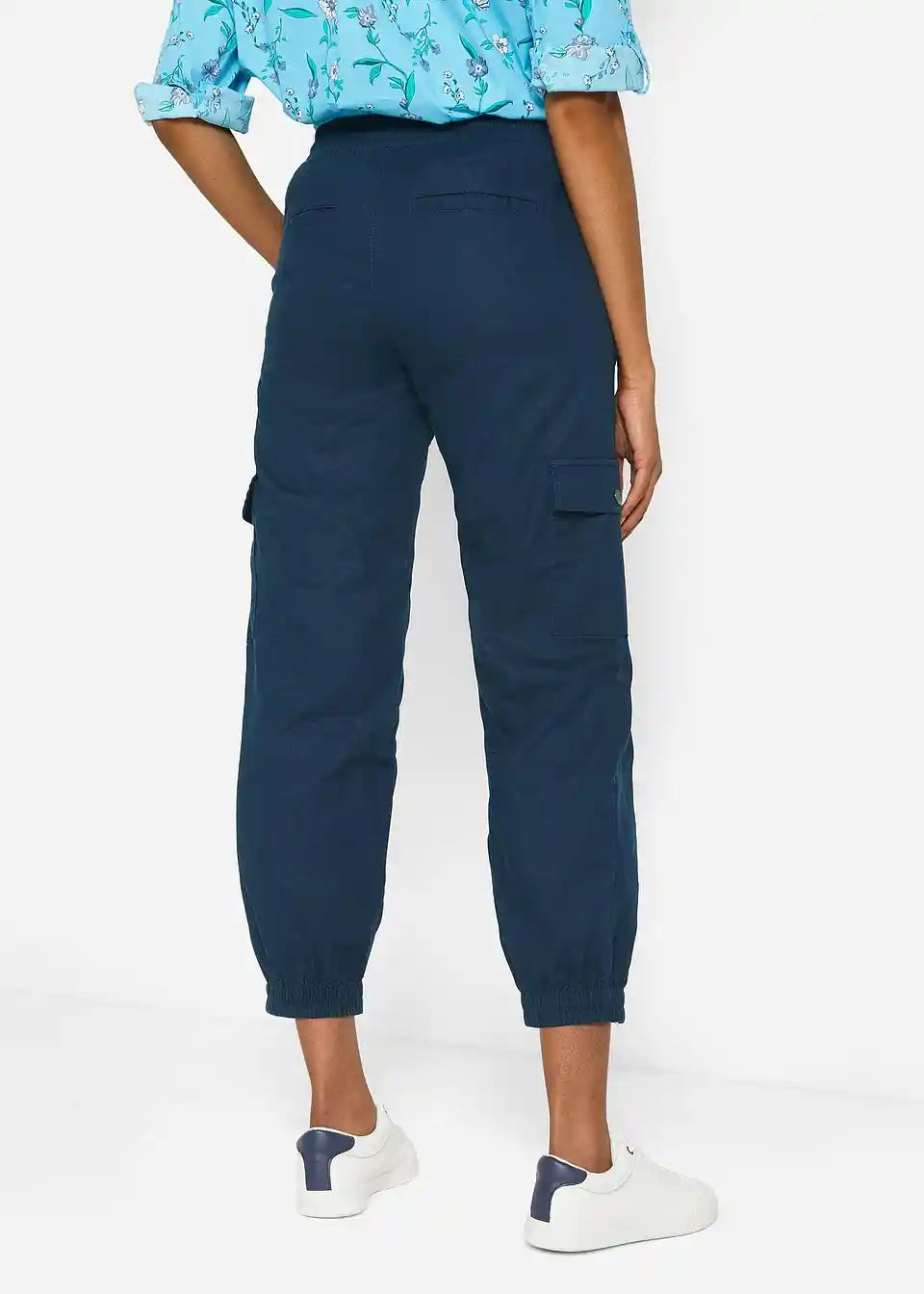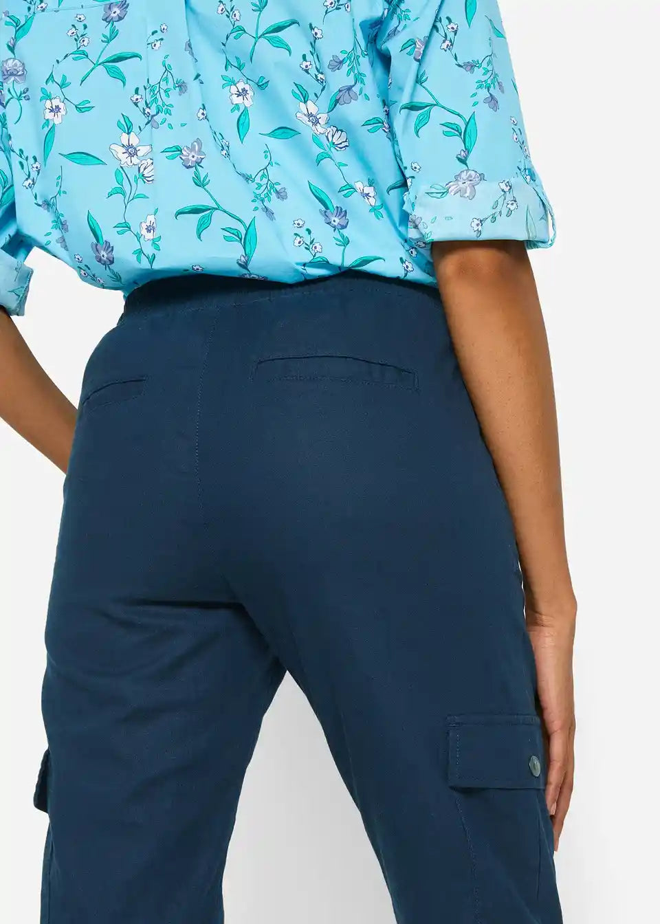 Do gležnjev dolge hlače s cargo žepi iz platna