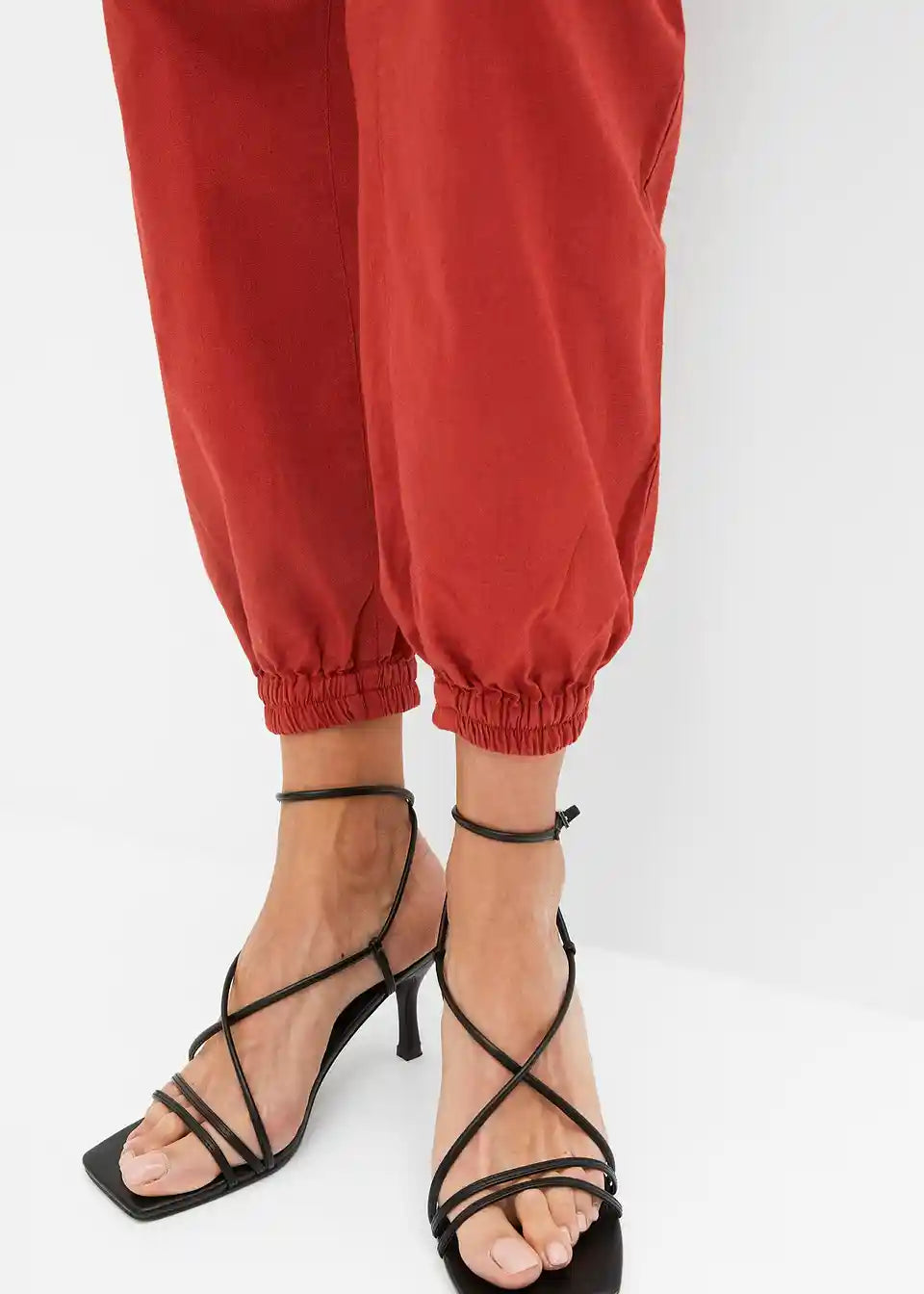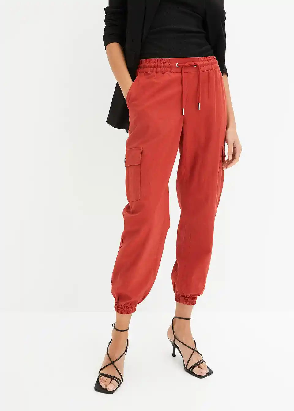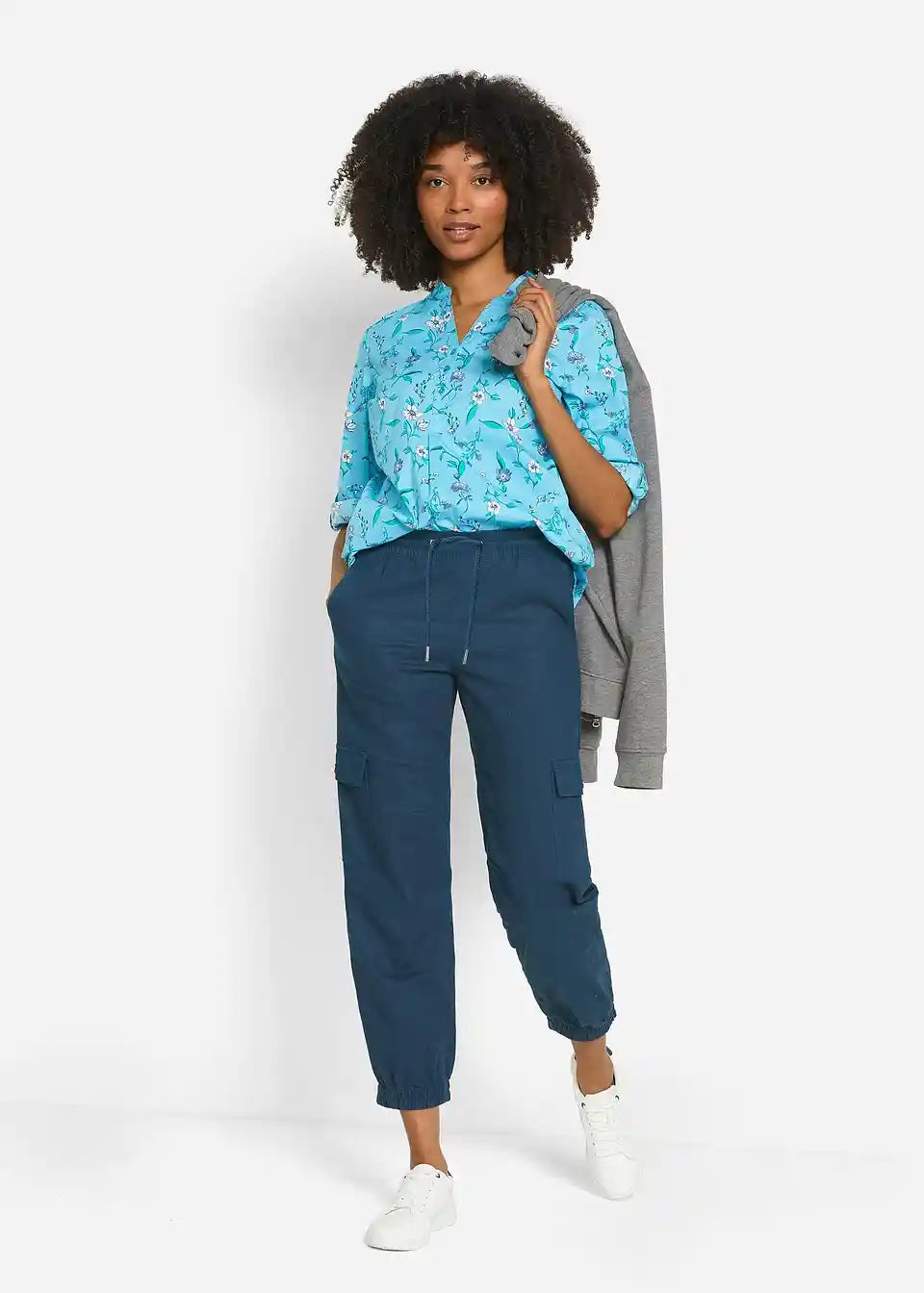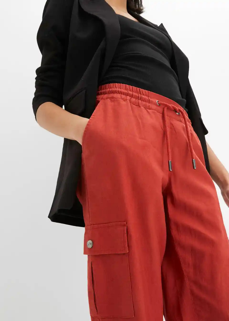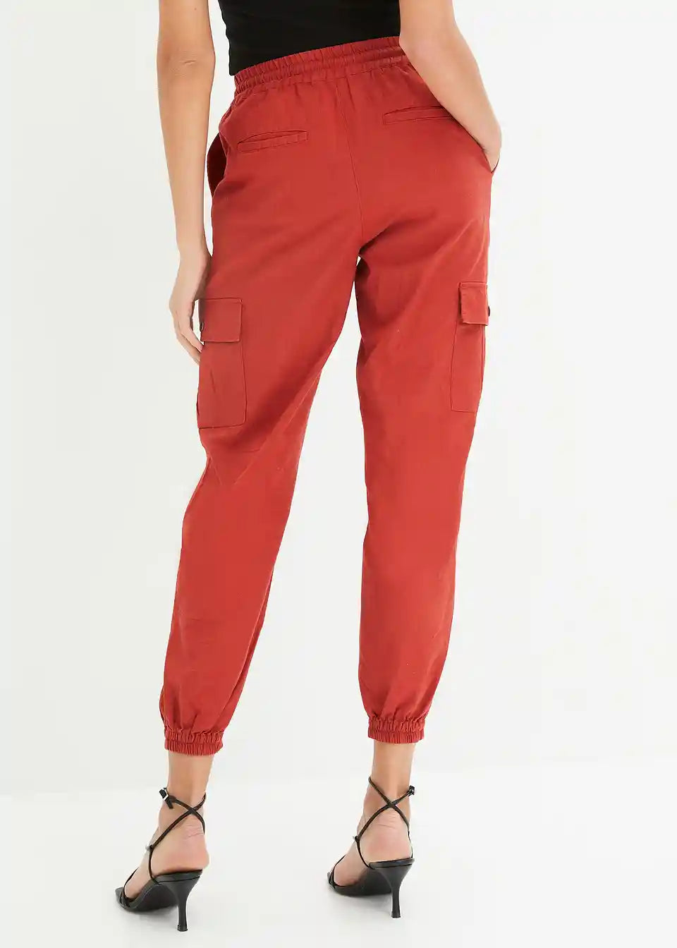 Do gležnjev dolge hlače s cargo žepi iz platna