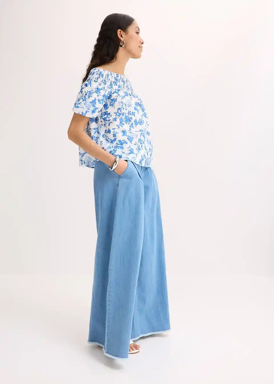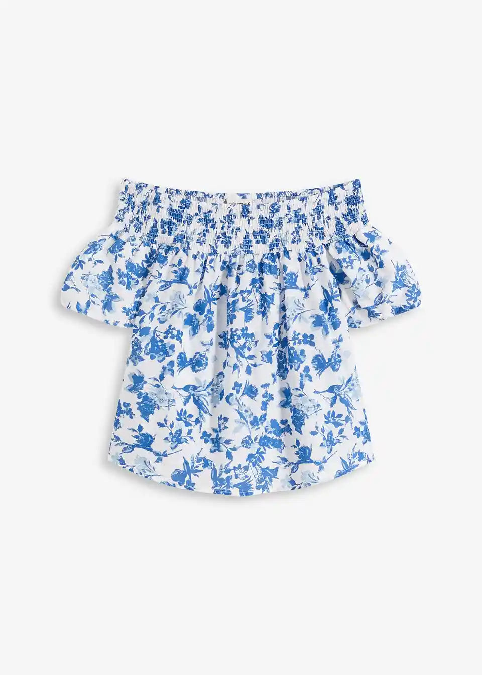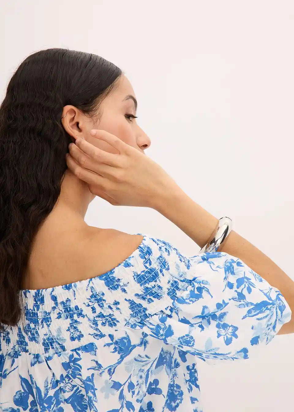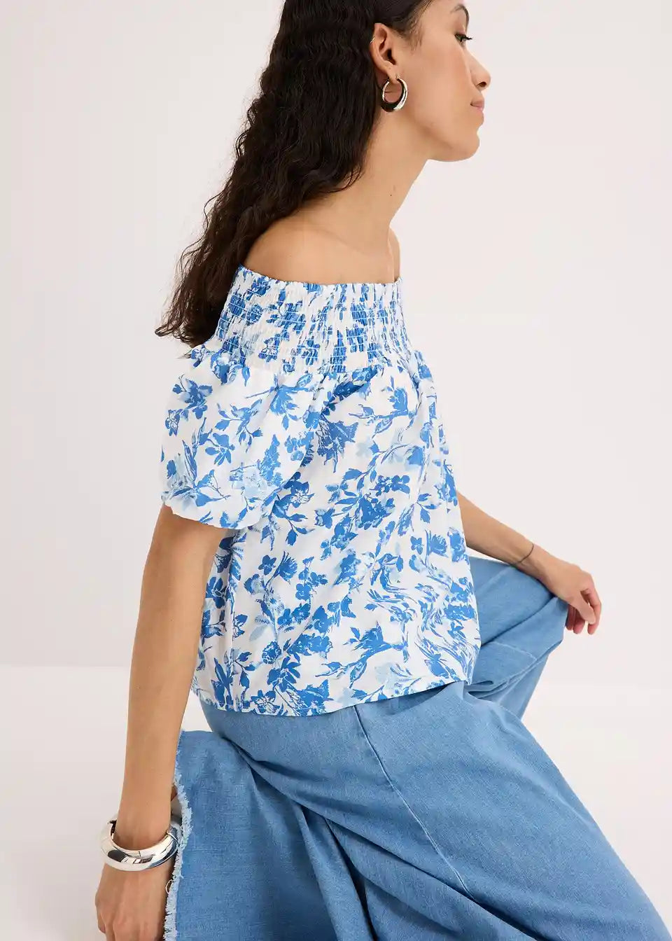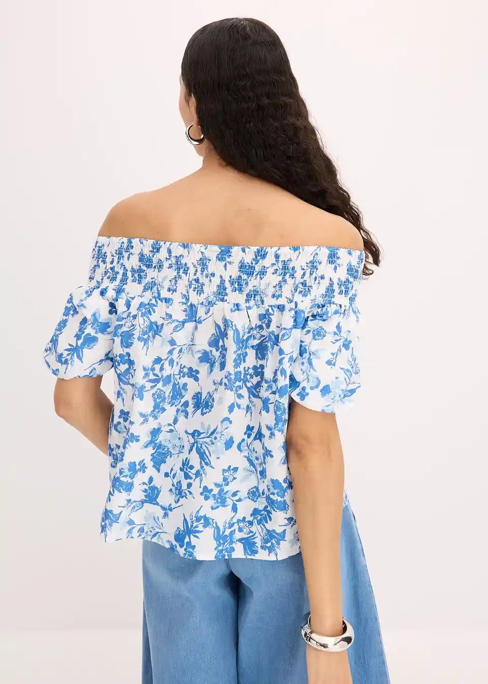 Bluza s širokim nabranim izrezom Carmen in napihnjenimi rokavi
