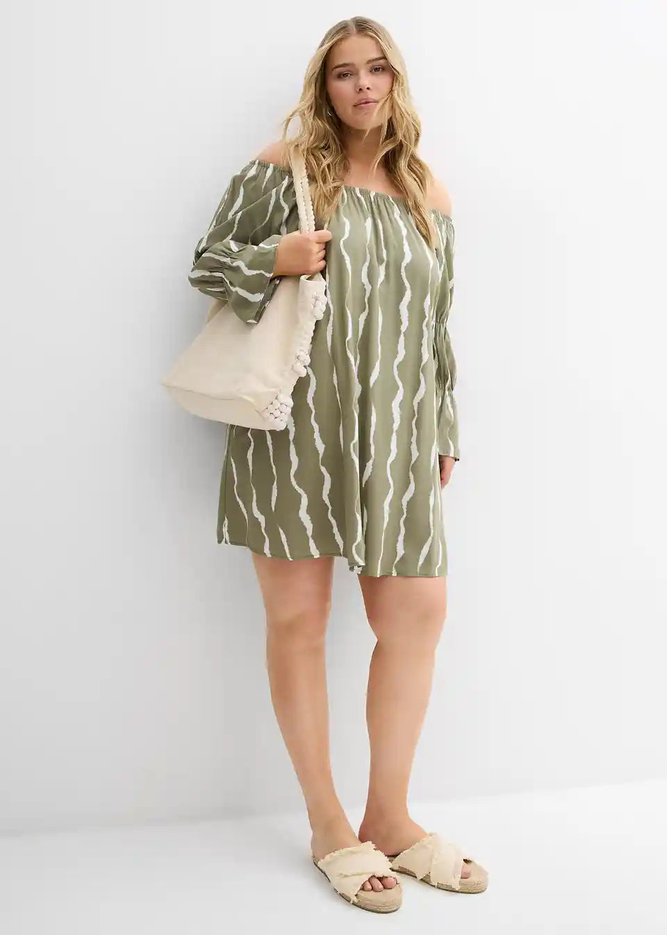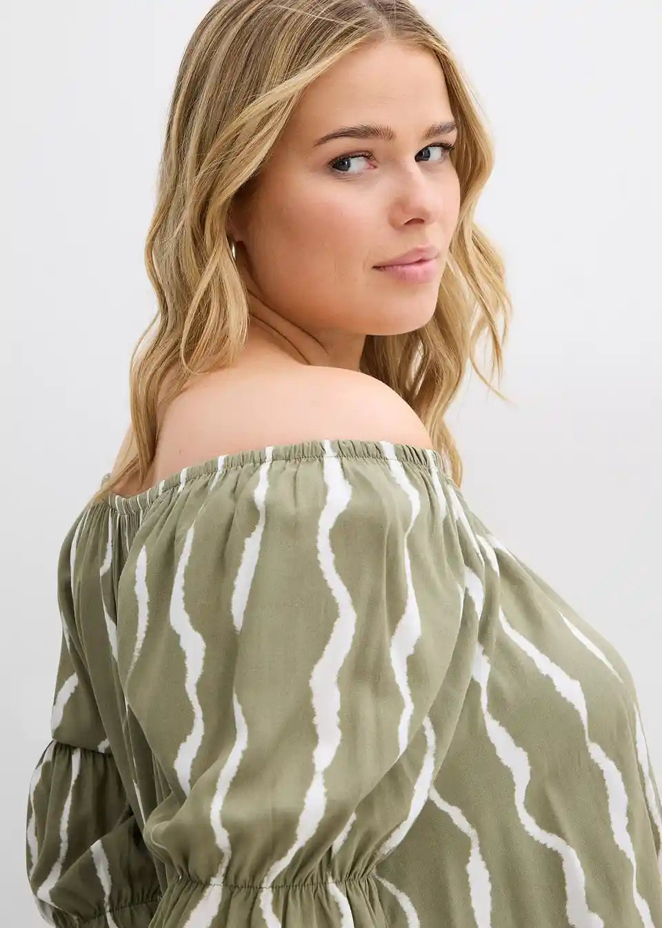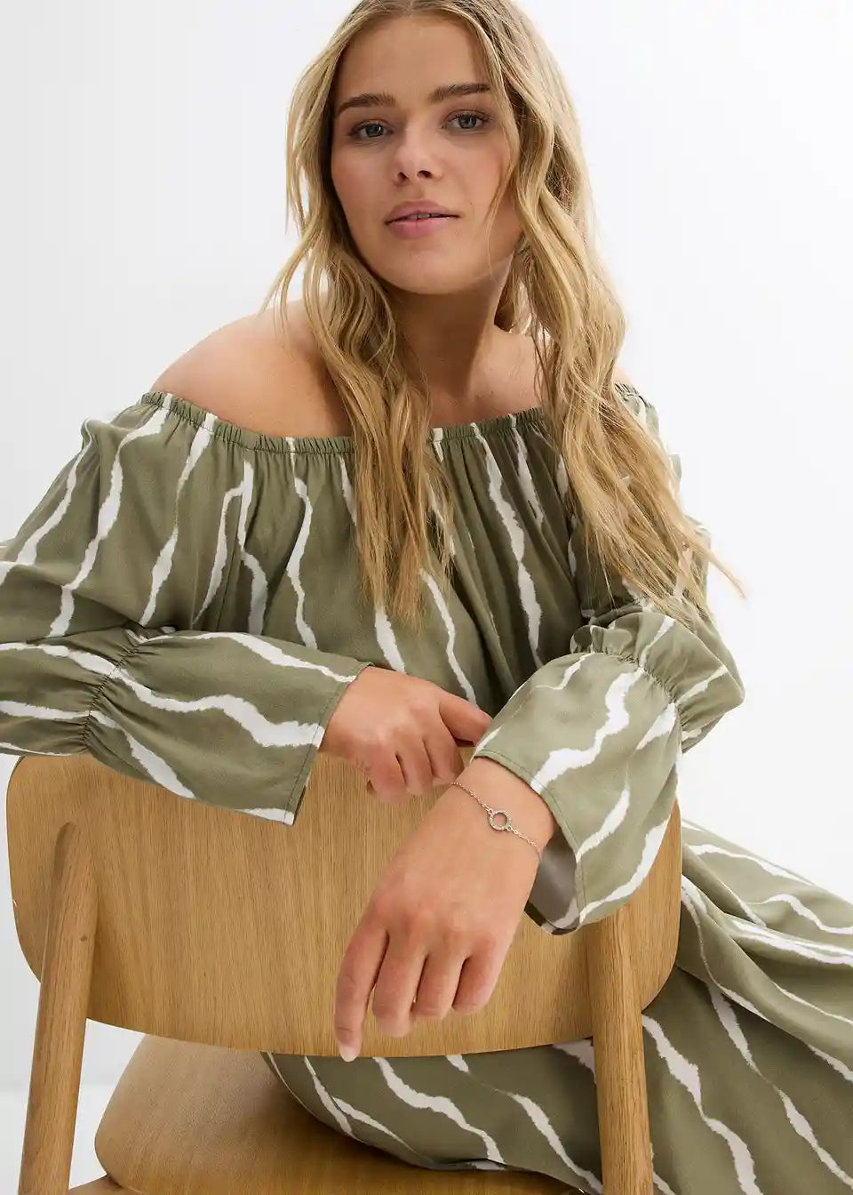 Obleka s carmen izrezom iz padajoče viskoze