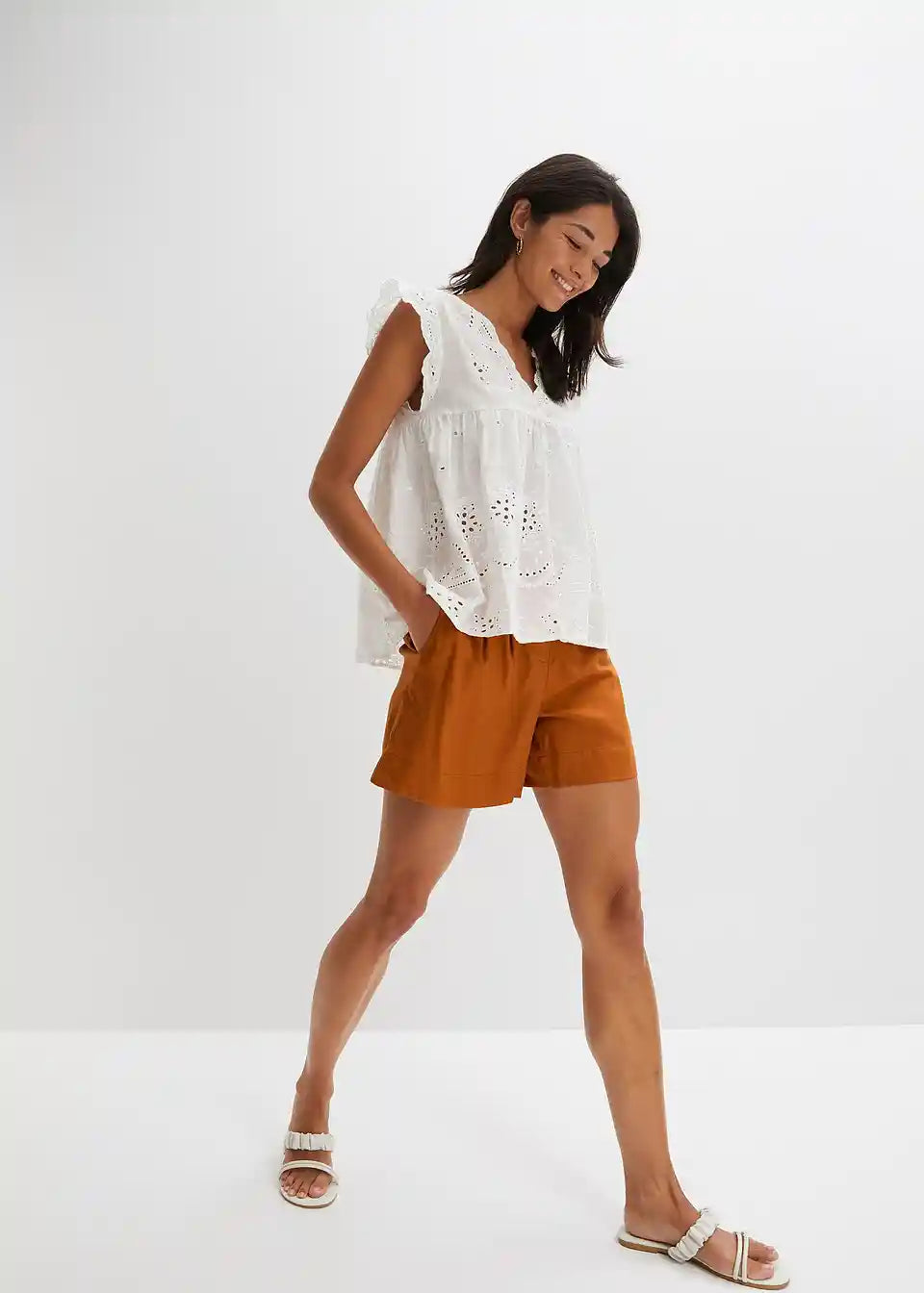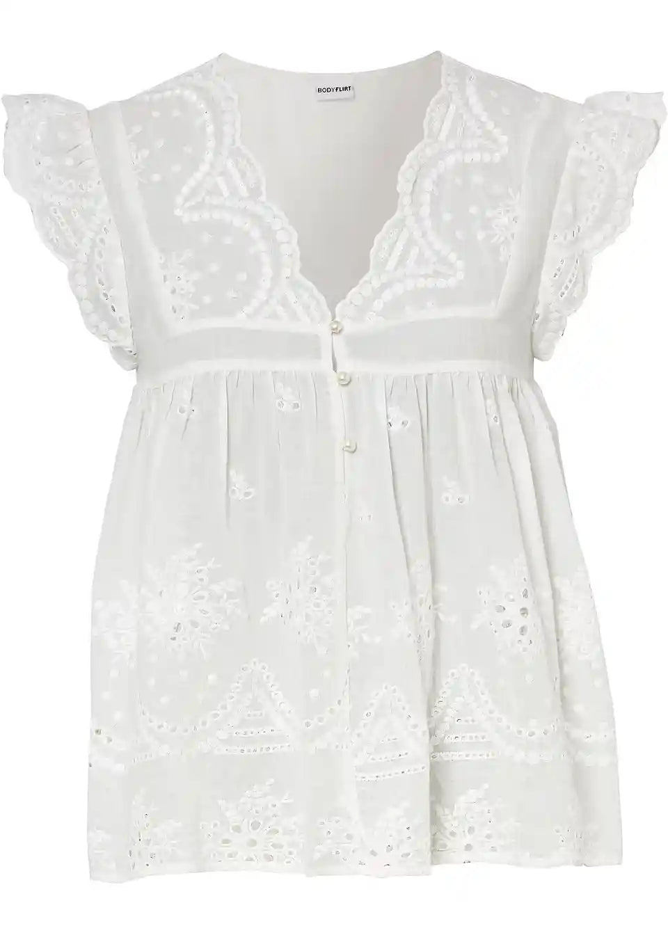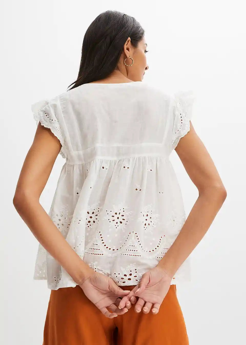 Čudovita cevasta bluza z luknjičastim vezenjem.