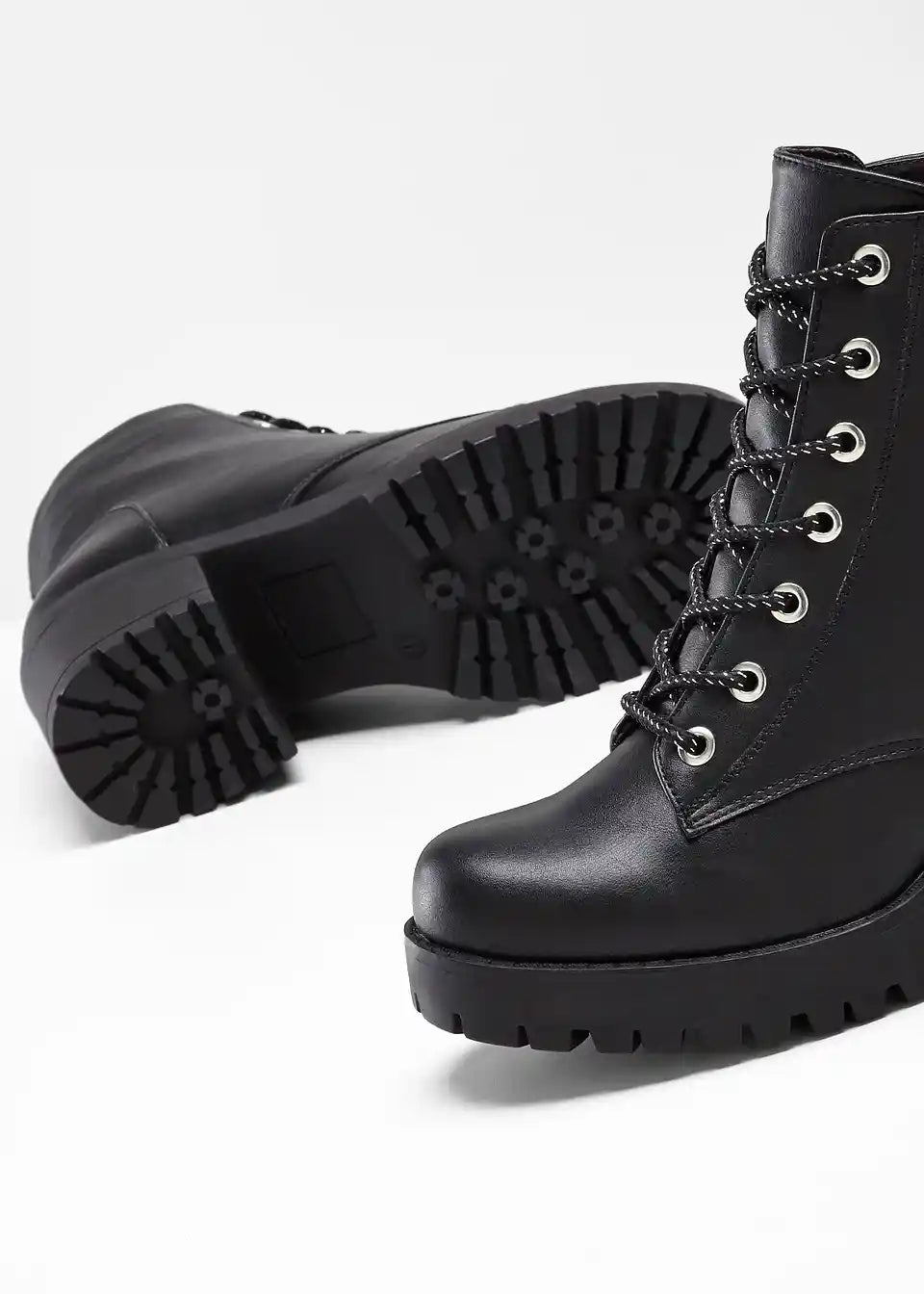 Biker dizajn čevljev s šnuro jih naredi za karizmatičen privlačen kos za vsak outfit.