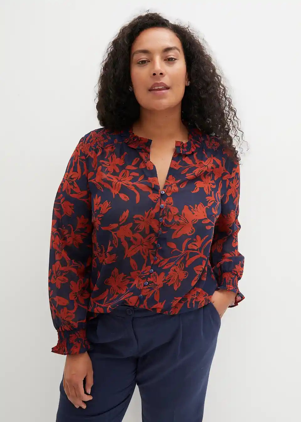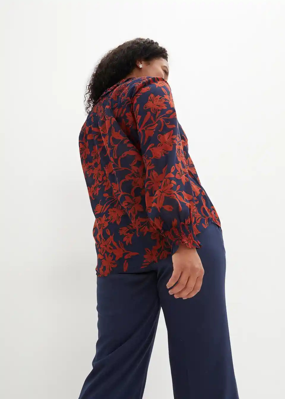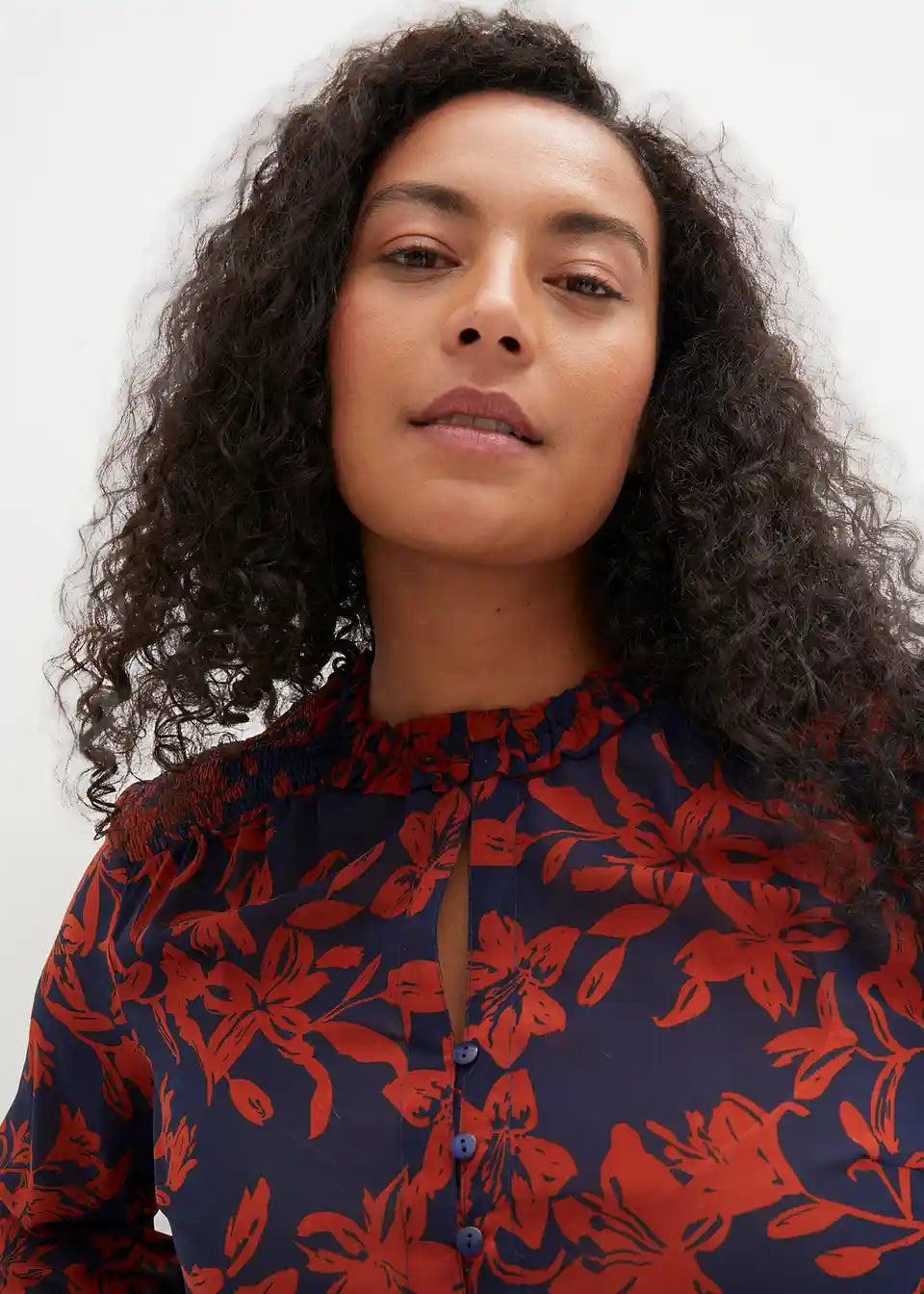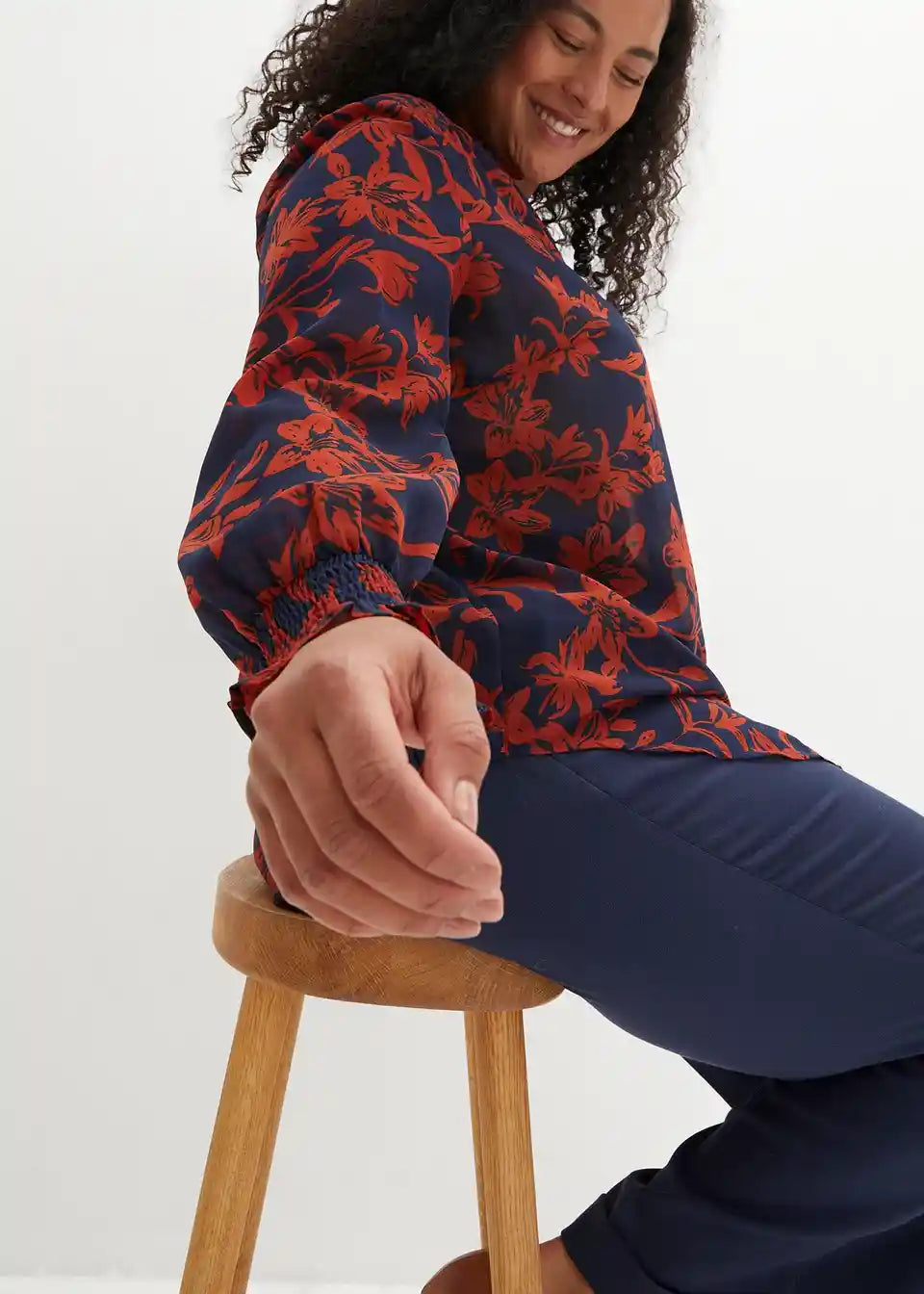 Lahkotno Telirana Bluzon z majhnim Stoječim Ovratnikom in 3/4-Rokavi