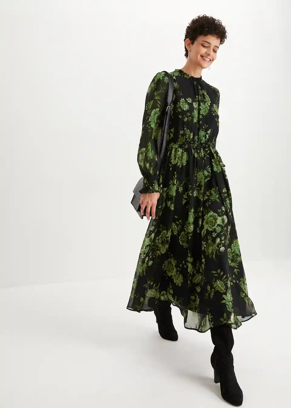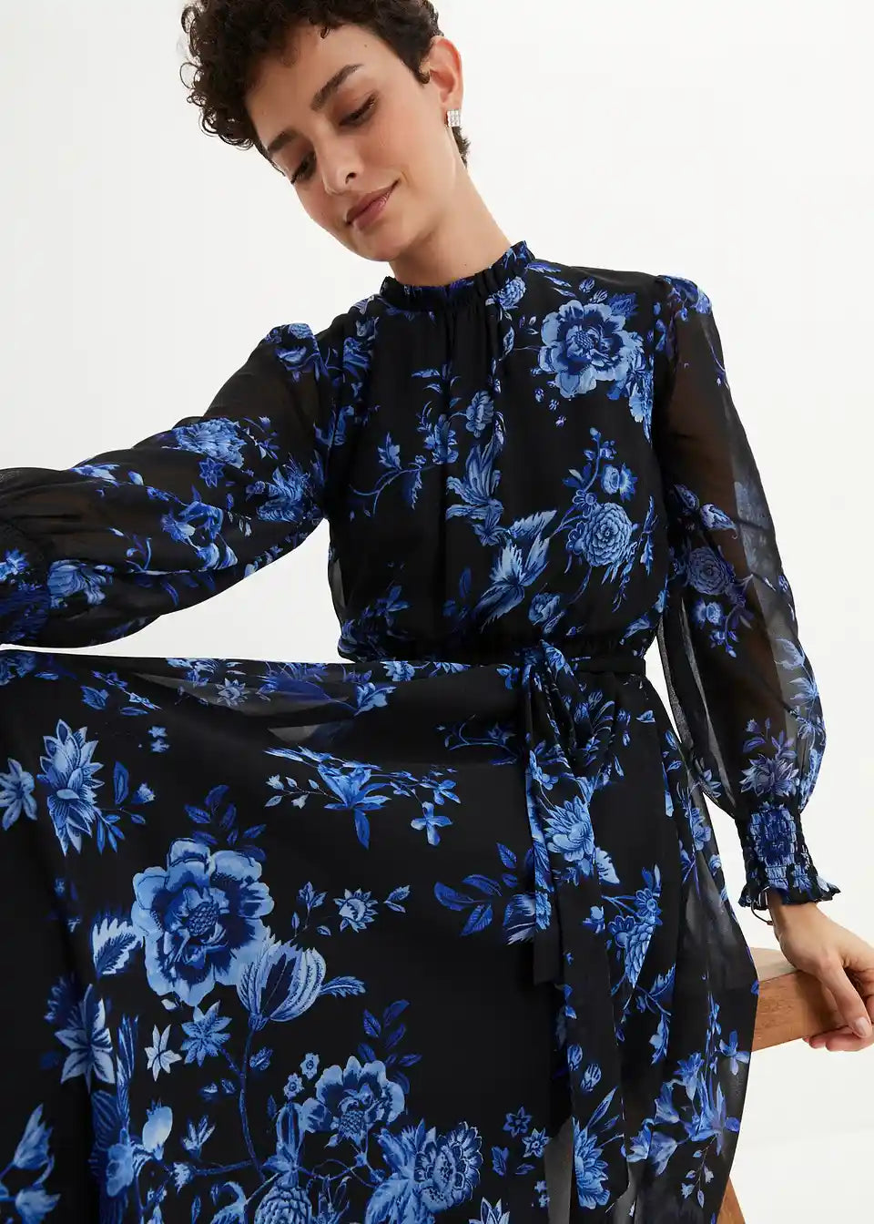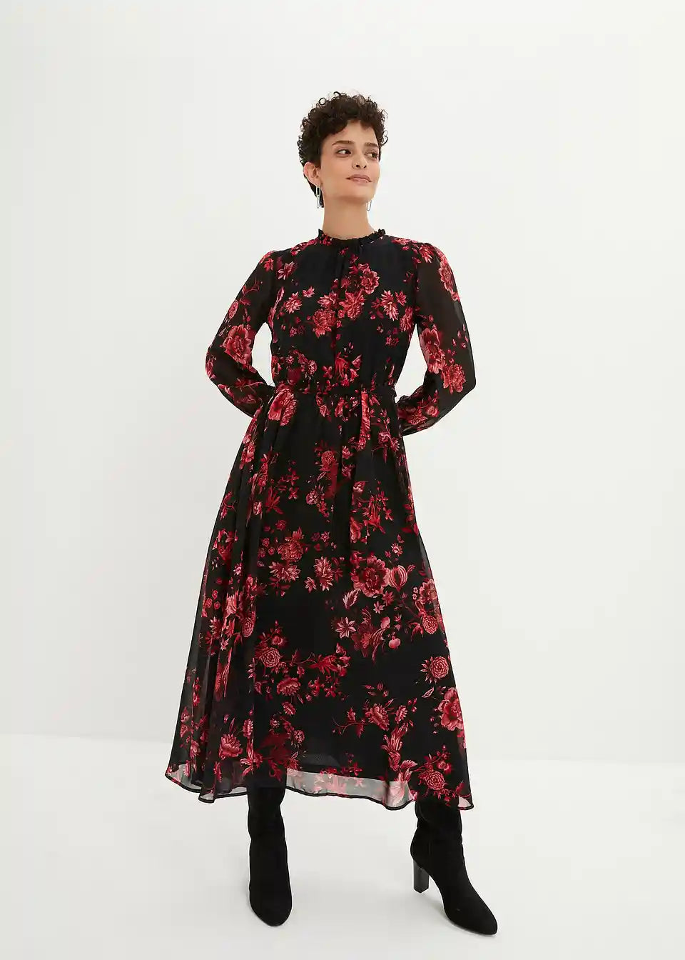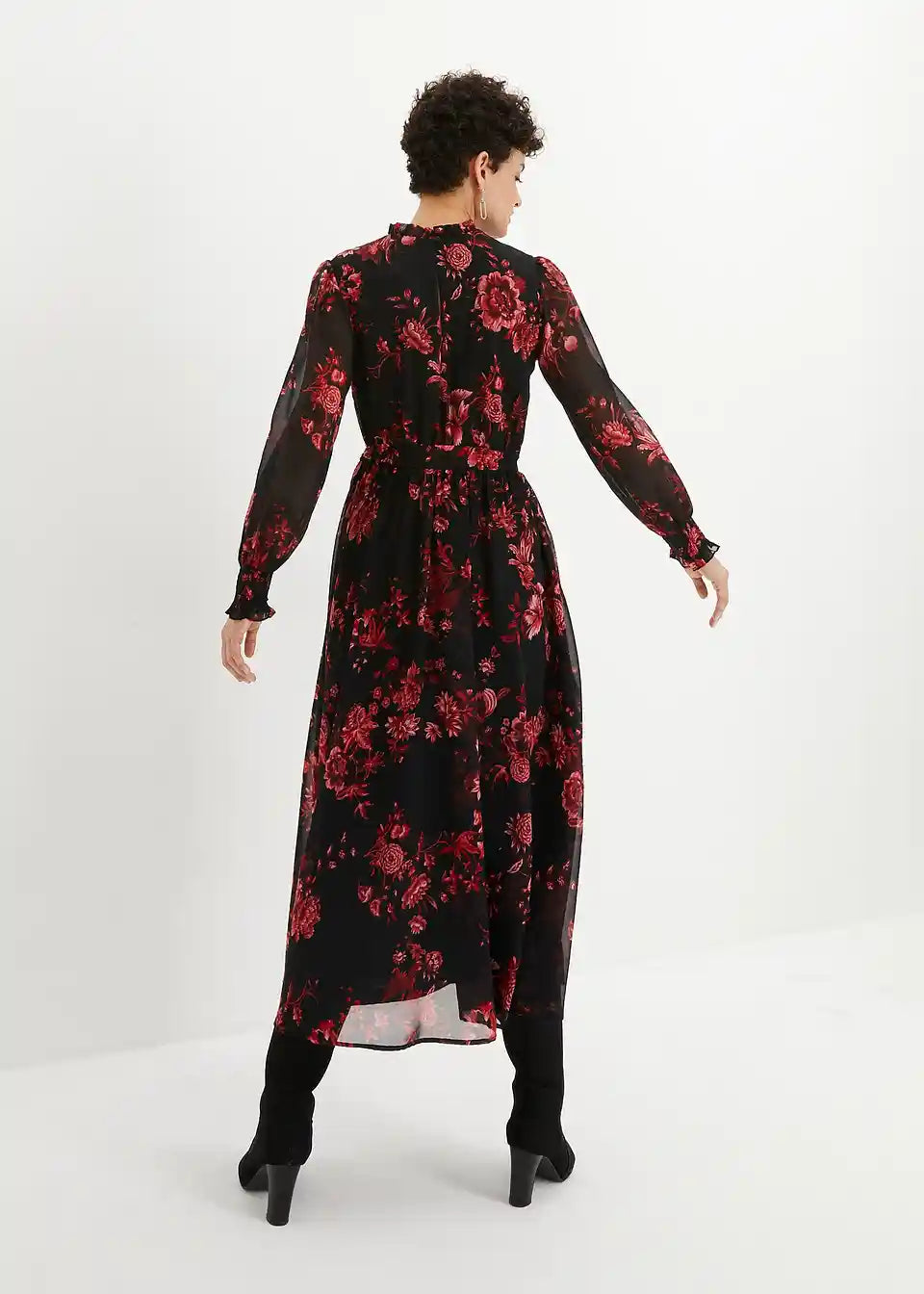 Elegantna obleka iz šifona z vzorcem rož