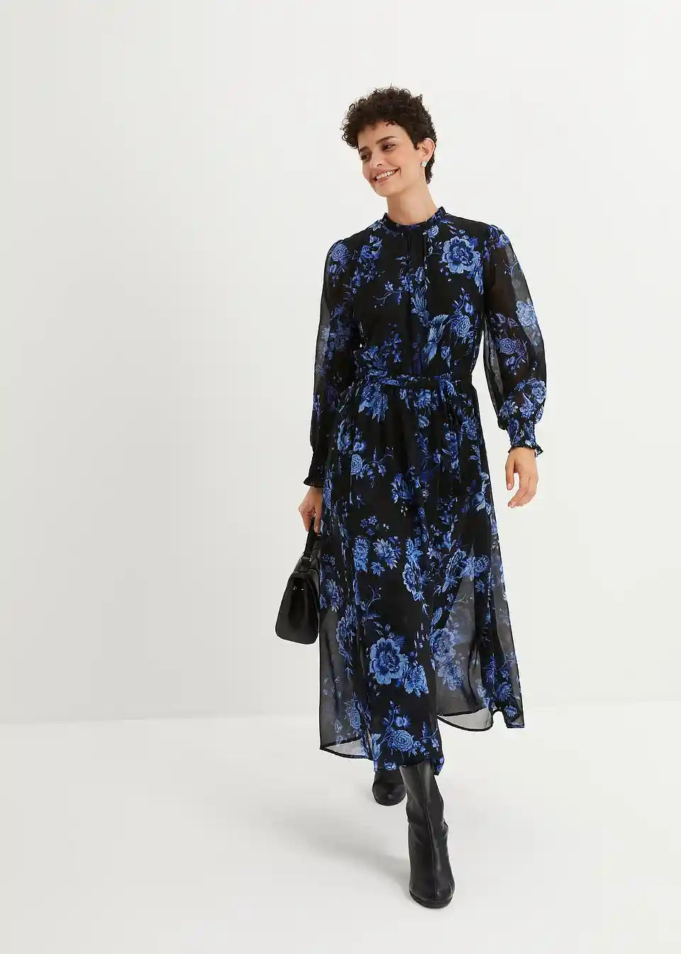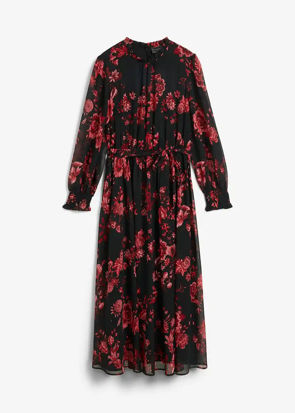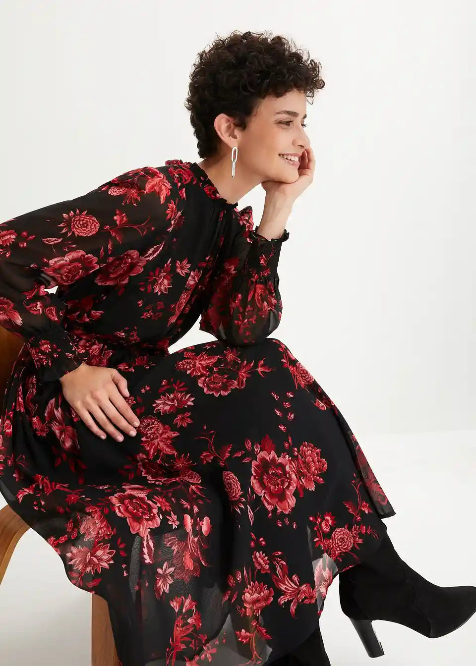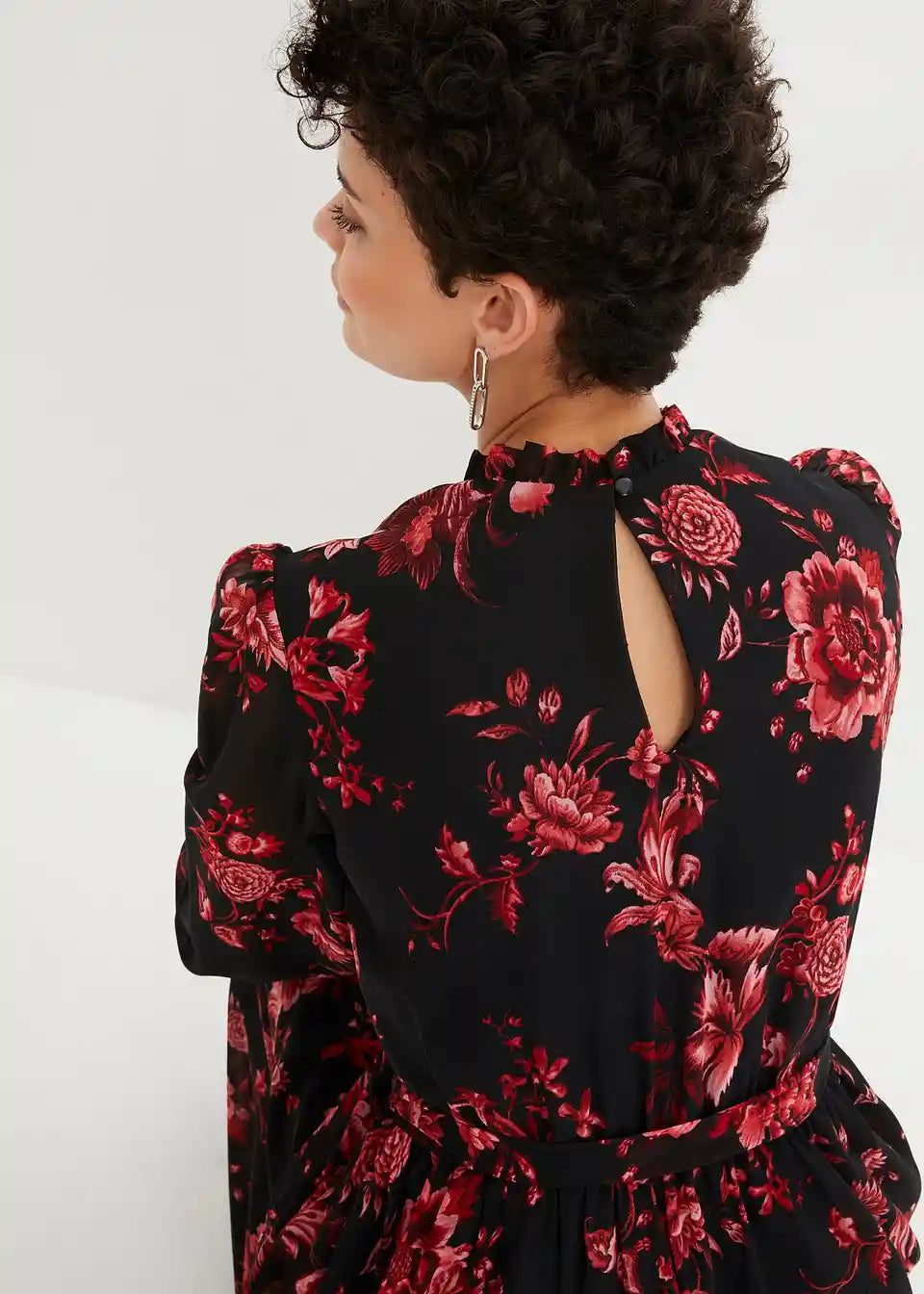 Elegantna obleka iz šifona z vzorcem rož