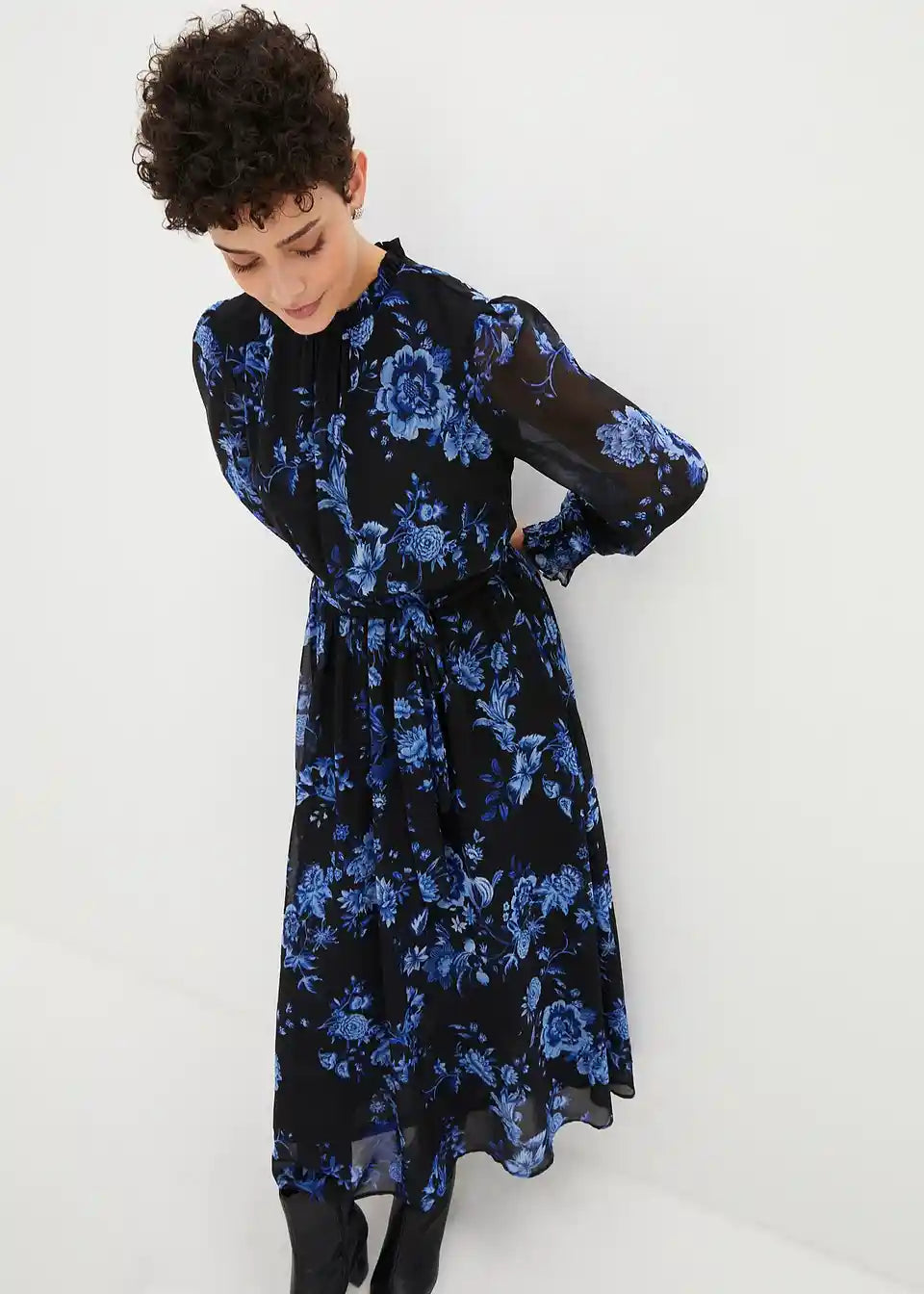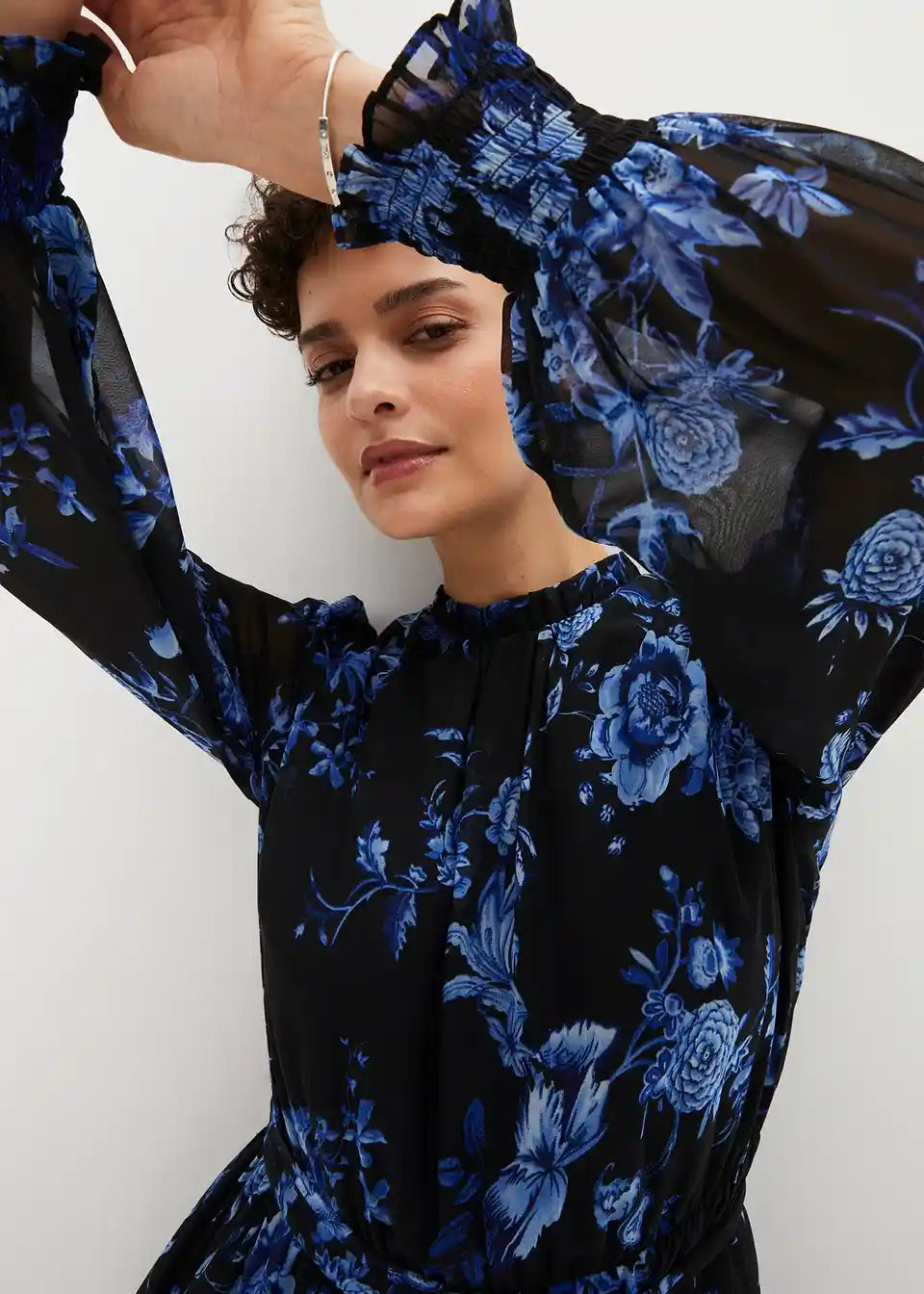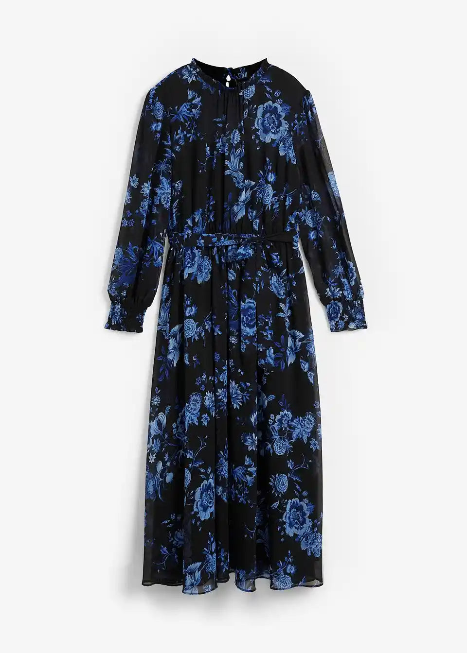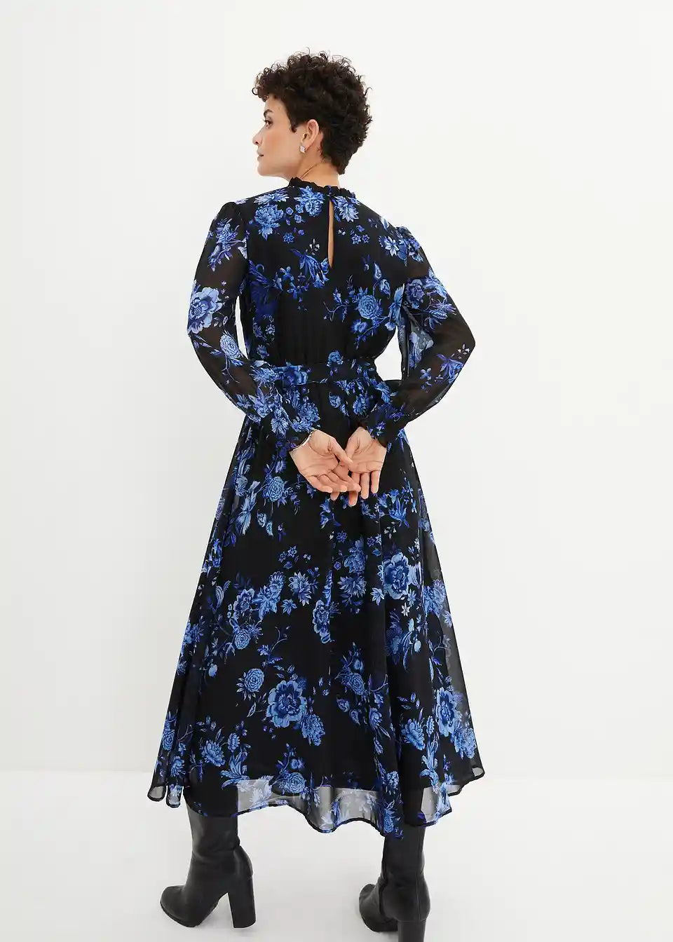 Elegantna obleka iz šifona z vzorcem rož