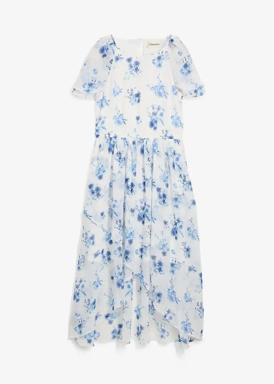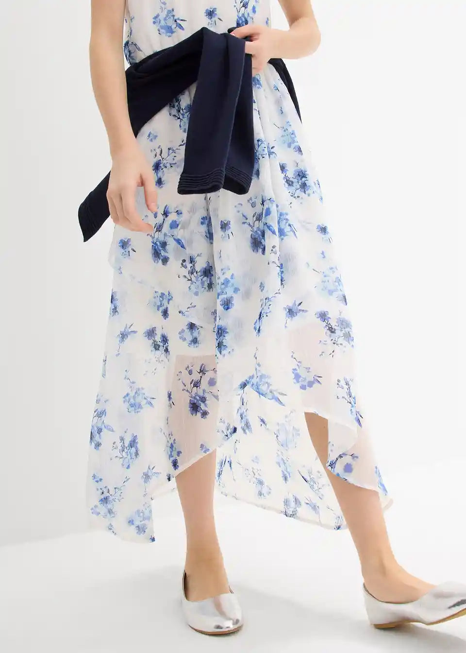 Poletna dekliška chiffon obleka z rožastim vzorcem