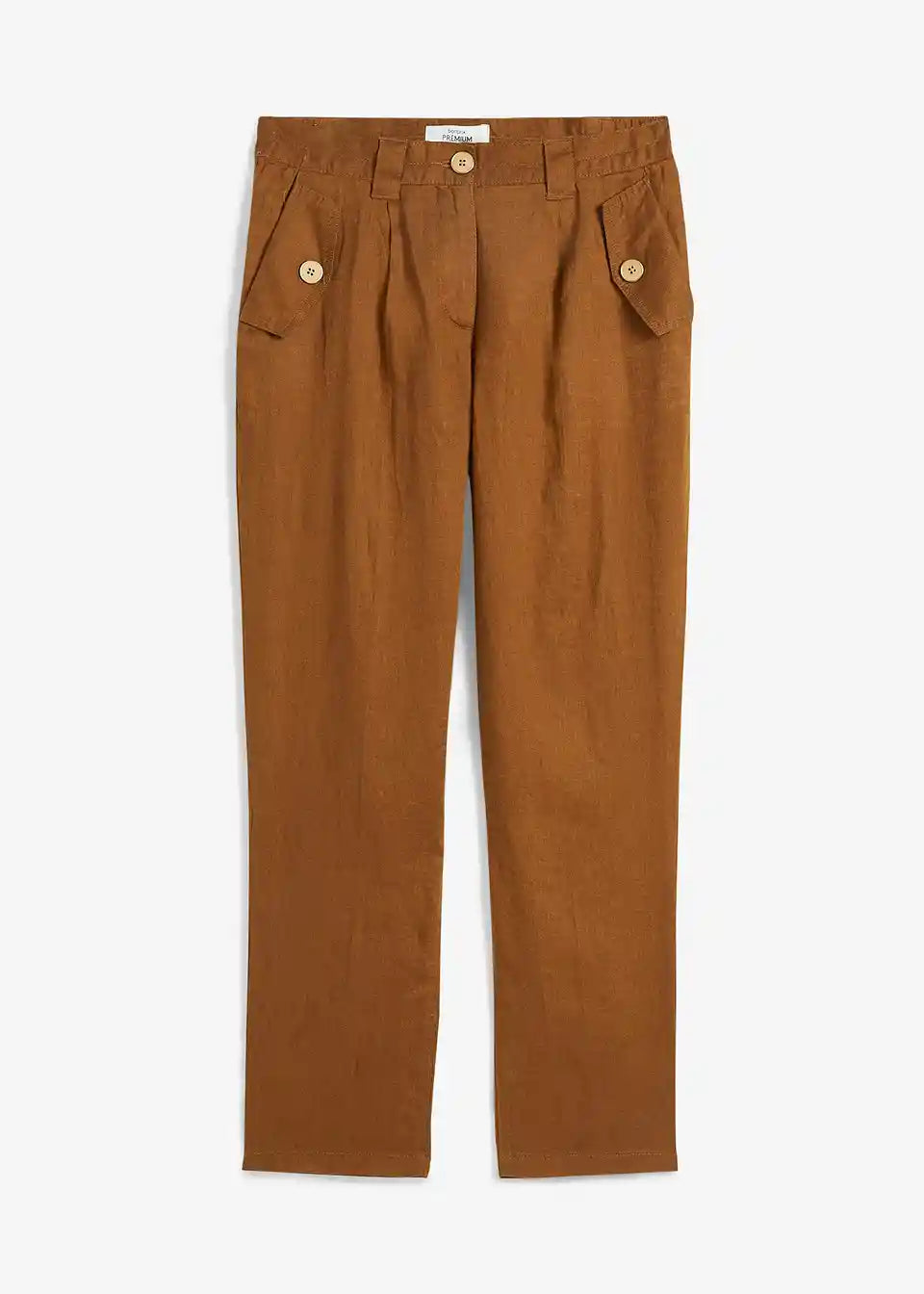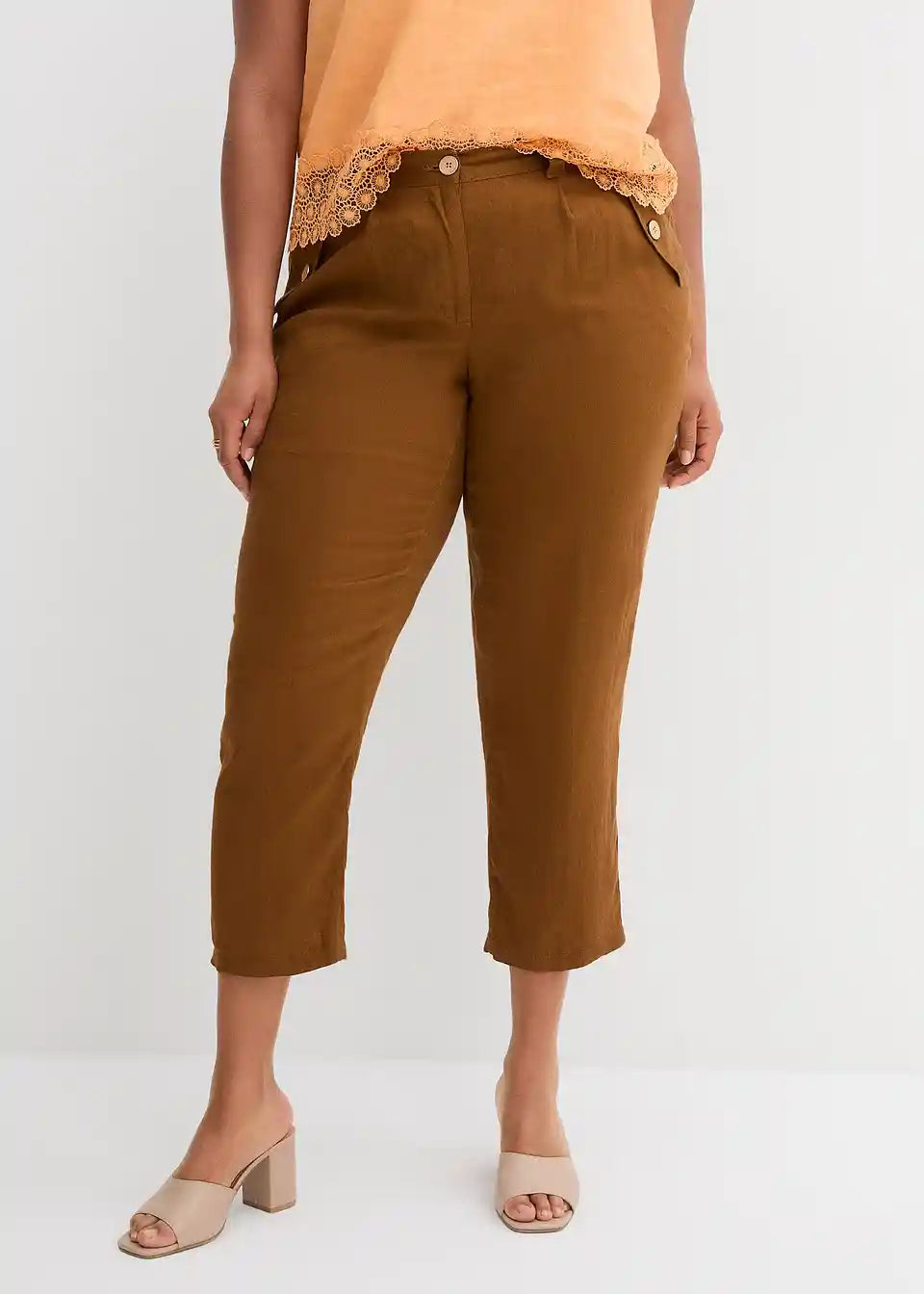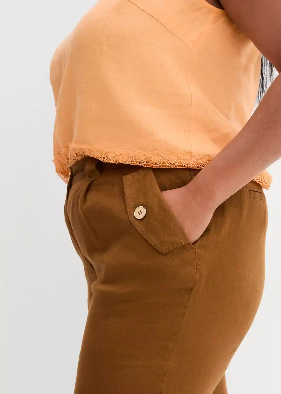 poletne lanene hlače v podaljšani 7/8 dolžini z okrasnimi gumbi