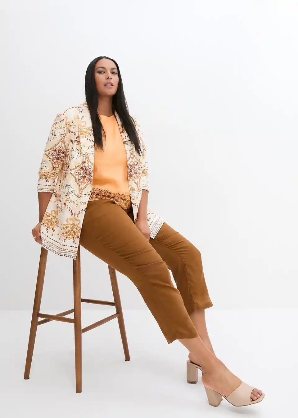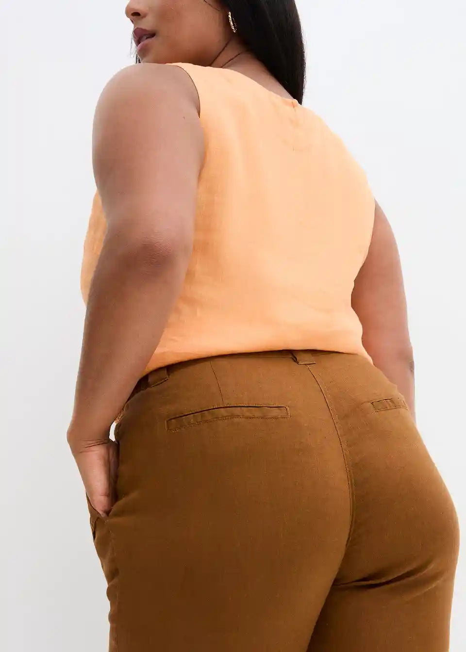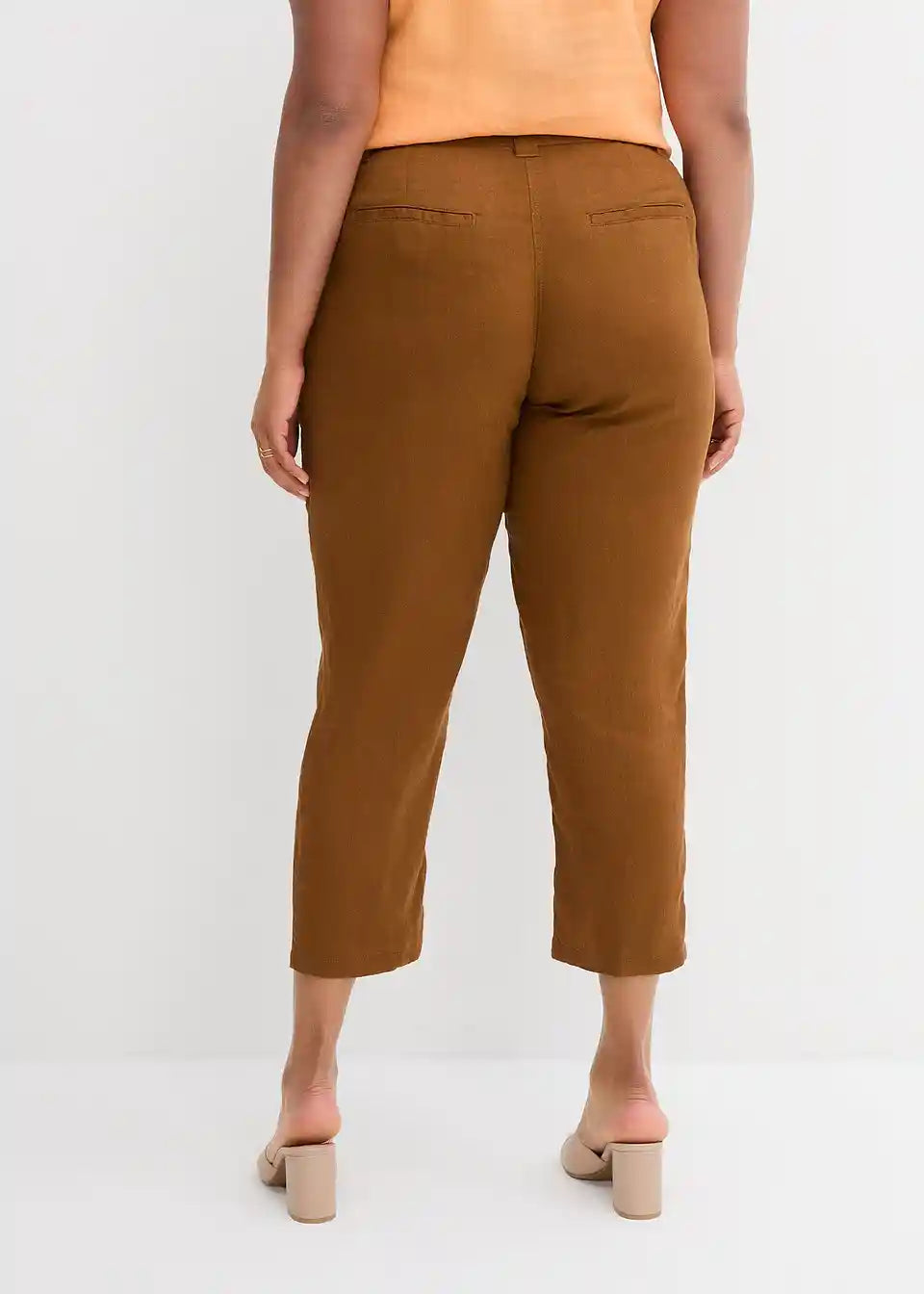 poletne lanene hlače v podaljšani 7/8 dolžini z okrasnimi gumbi