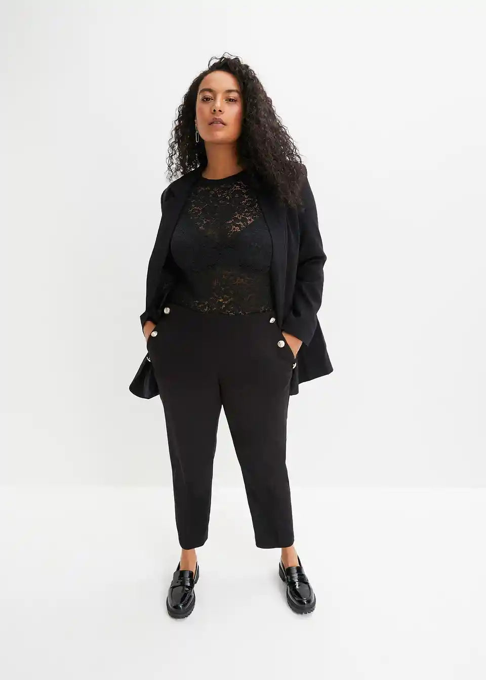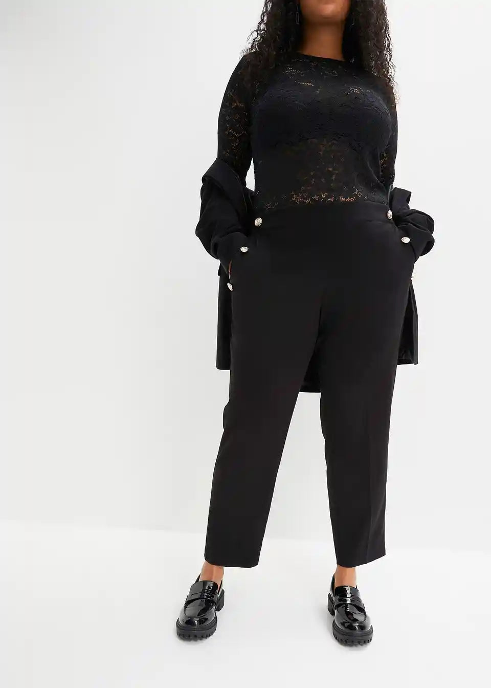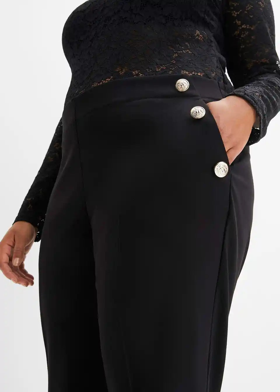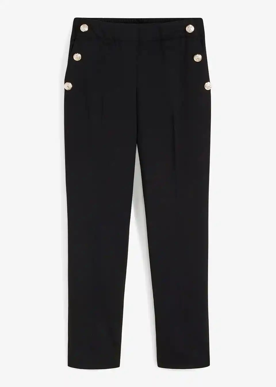 Elegantne hlače z udobnim pasom in dekorativnimi gumbi.