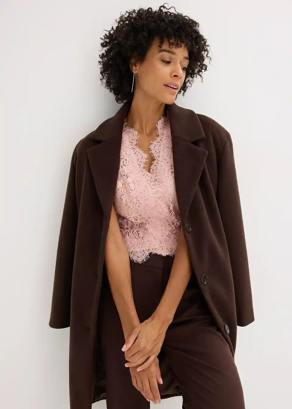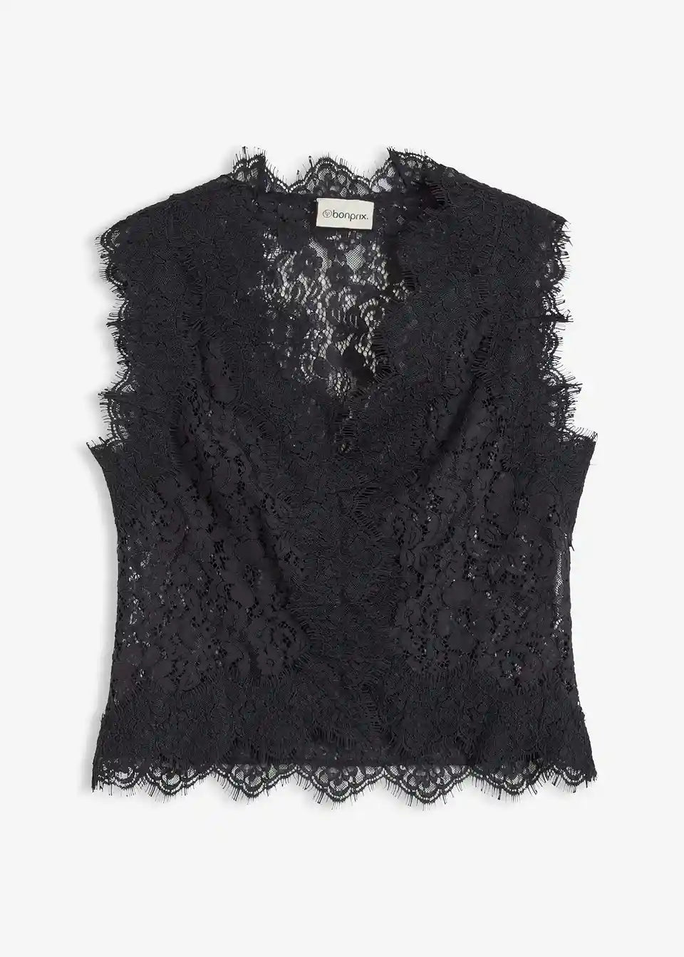 <V kombinaciji z bluzo ali preprosto majico z dolgimi rokavi ustvari ta eleganten čipkast telovnik prefinjen videz.