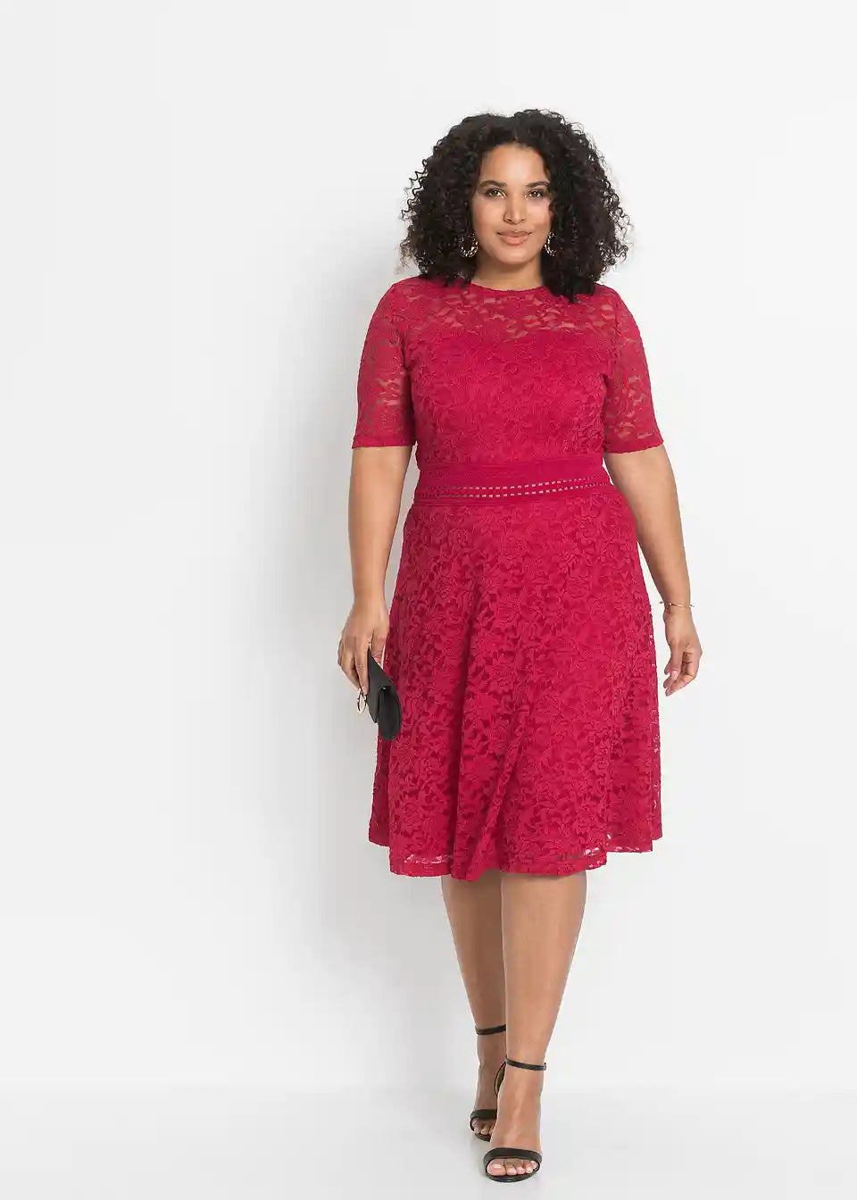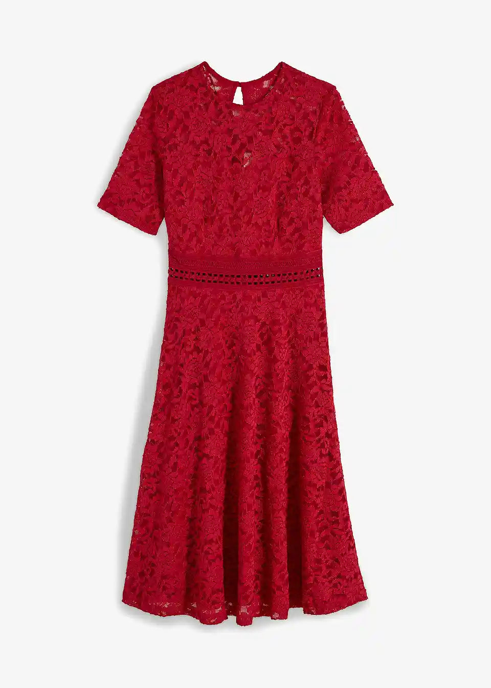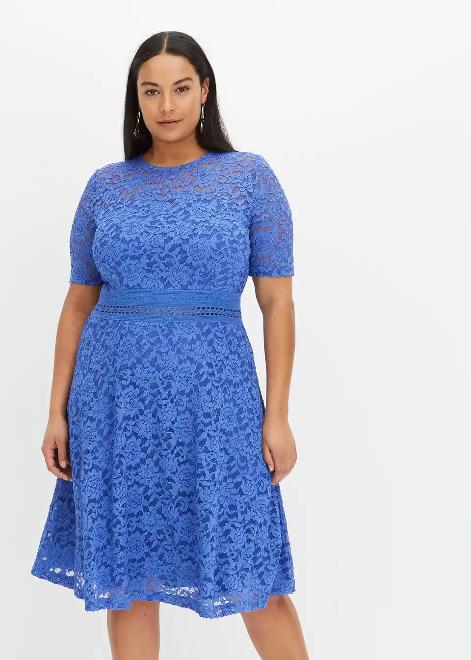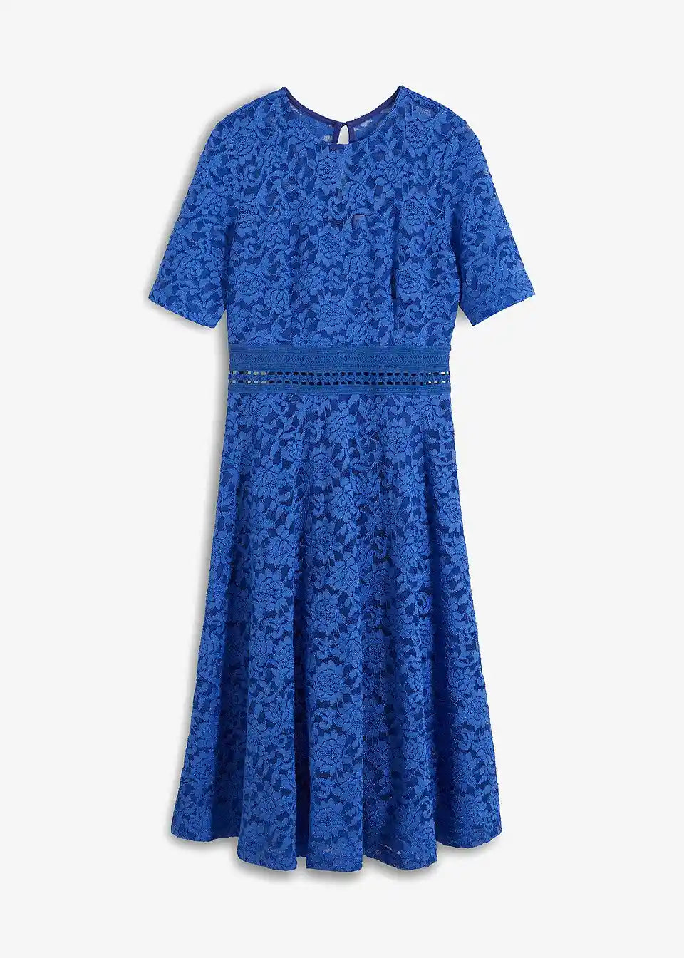Romantična in ženstvena: midi obleka iz čipke z čipkastim vložkom v pasu