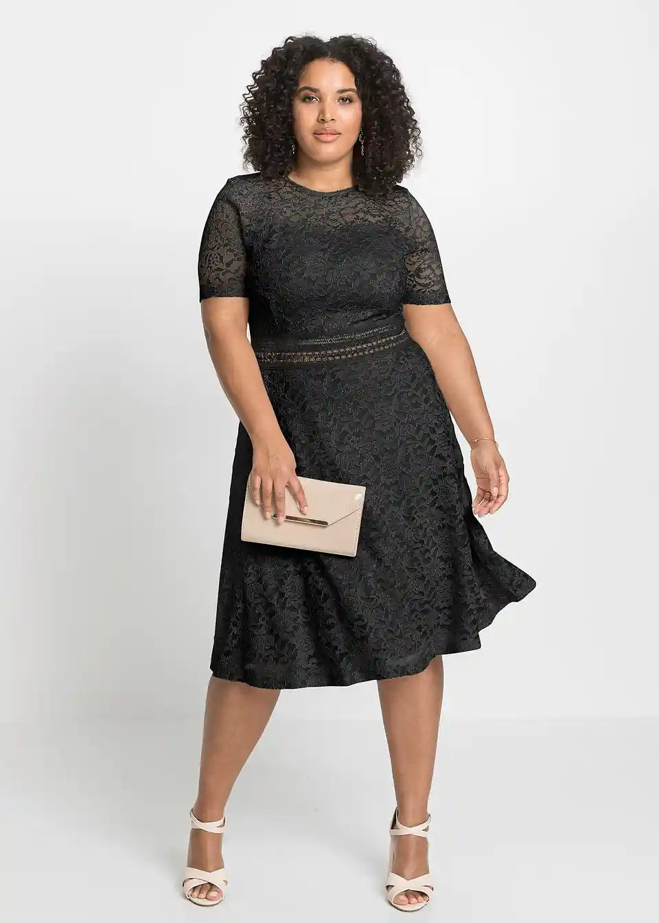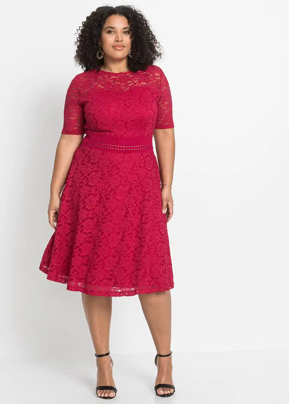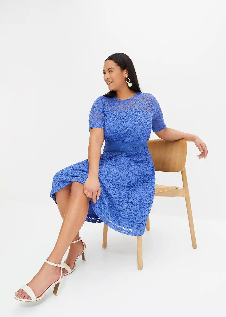 Romantična in ženstvena: midi obleka iz čipke z čipkastim vložkom v pasu