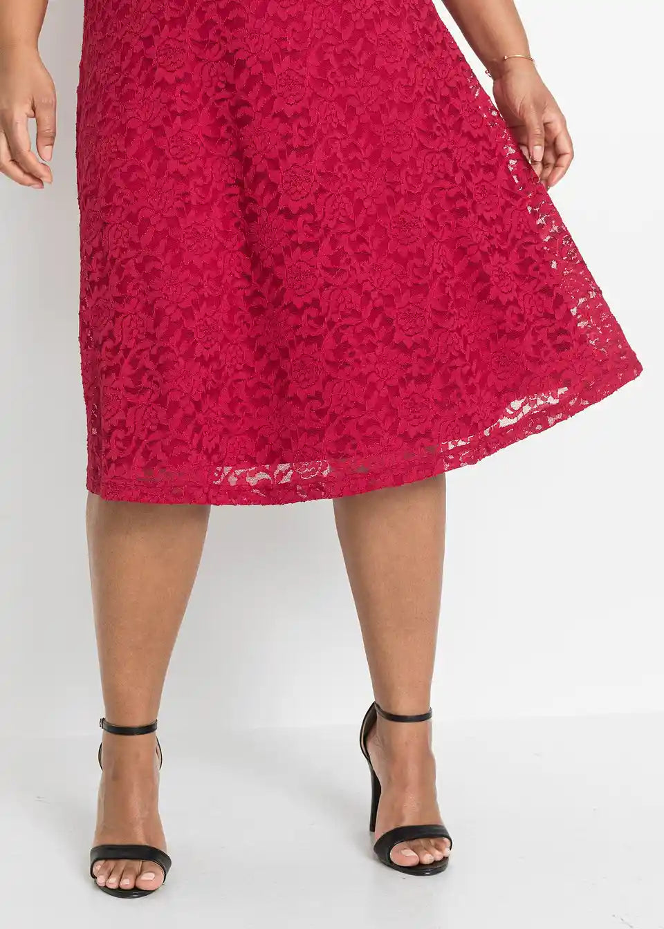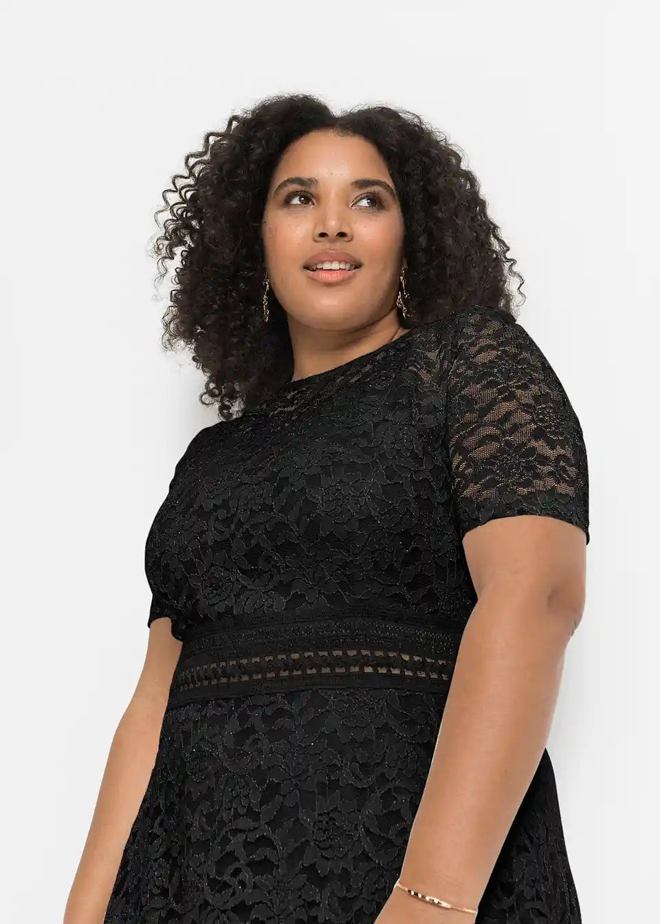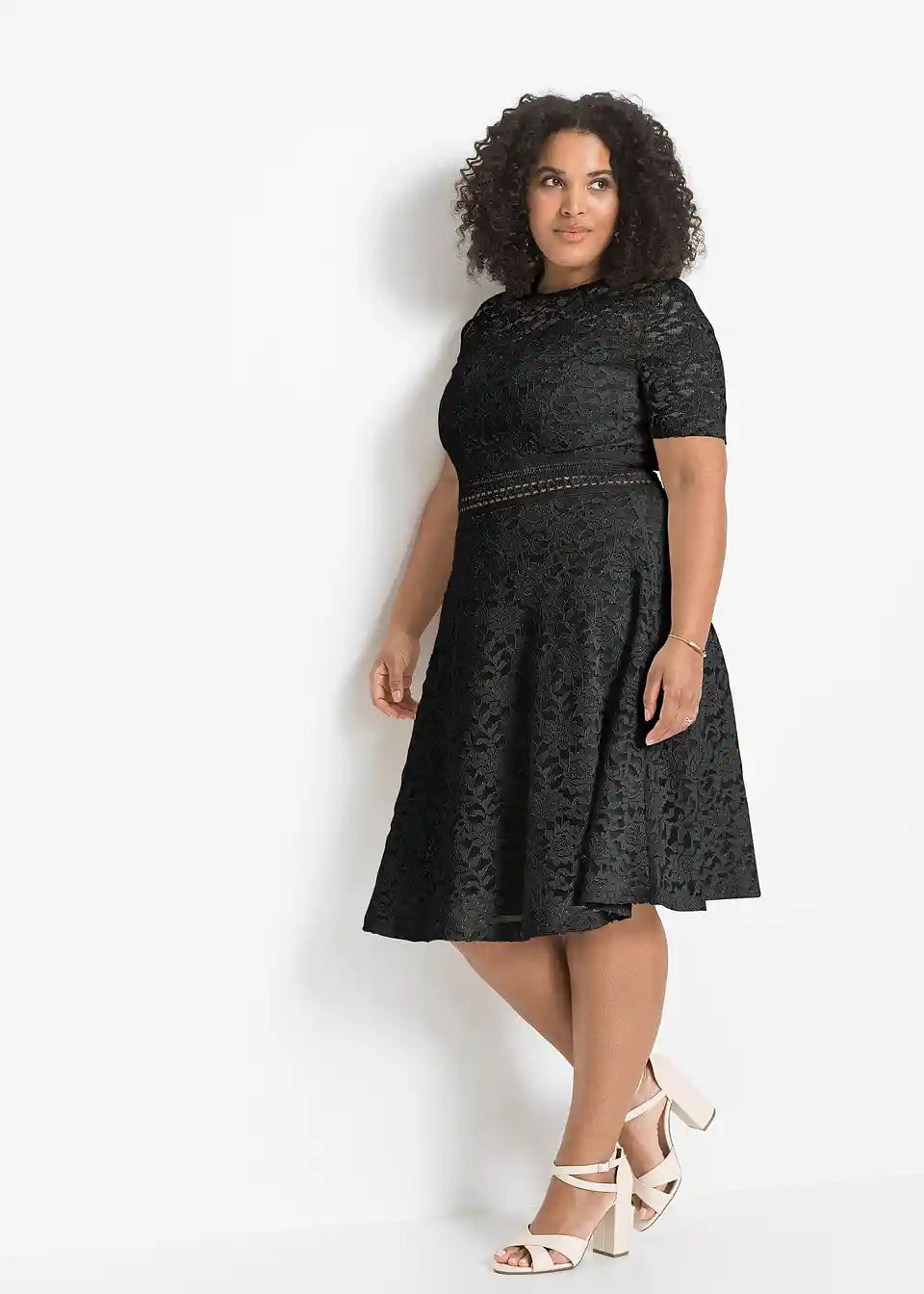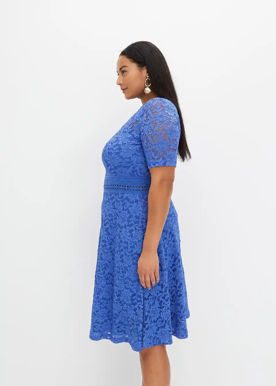 Romantična in ženstvena: midi obleka iz čipke z čipkastim vložkom v pasu