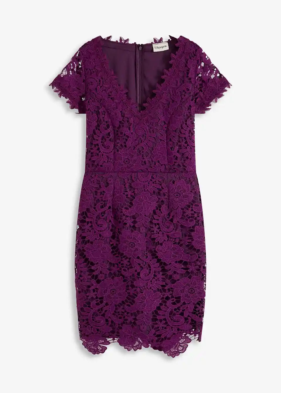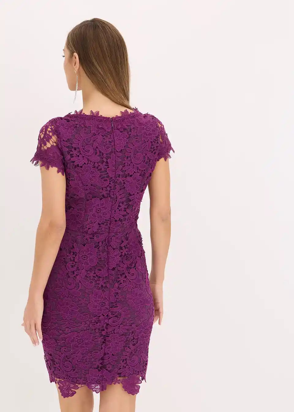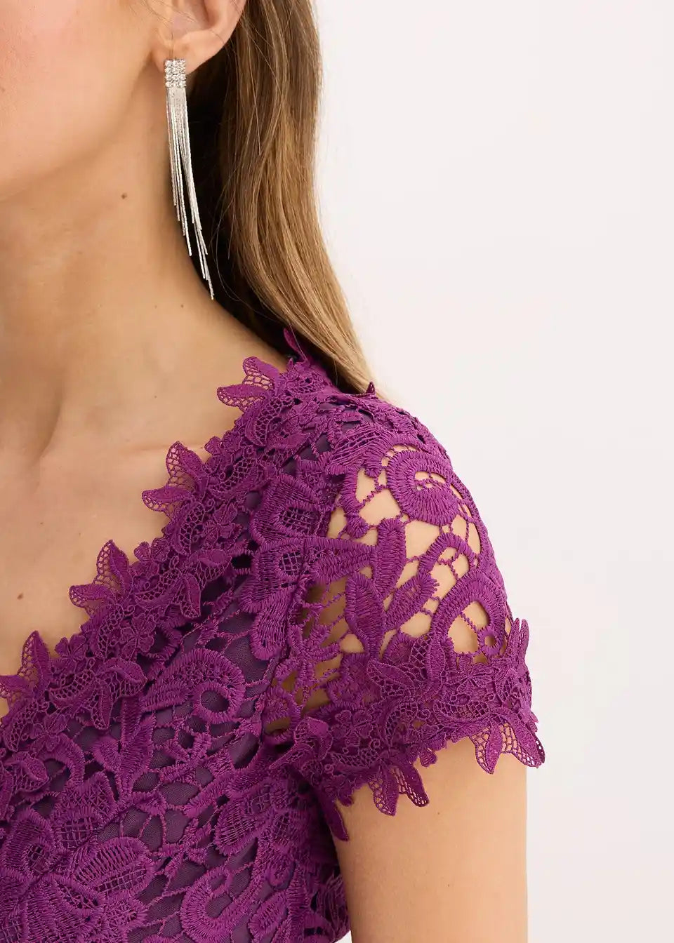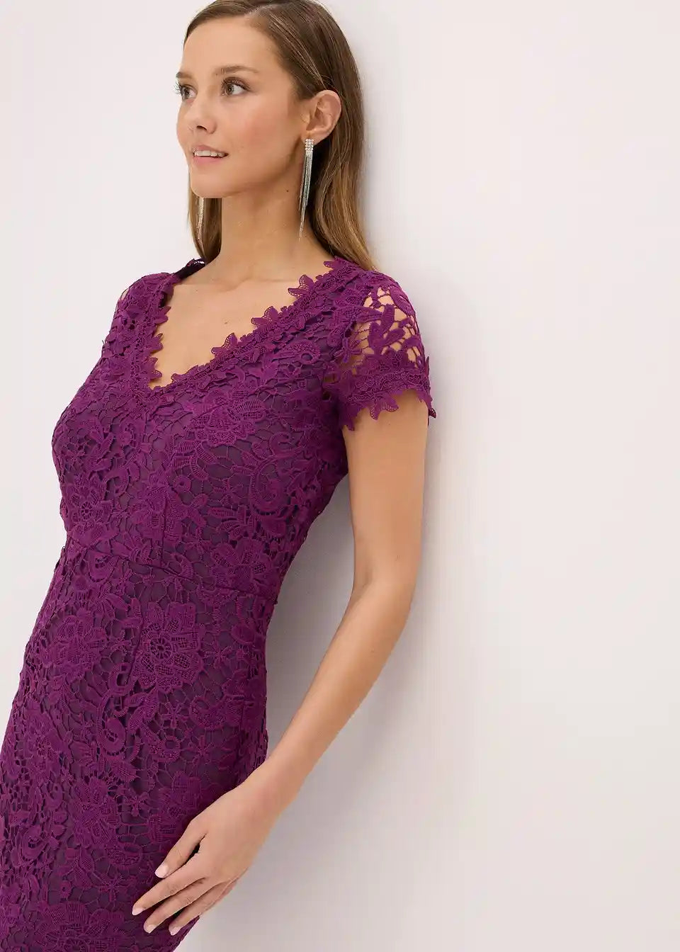 Obleka s čipko in kvačkano aplikacijo na izrezu