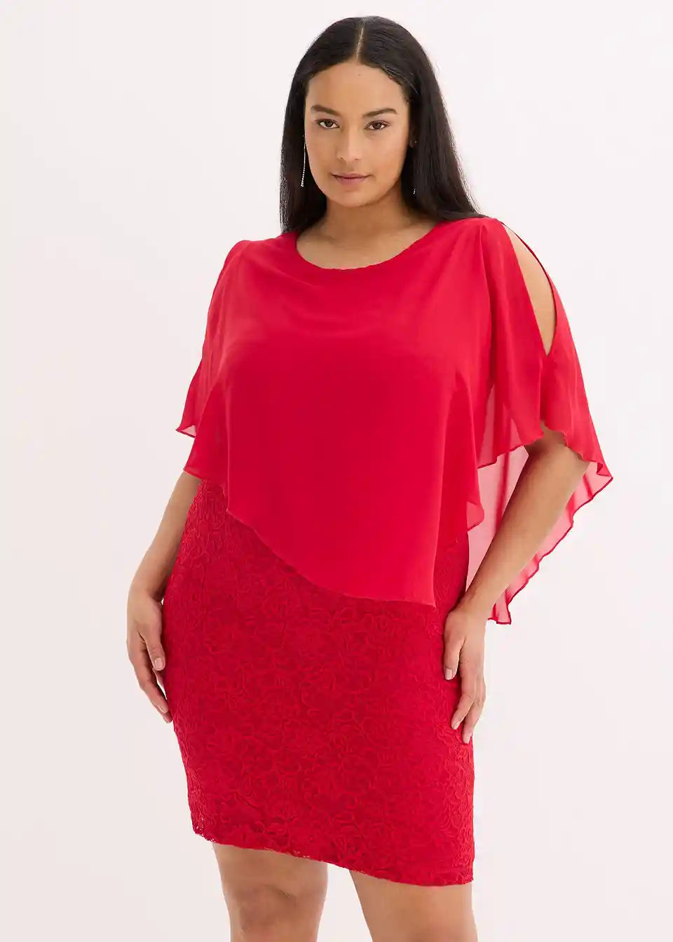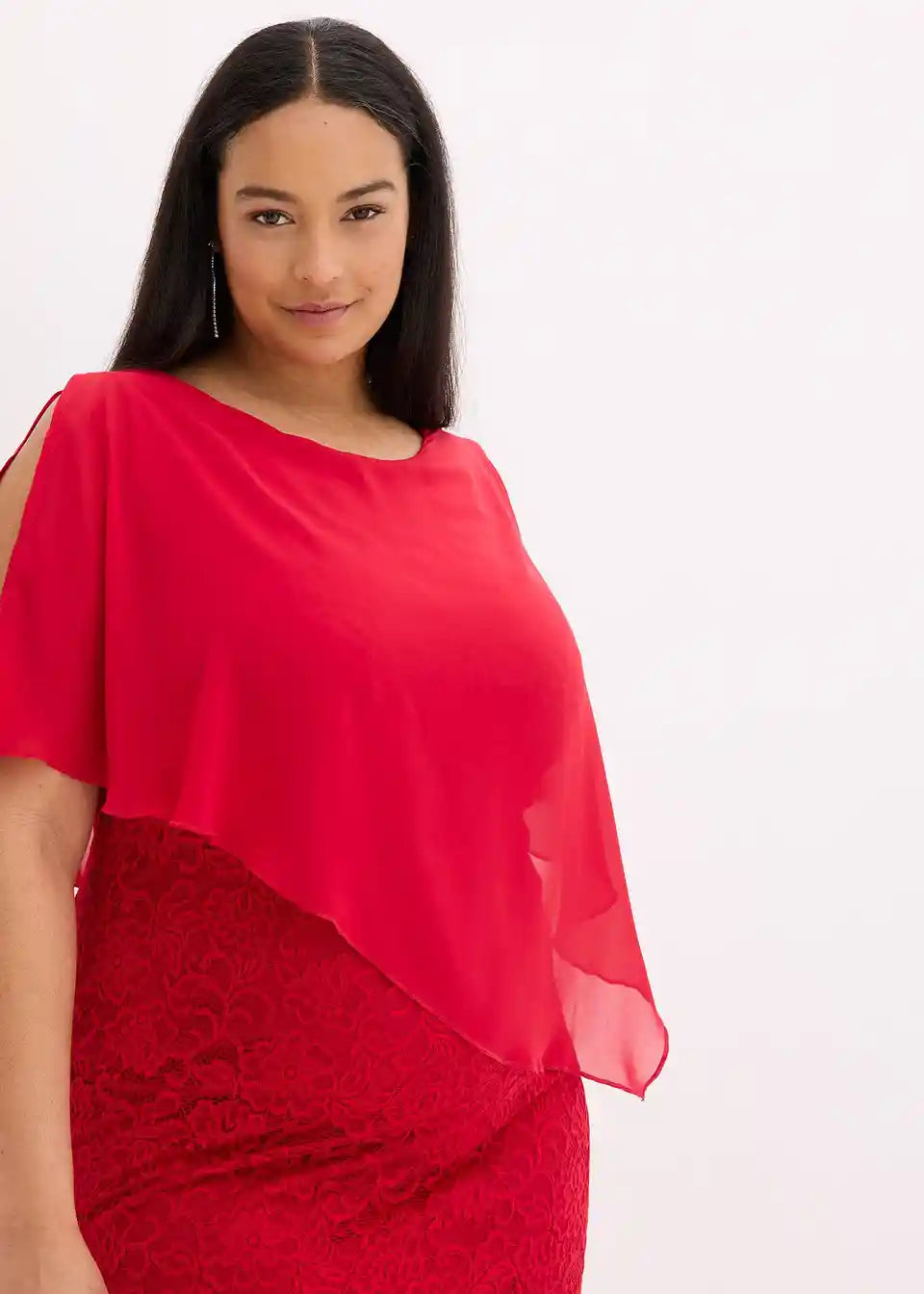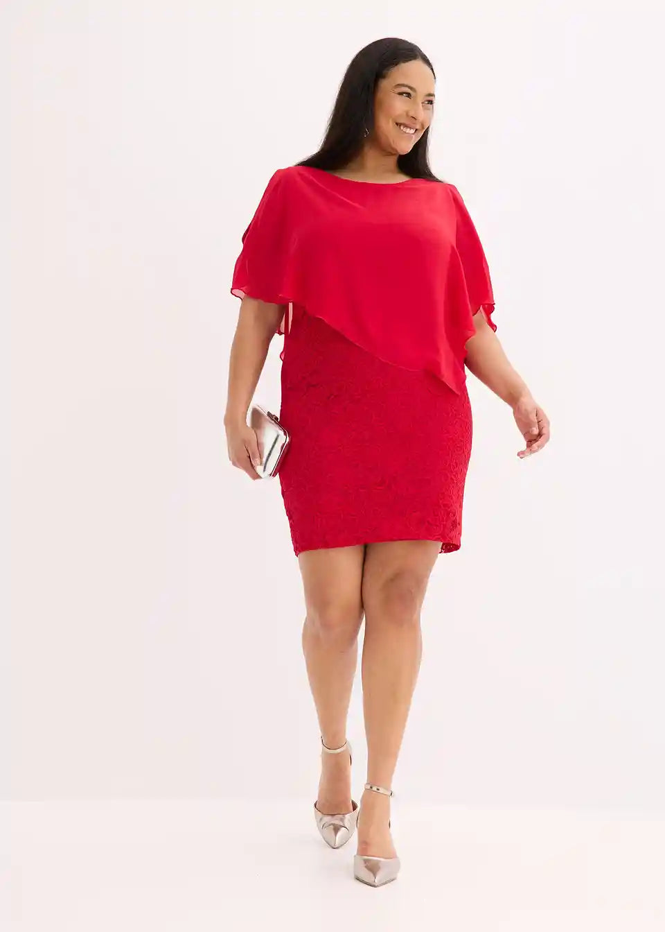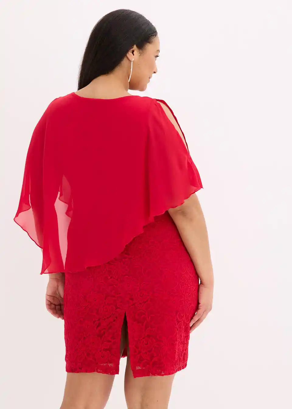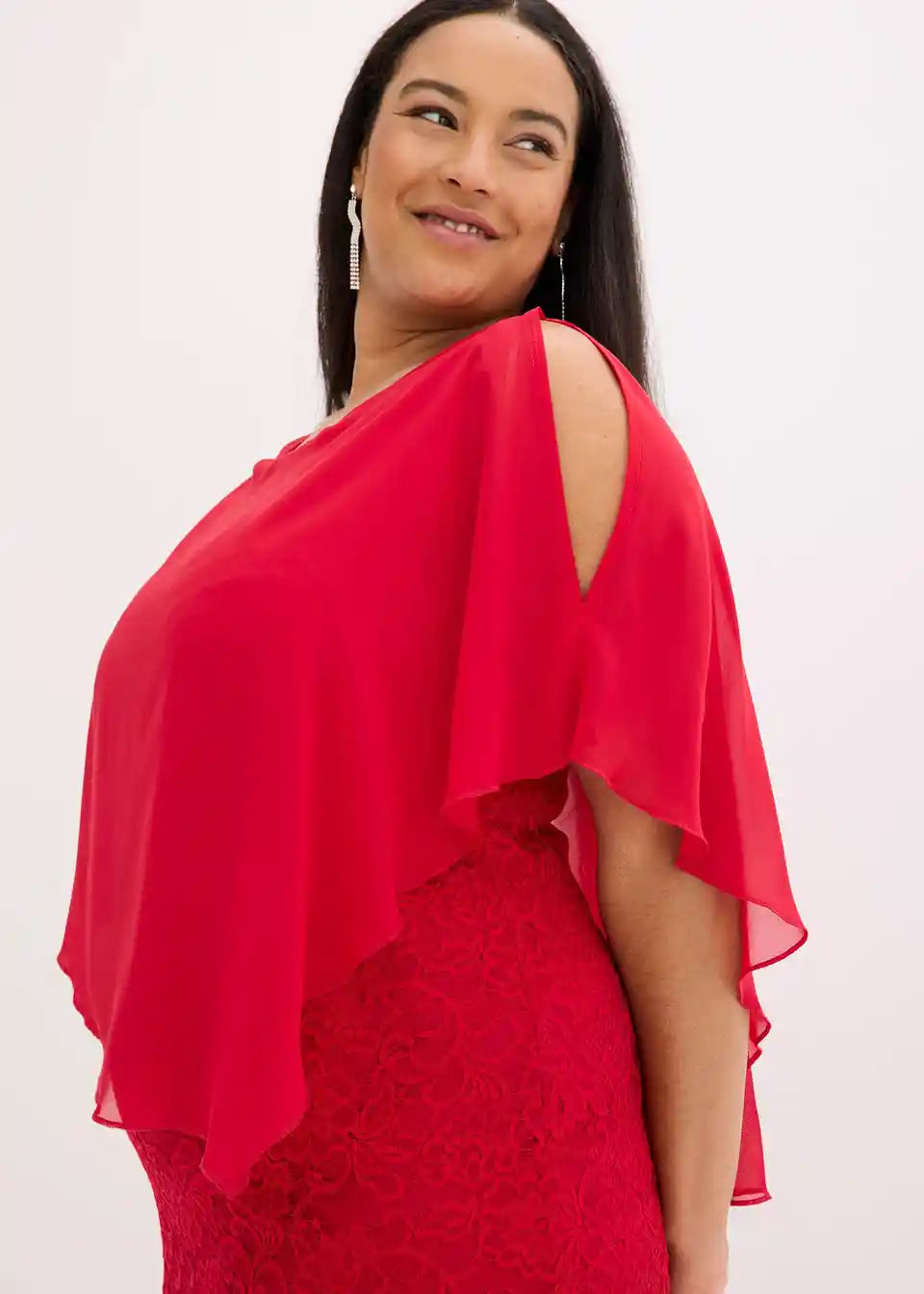 Ženstveno in prikrivajoče: mini čipkasta obleka z očarljivim cvetličnim vzorcem ter pregrinjalom iz finega šifona