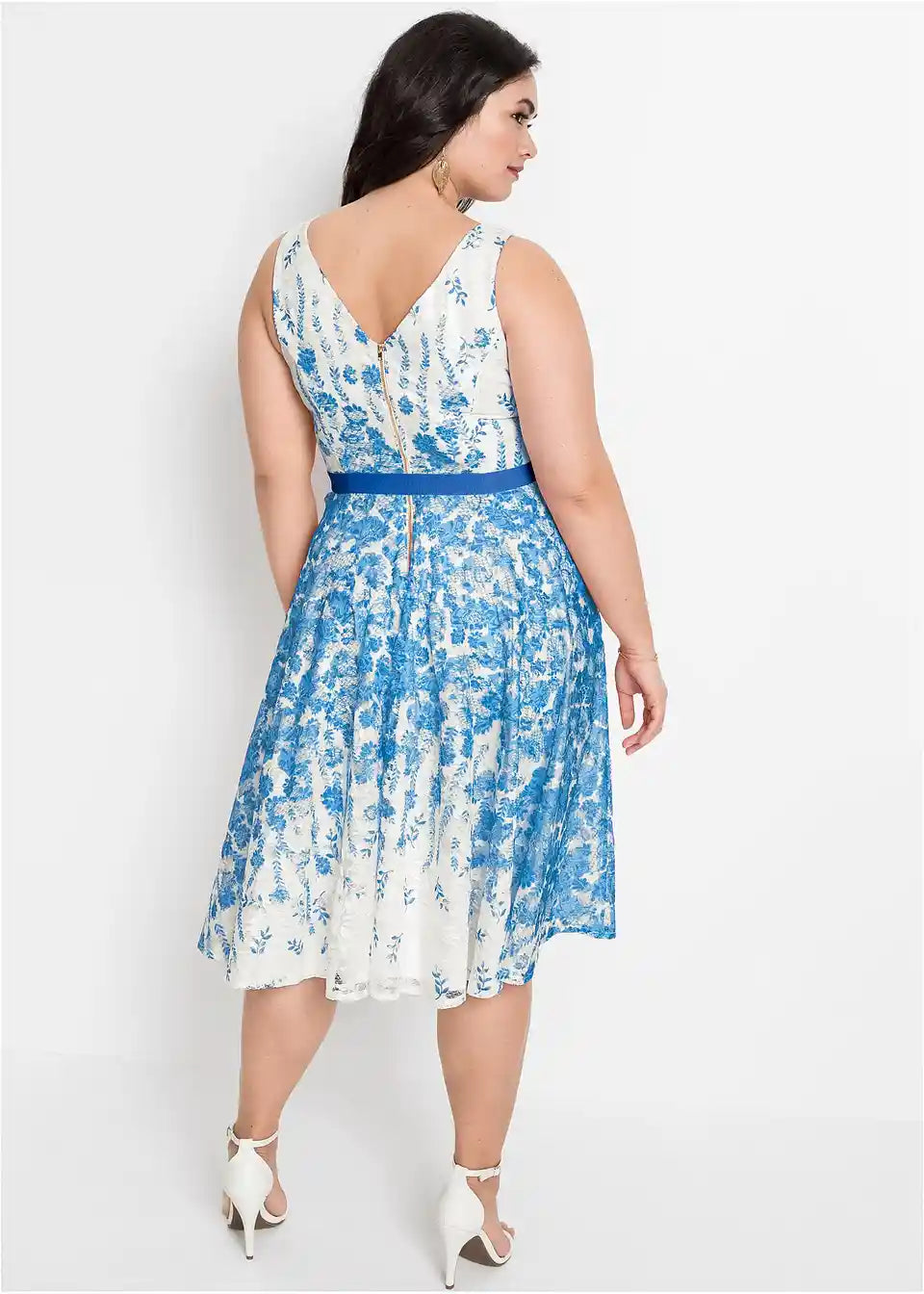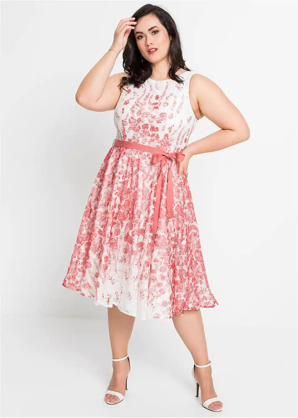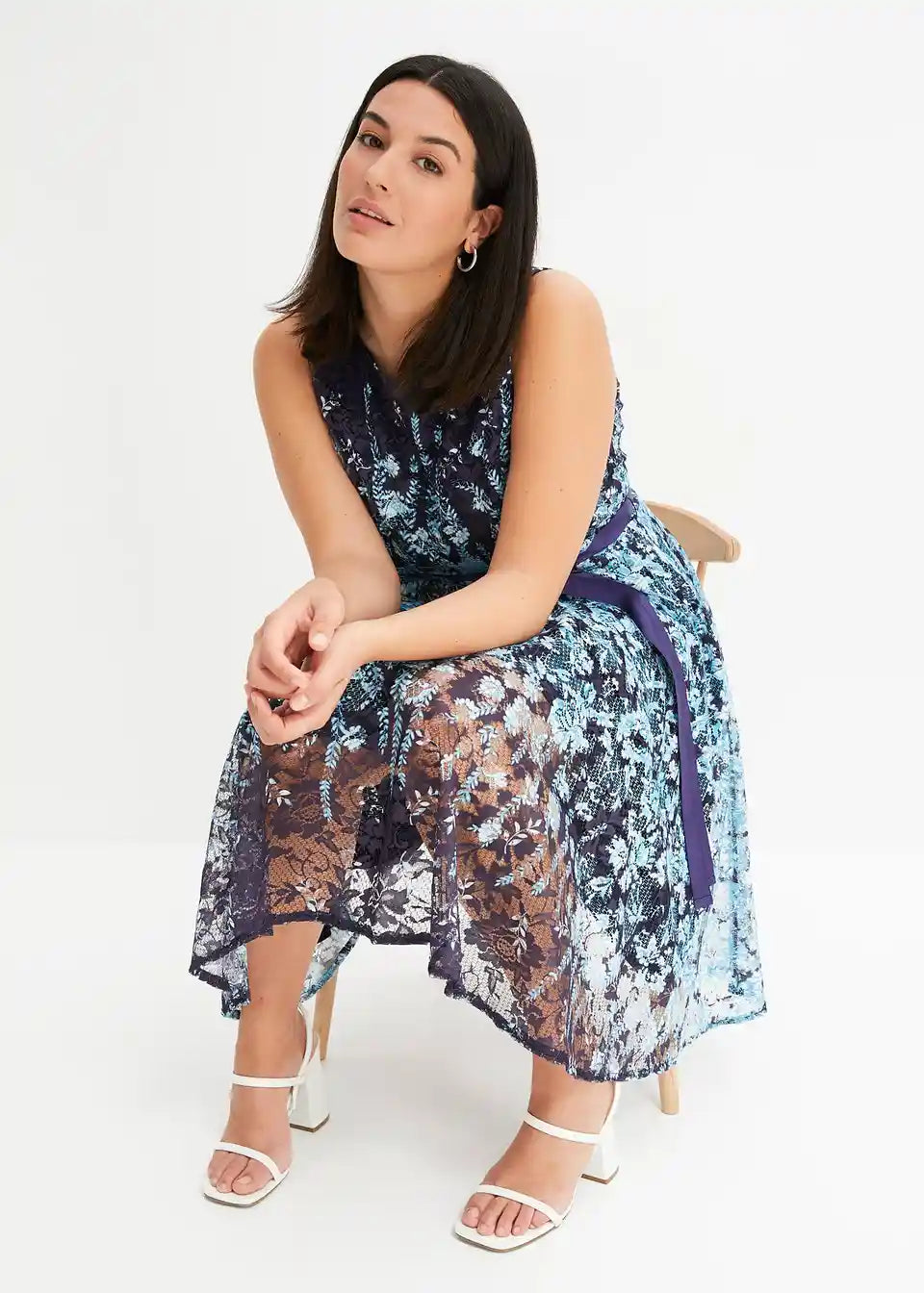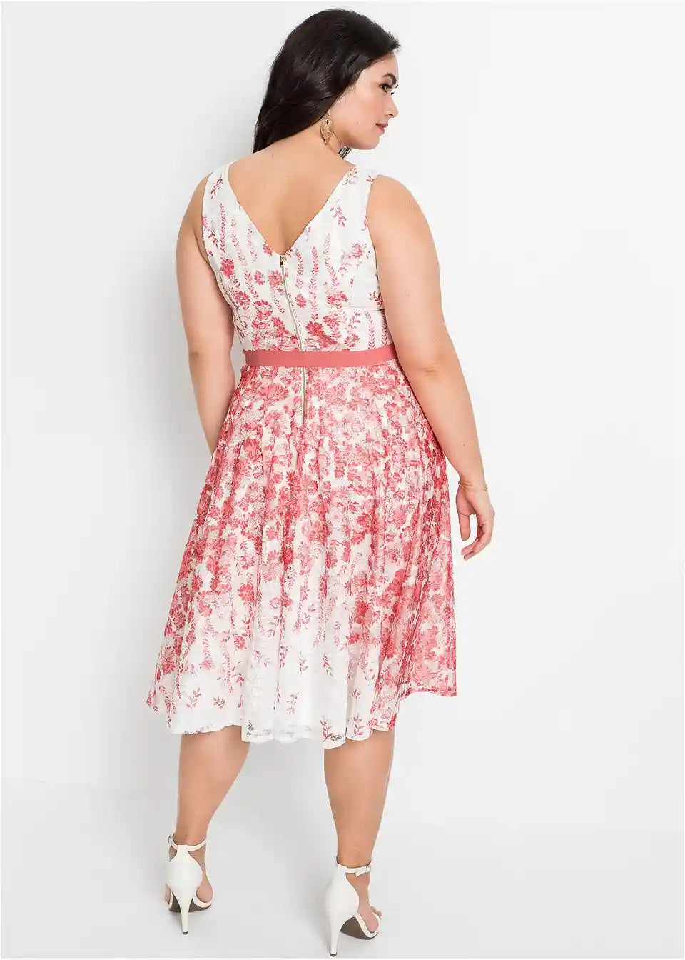 Romantična in ženstvena: Razširjeno midi krilo iz čipke s satenastim trakom v pasu.