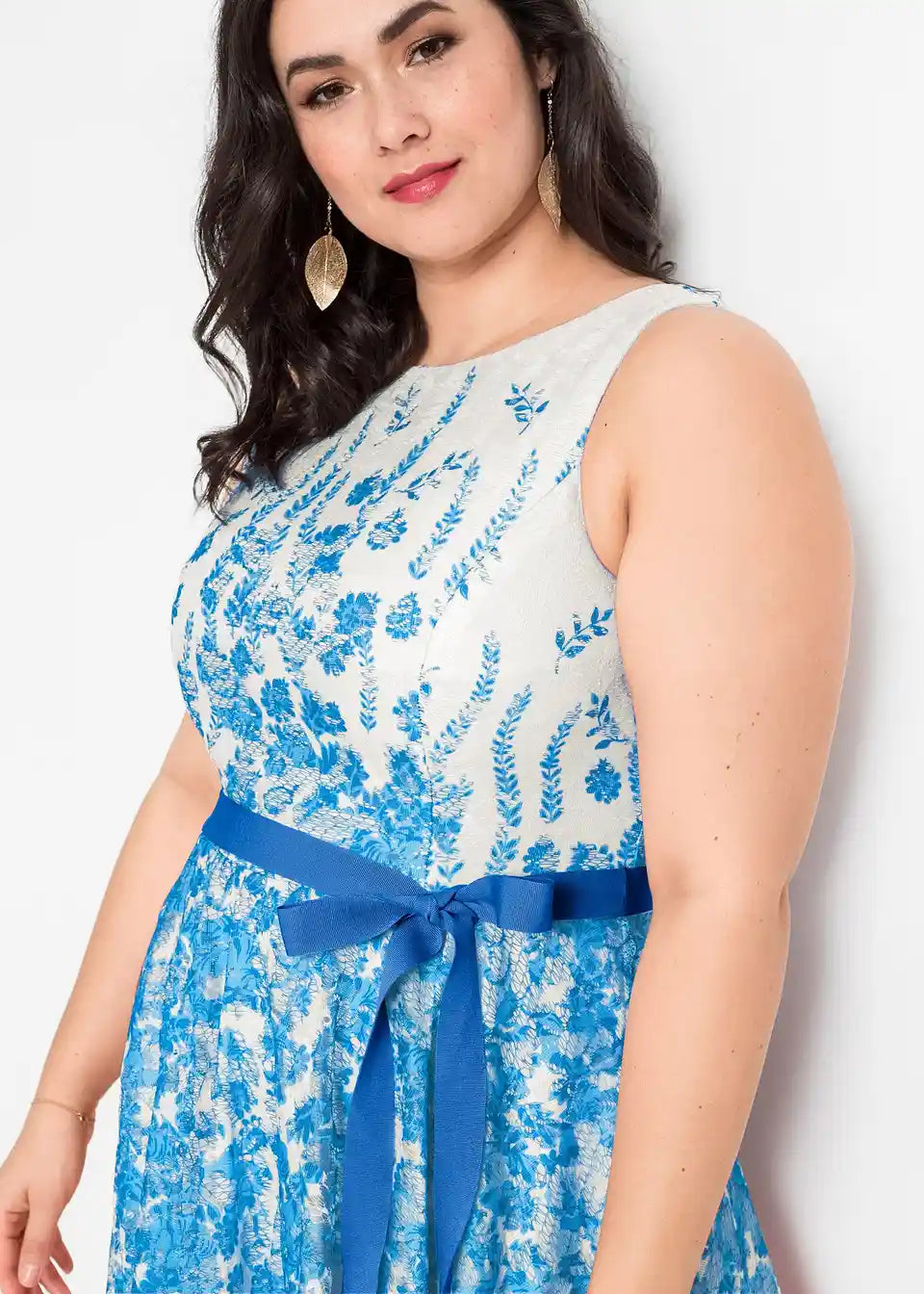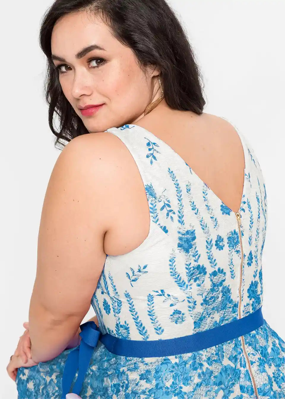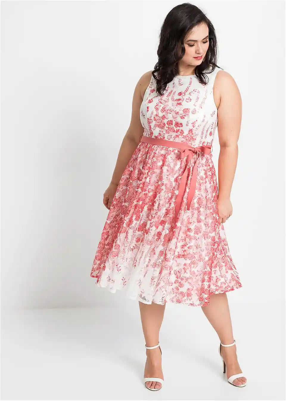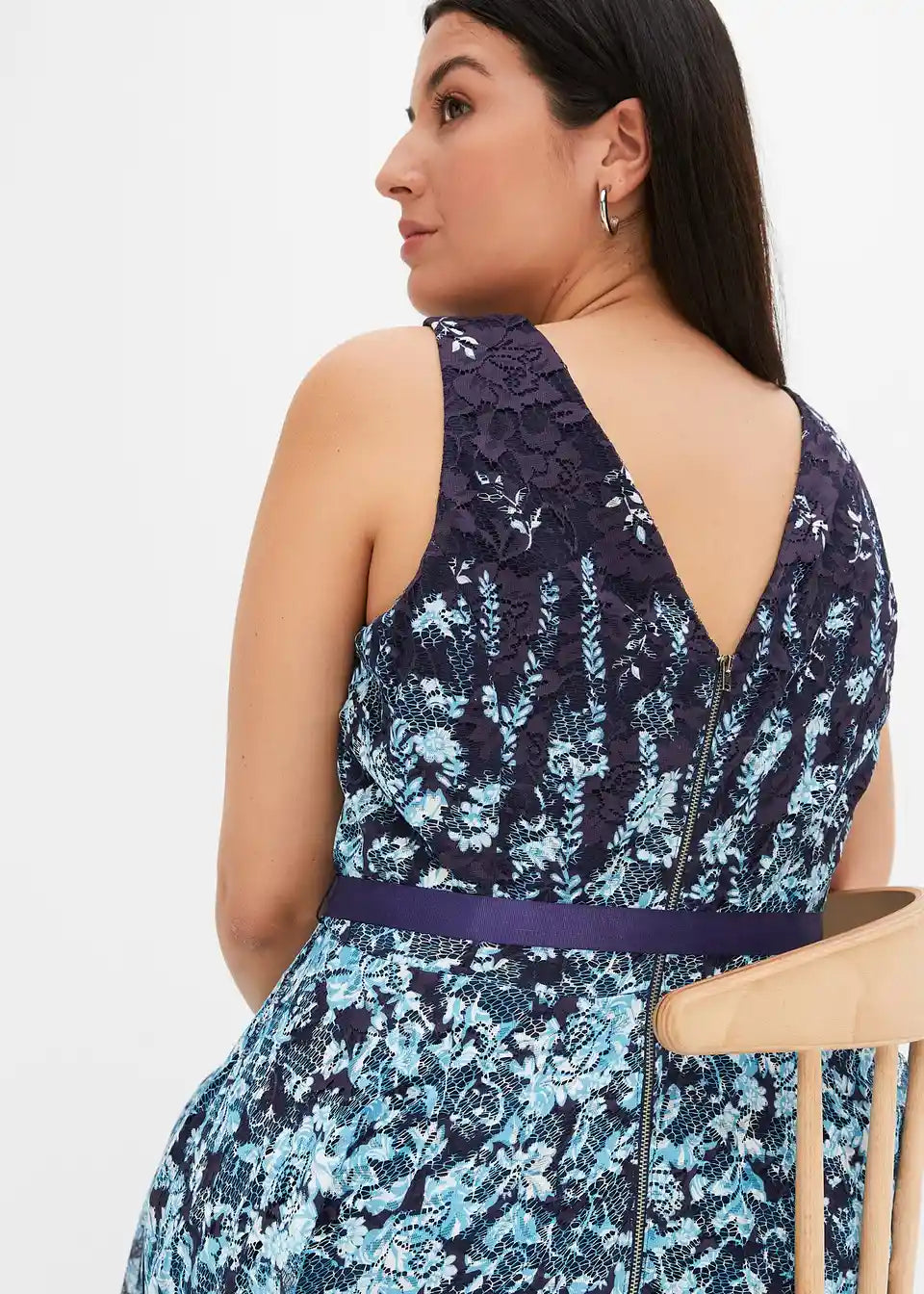 Romantična in ženstvena: Razširjeno midi krilo iz čipke s satenastim trakom v pasu.