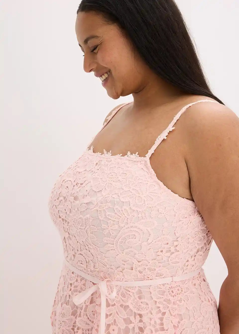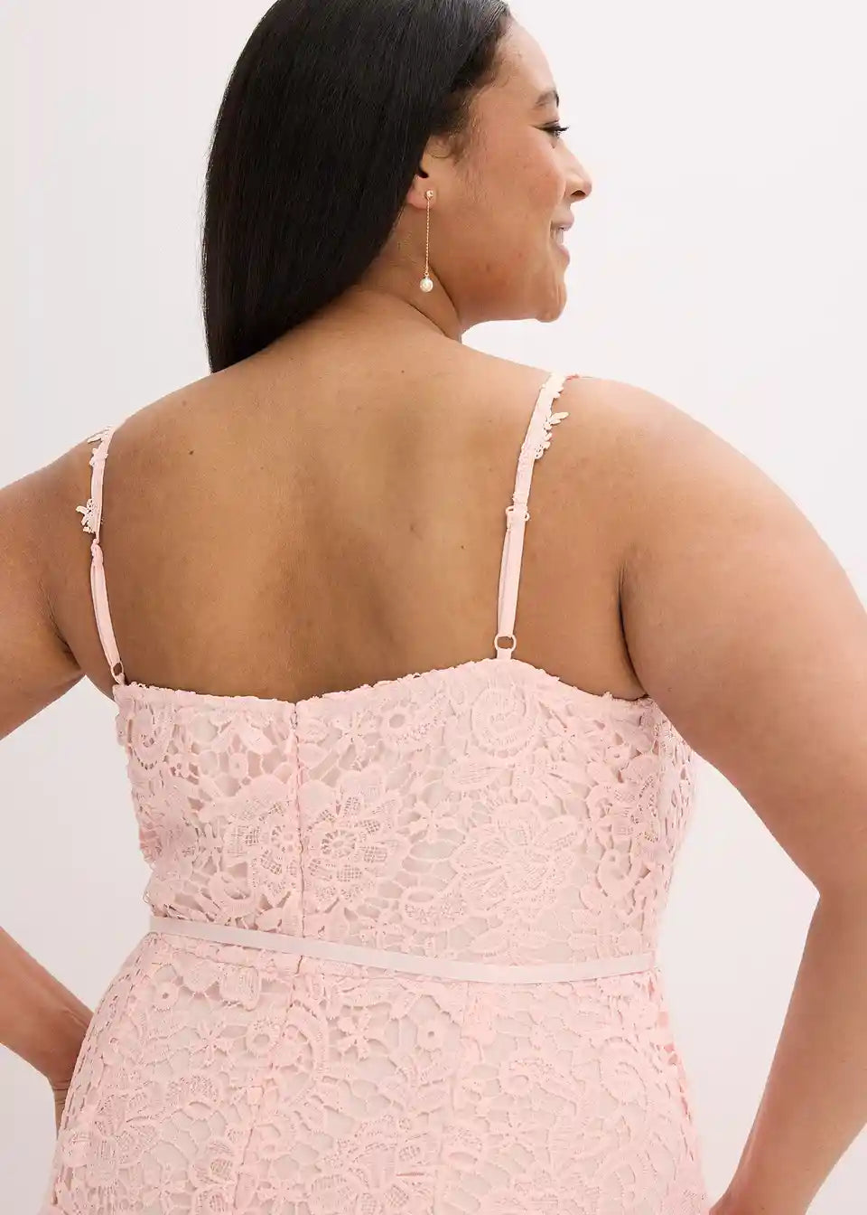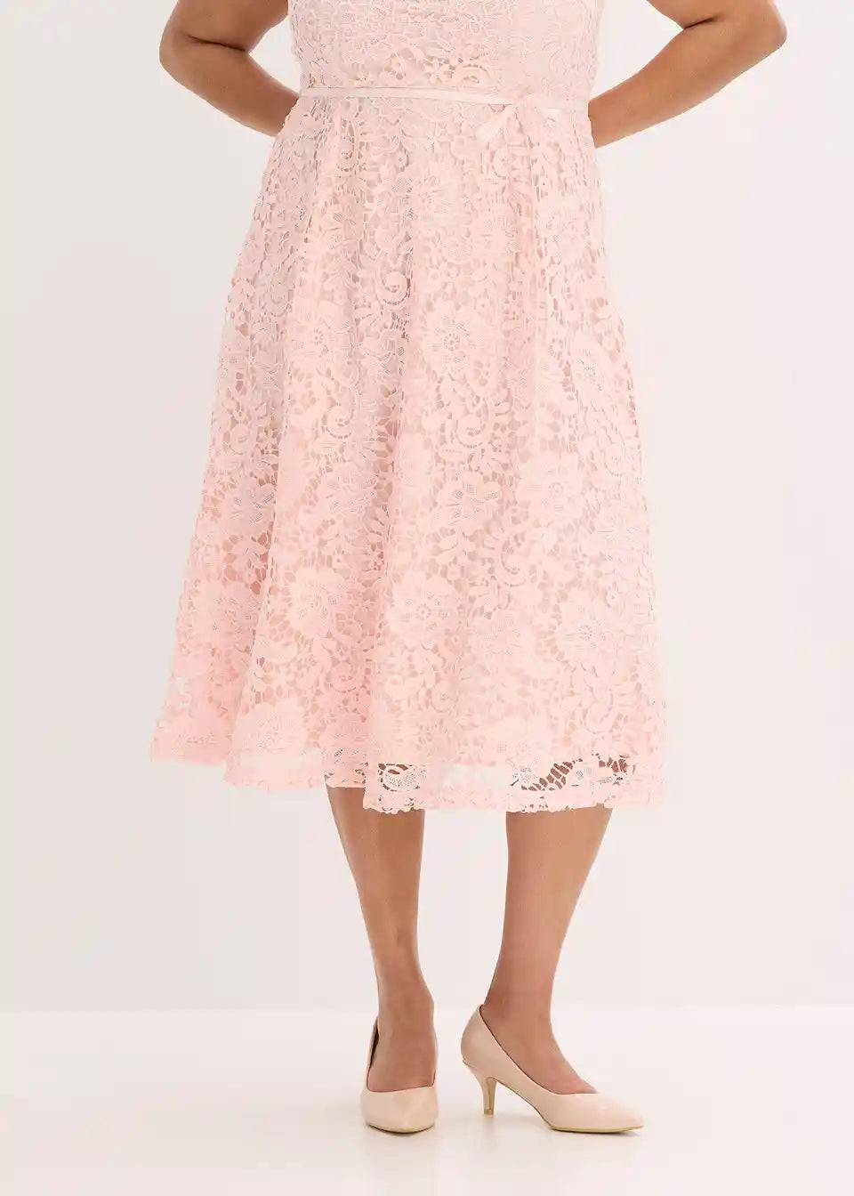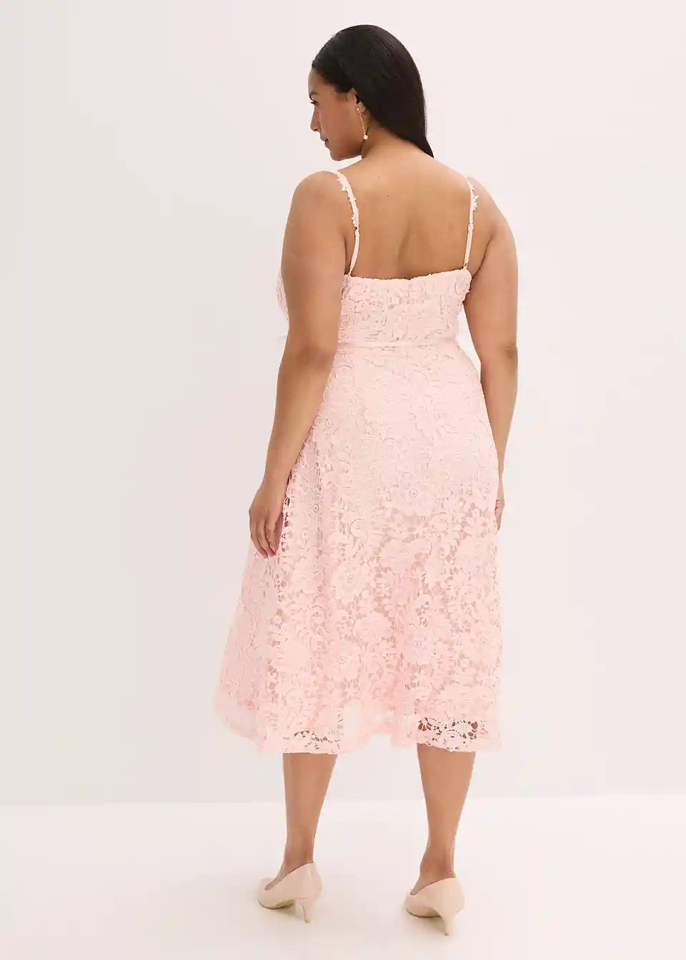 Romantično in ženstveno: Čipkasta obleka v midi dolžini, okrašena s cvetlično čipko na naramnicah