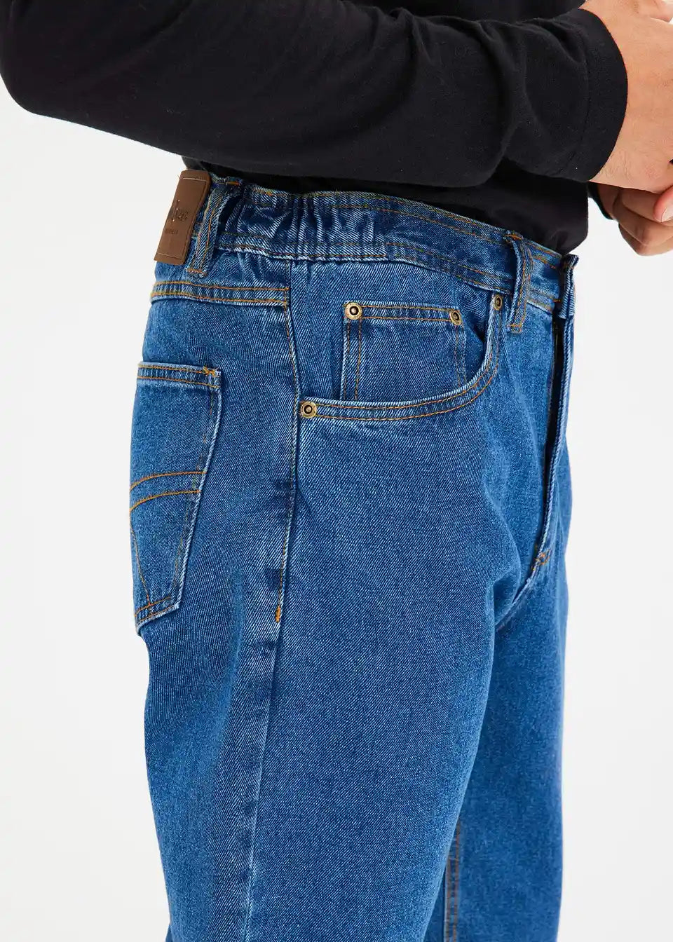 Klasične kavbojke s stranskim raztegljivim pasom v ravnem kroju