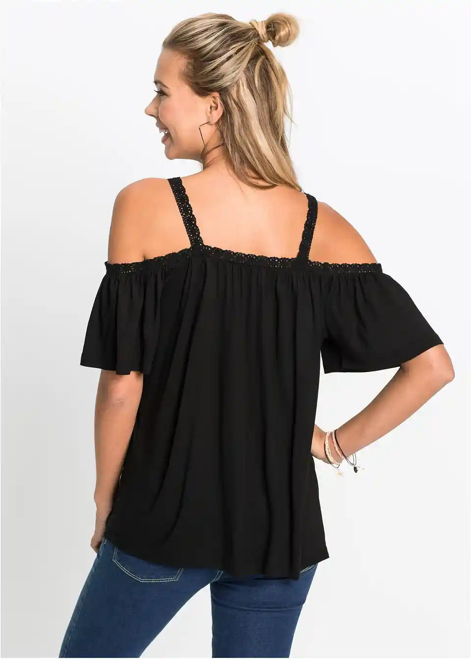 Trendovska majica z izrezi in čipkastim robom na ramenih