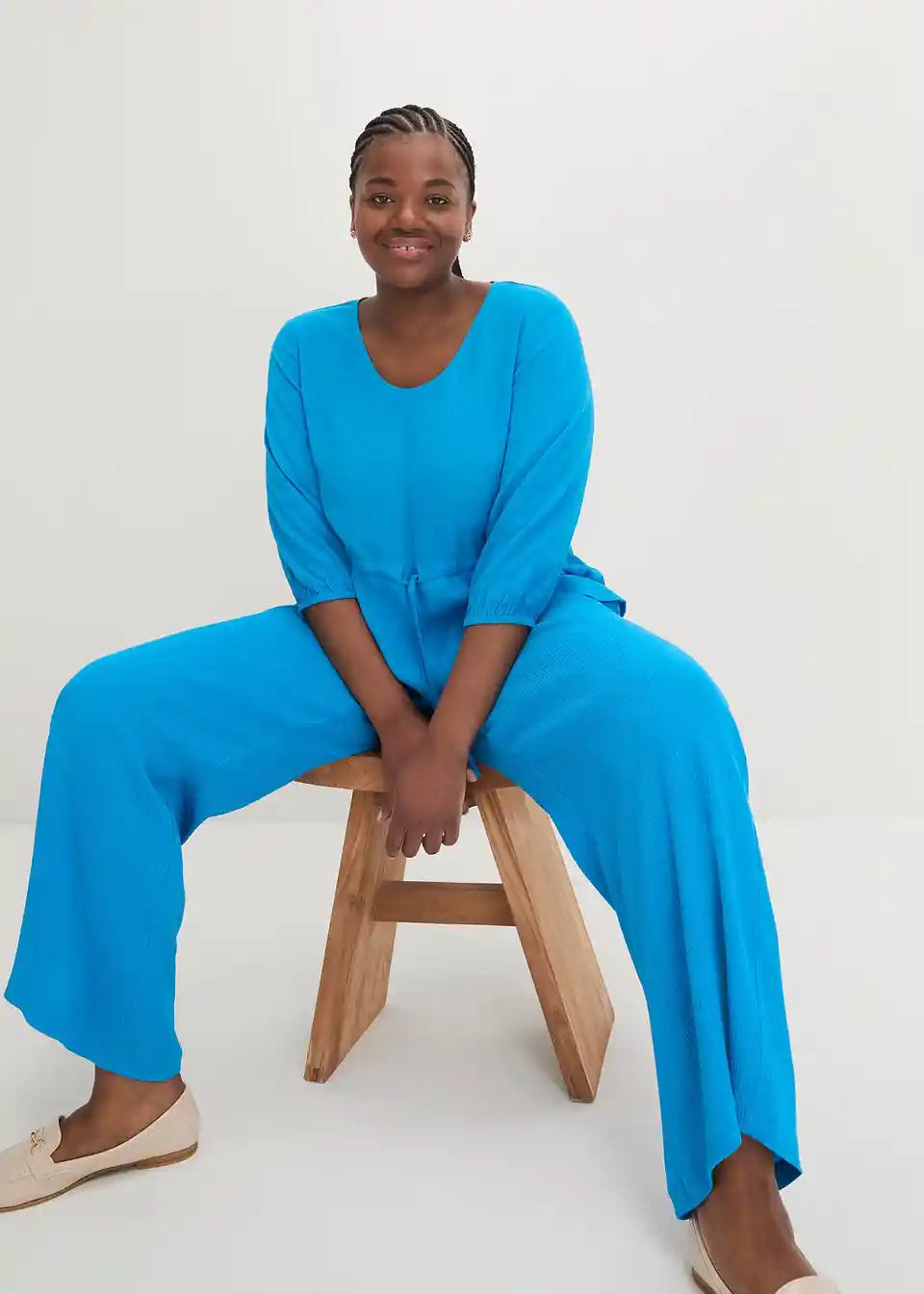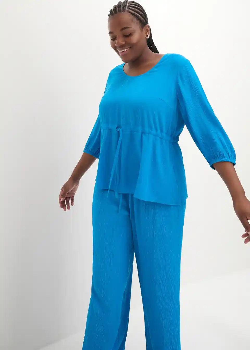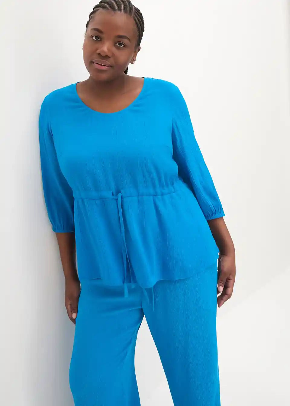 Tunika iz mečkanke z vrvico in 3/4-rokavi