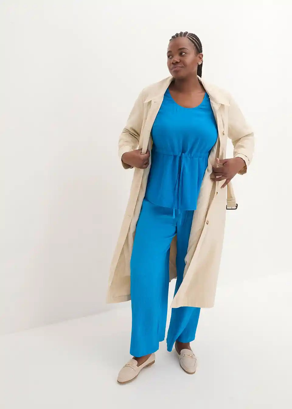 Crinkle tunika z modernim vezalnim detajlom in figuri prijazno dolžino