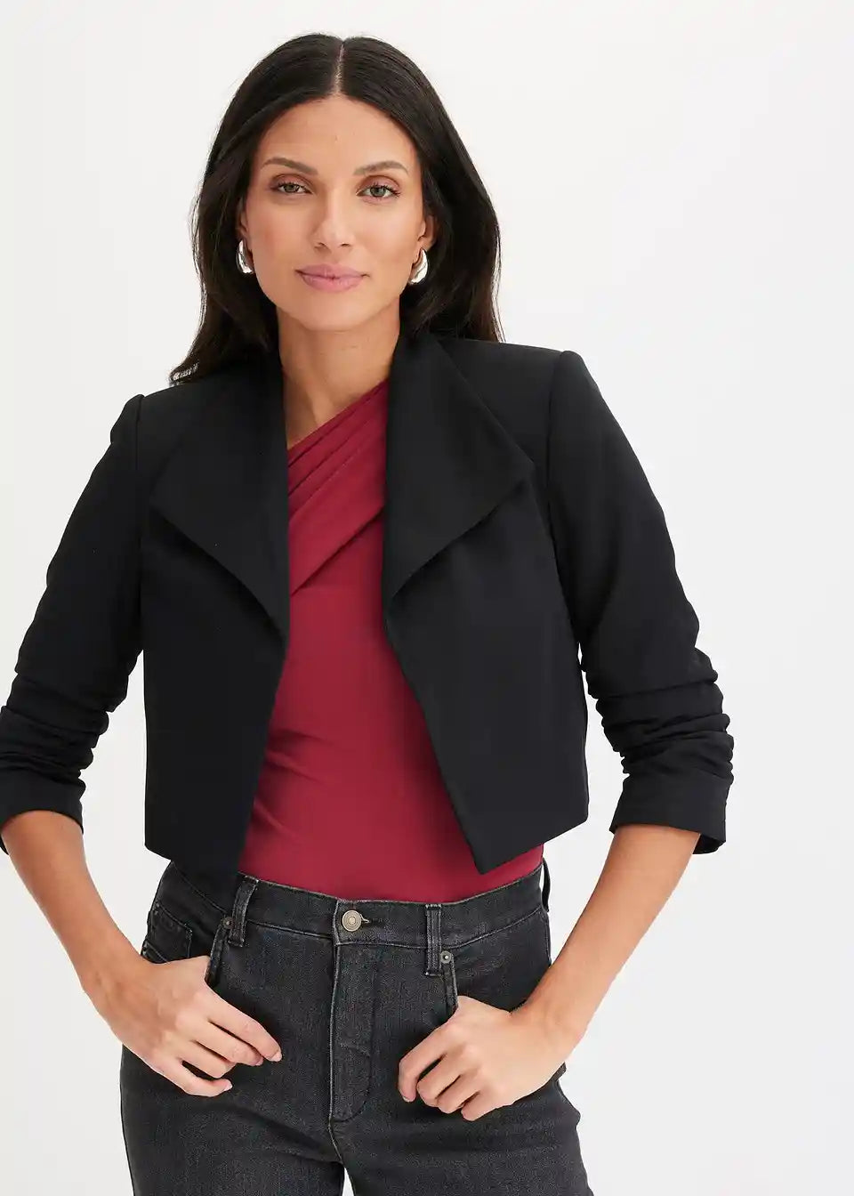 Stilni blazer s popolnim prileganjem in nabranimi rokavi