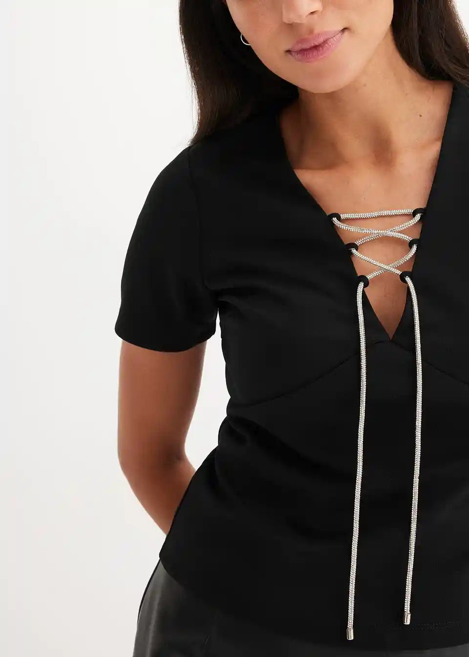 Krajša majica z lesketajočo pentljo