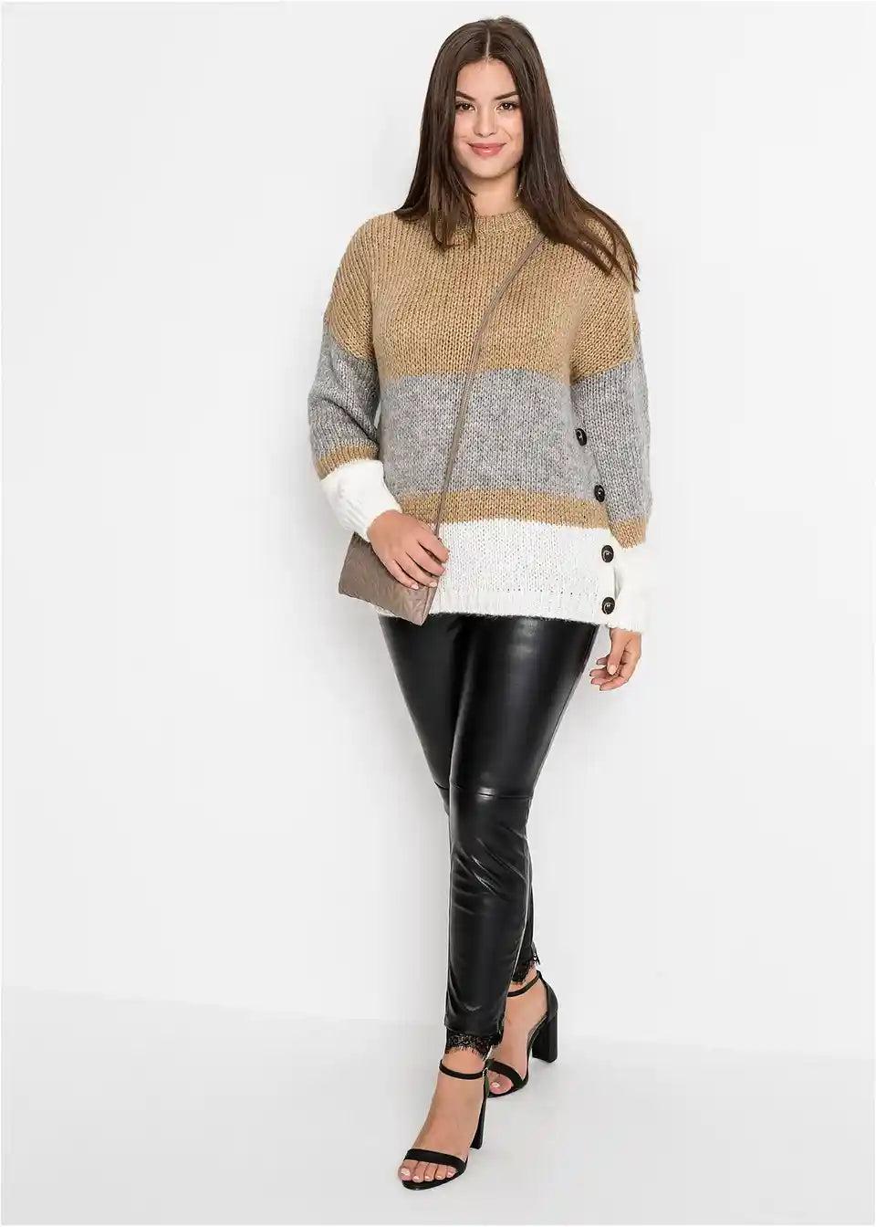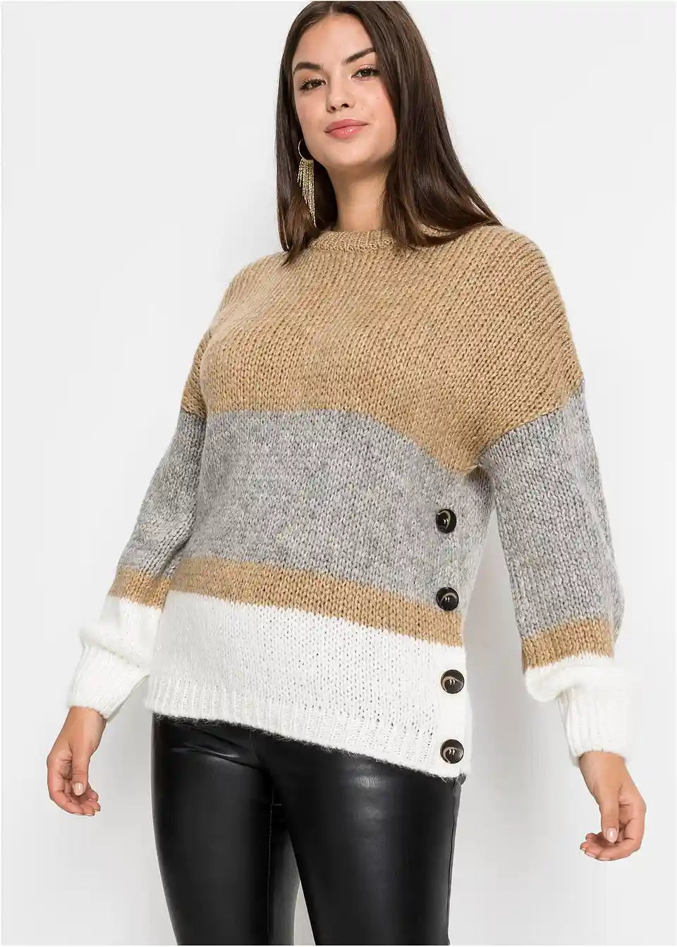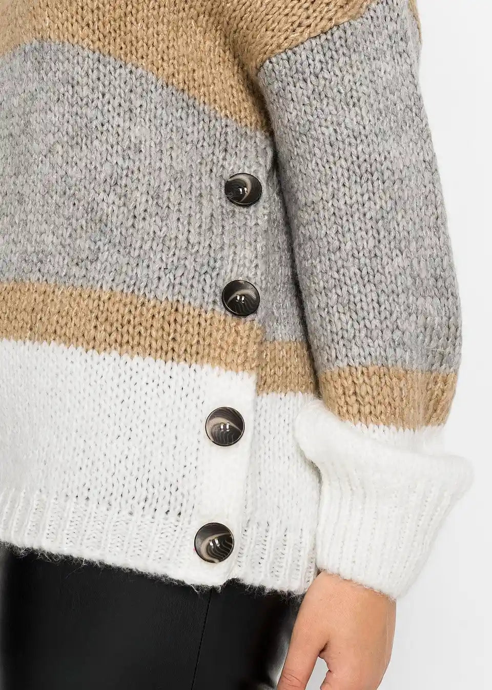Sodoben širok pulover s podrobnostjo gumbov
