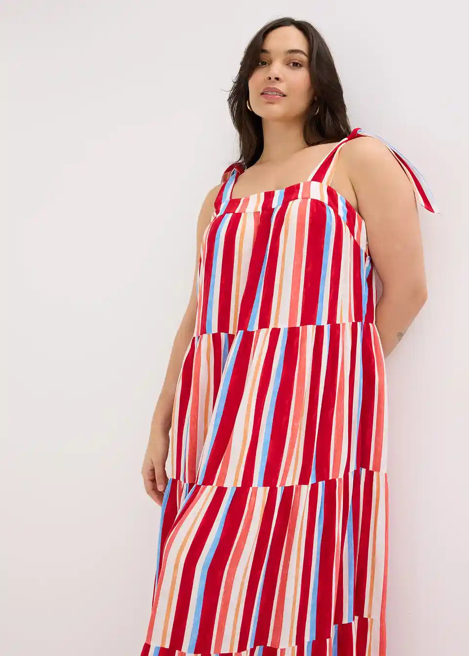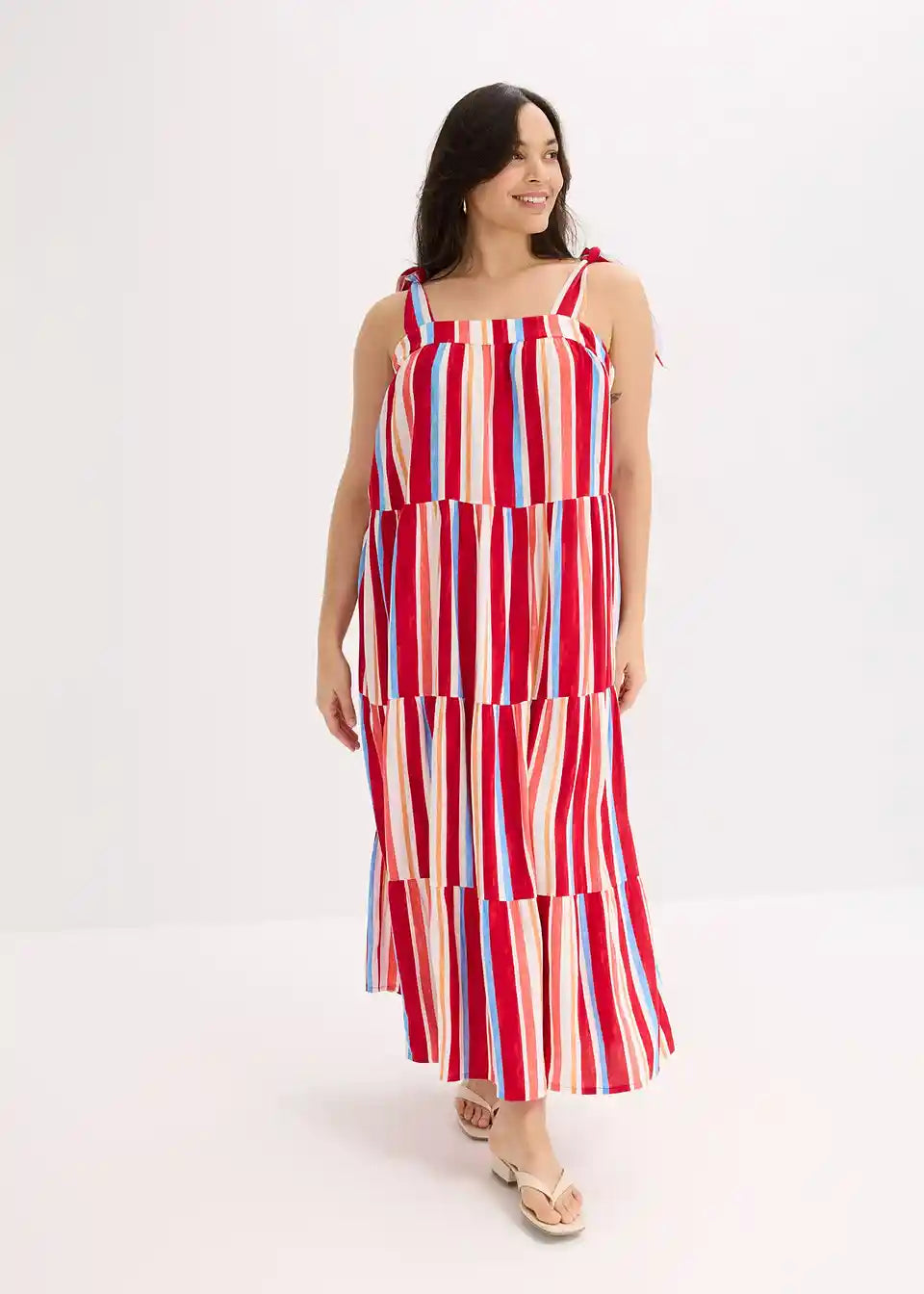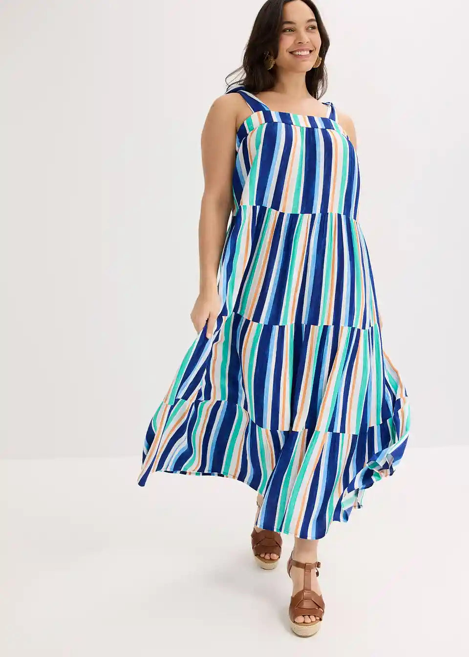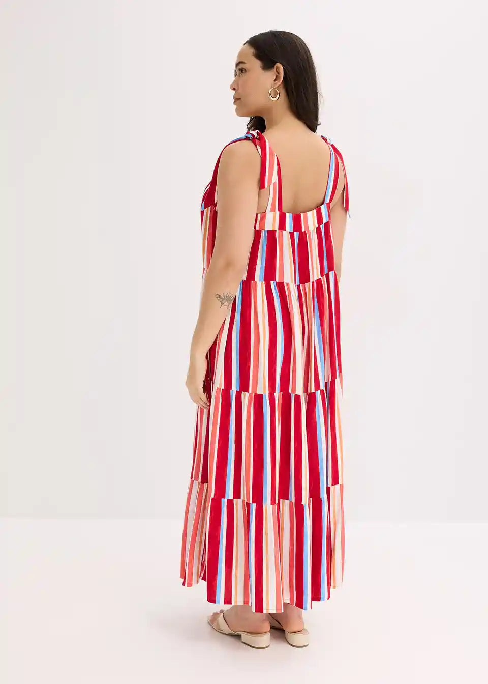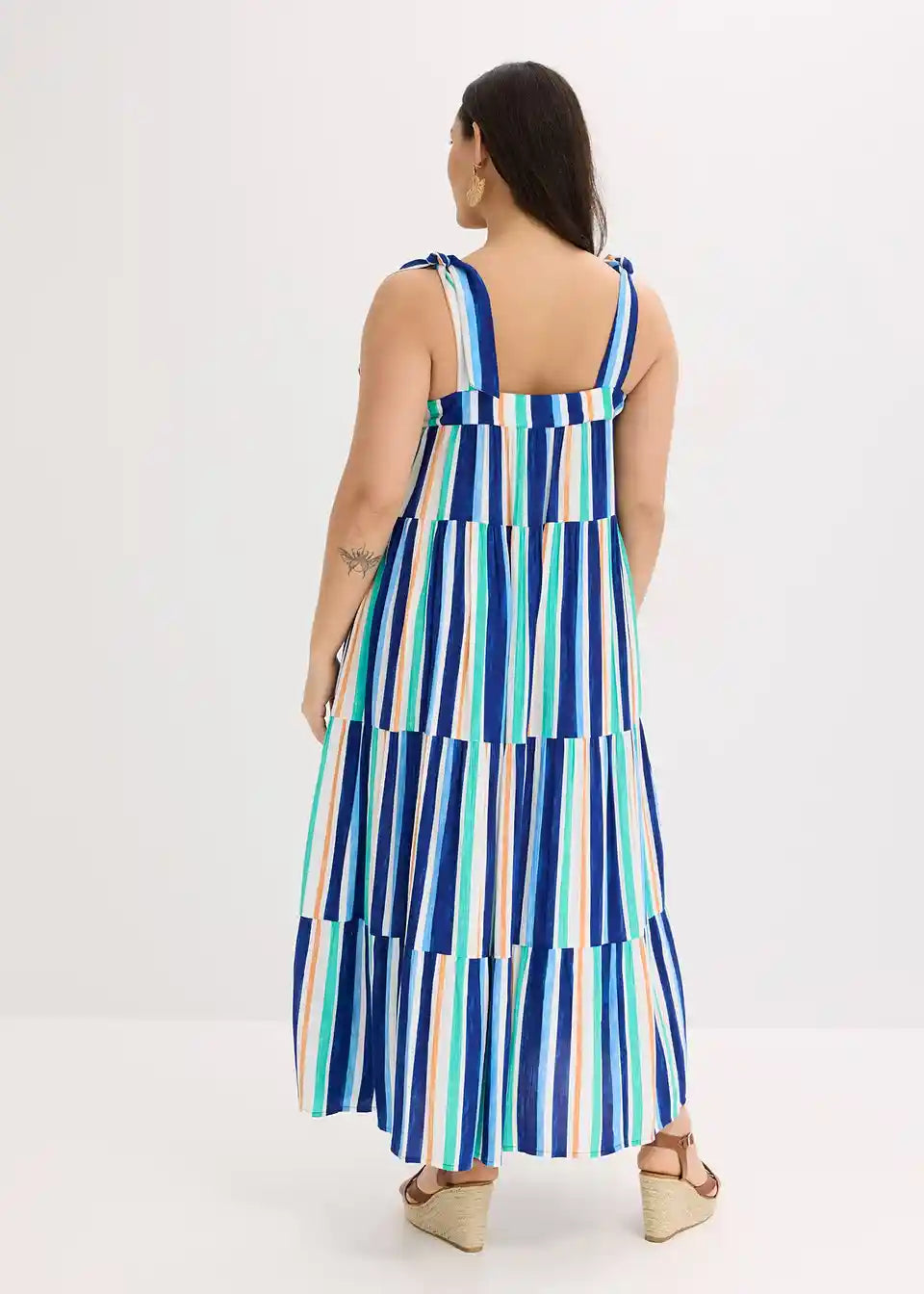 črtasta oblekica z naramnicami v maksi dolžini iz strukturirane viskoze z vozlanimi naramnicami