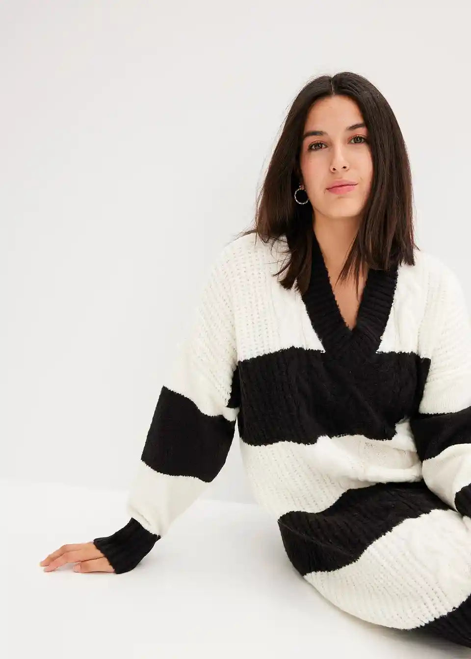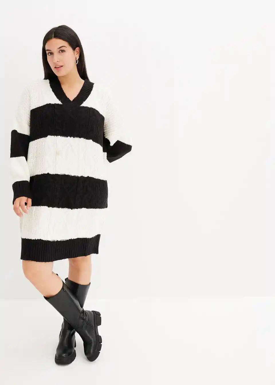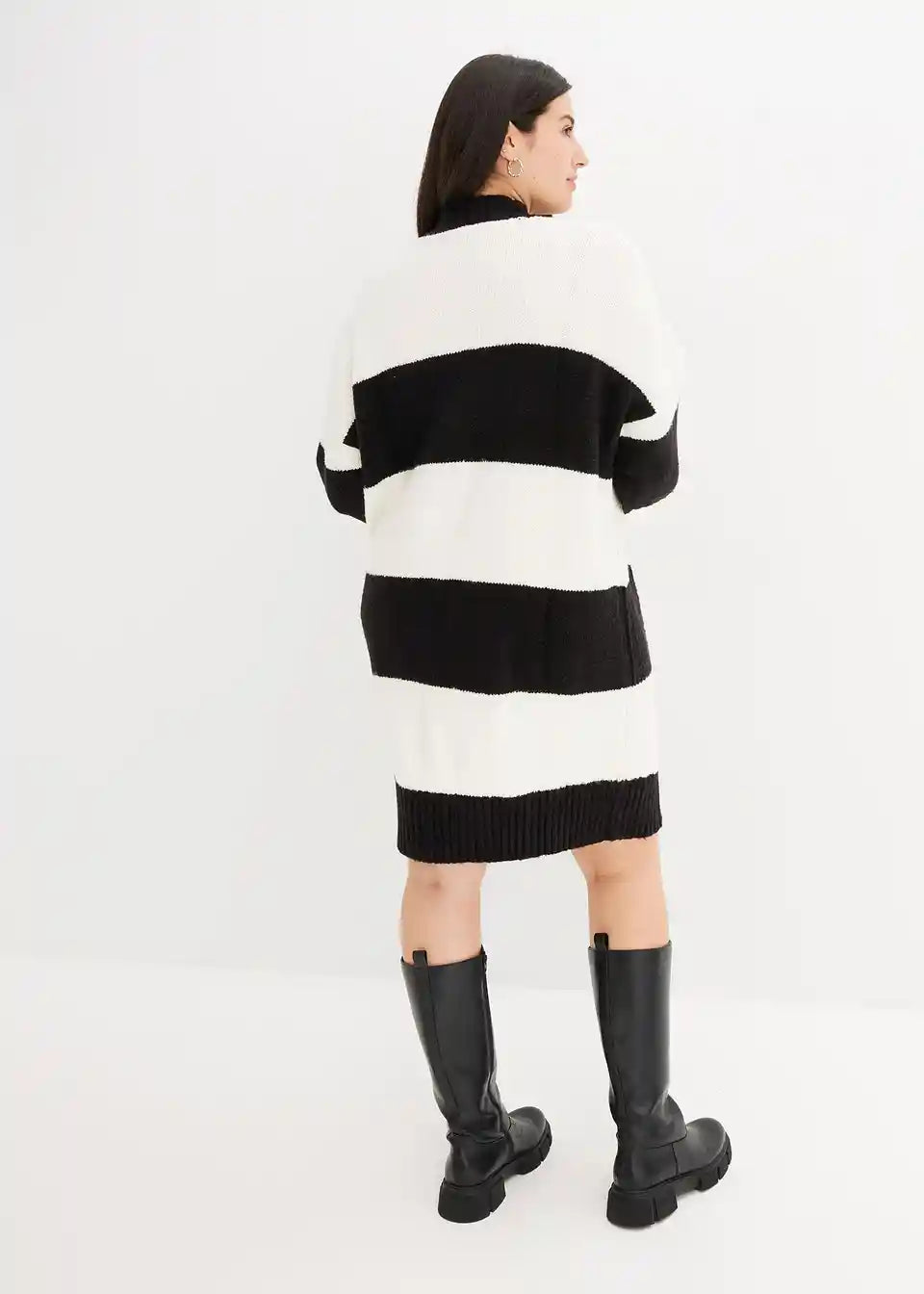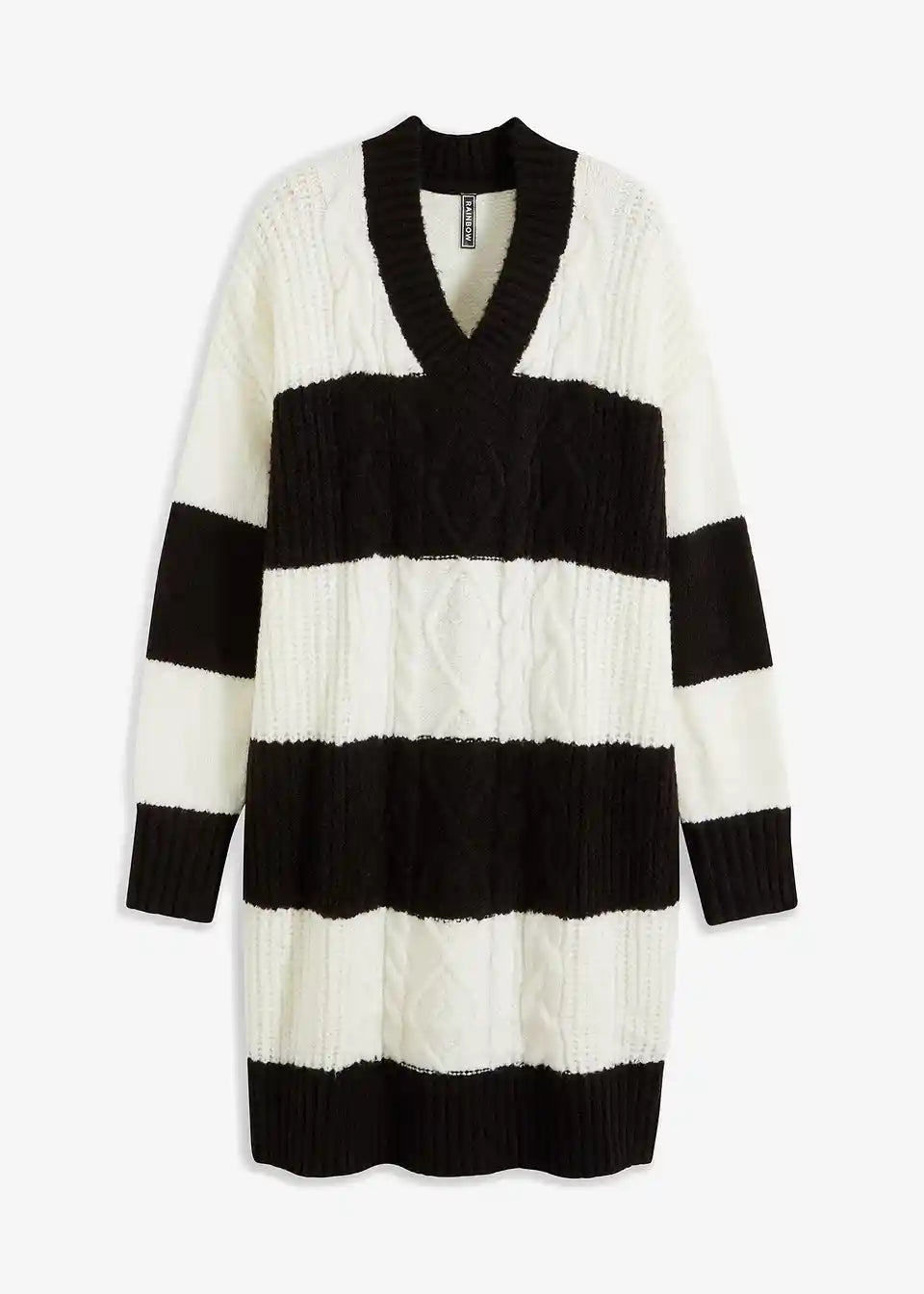 Črtasta oversized-pletena obleka s pletenim vzorcem